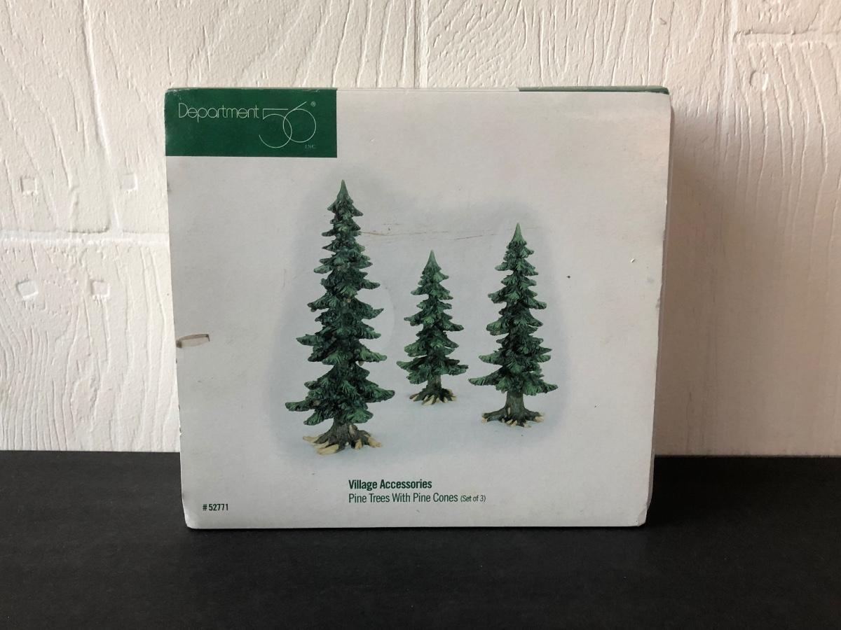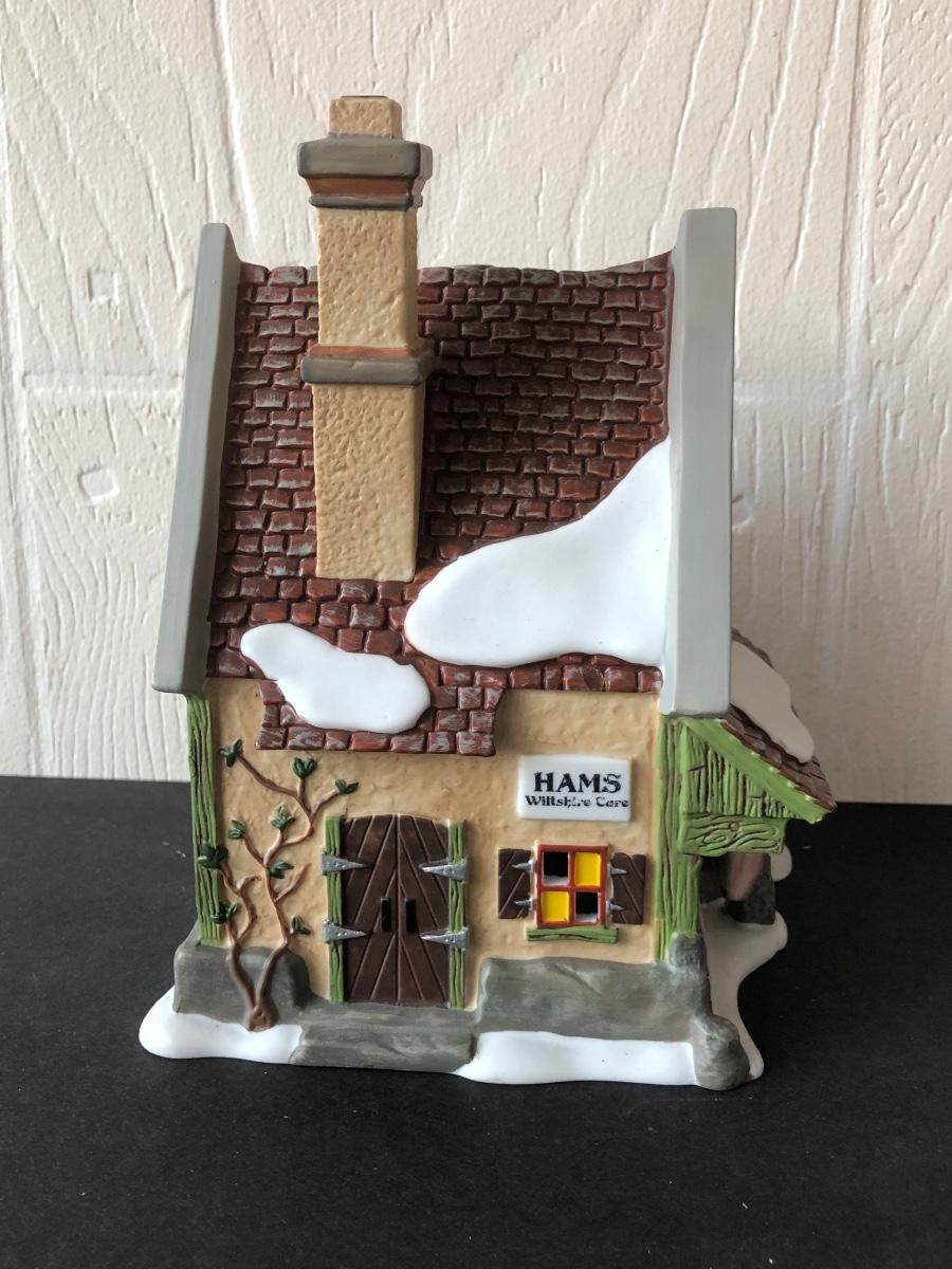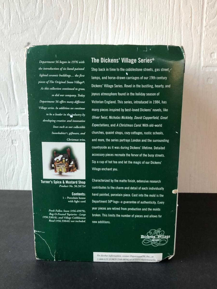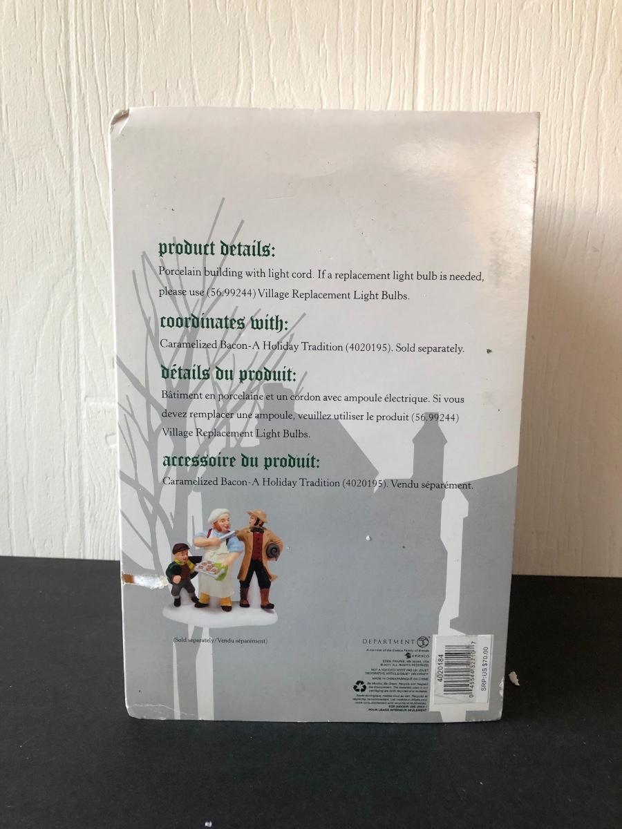 LOT 35F: Department 56 Dickens' Village - Boar's Bacon & Candied Hams (4020184), 2004 Turner's Spice & Mustard Shop (56.58274), Pine Trees w/ Pine Cones (52771) & More