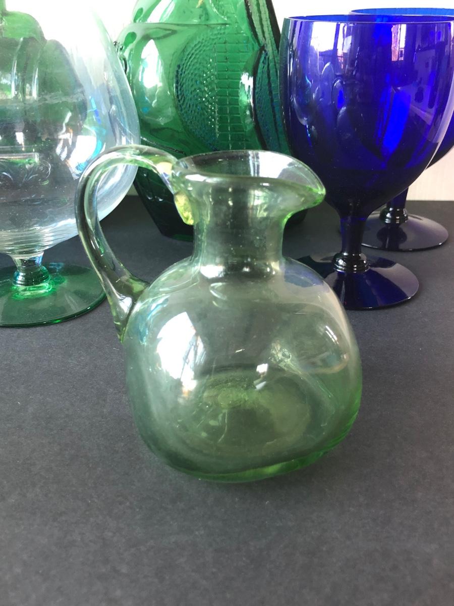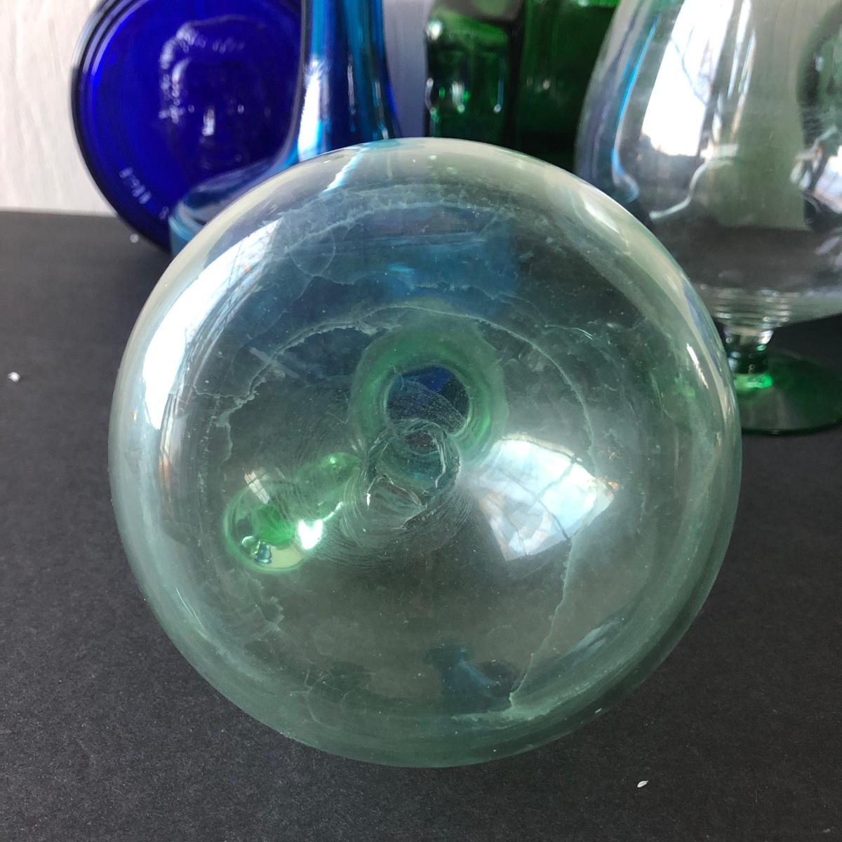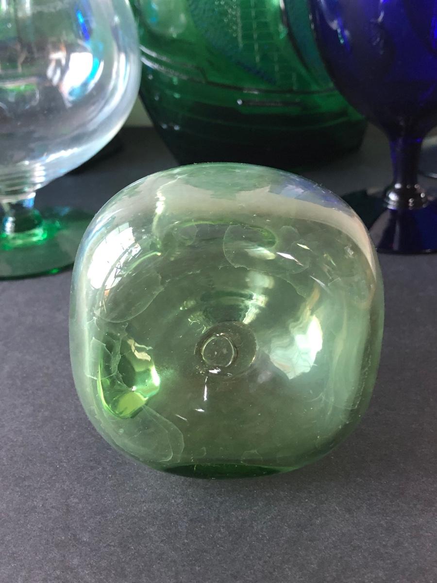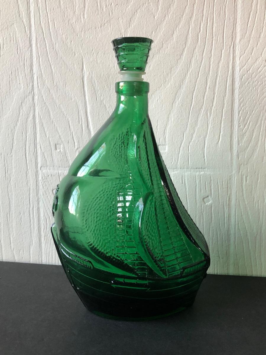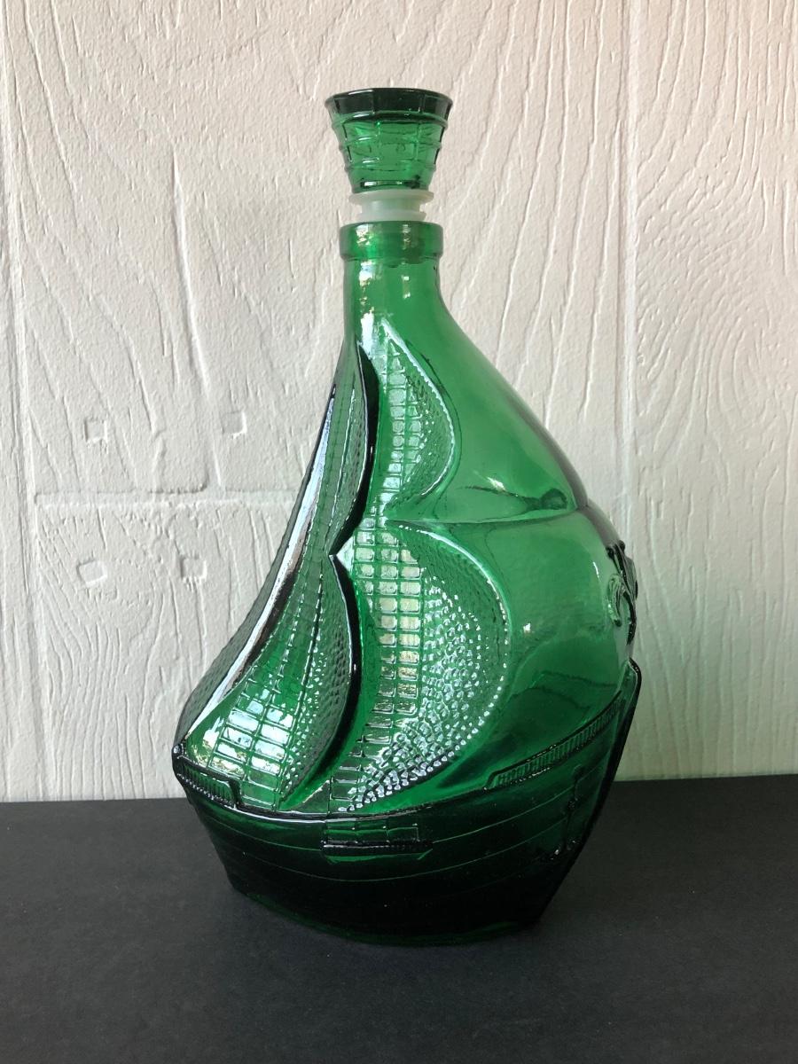 LOT 37B: Blue & Green Glass Collection - Ronald Reagan Wheaton Bottle, Jamestown Paperweight, Yorktown National Battlefield Paperweight, Train & Ship Decanters & More