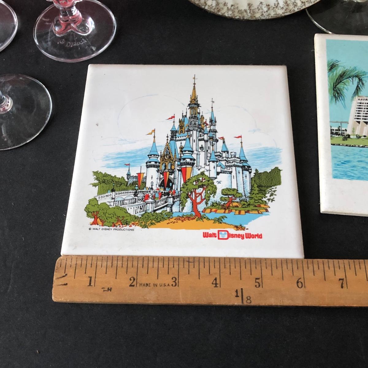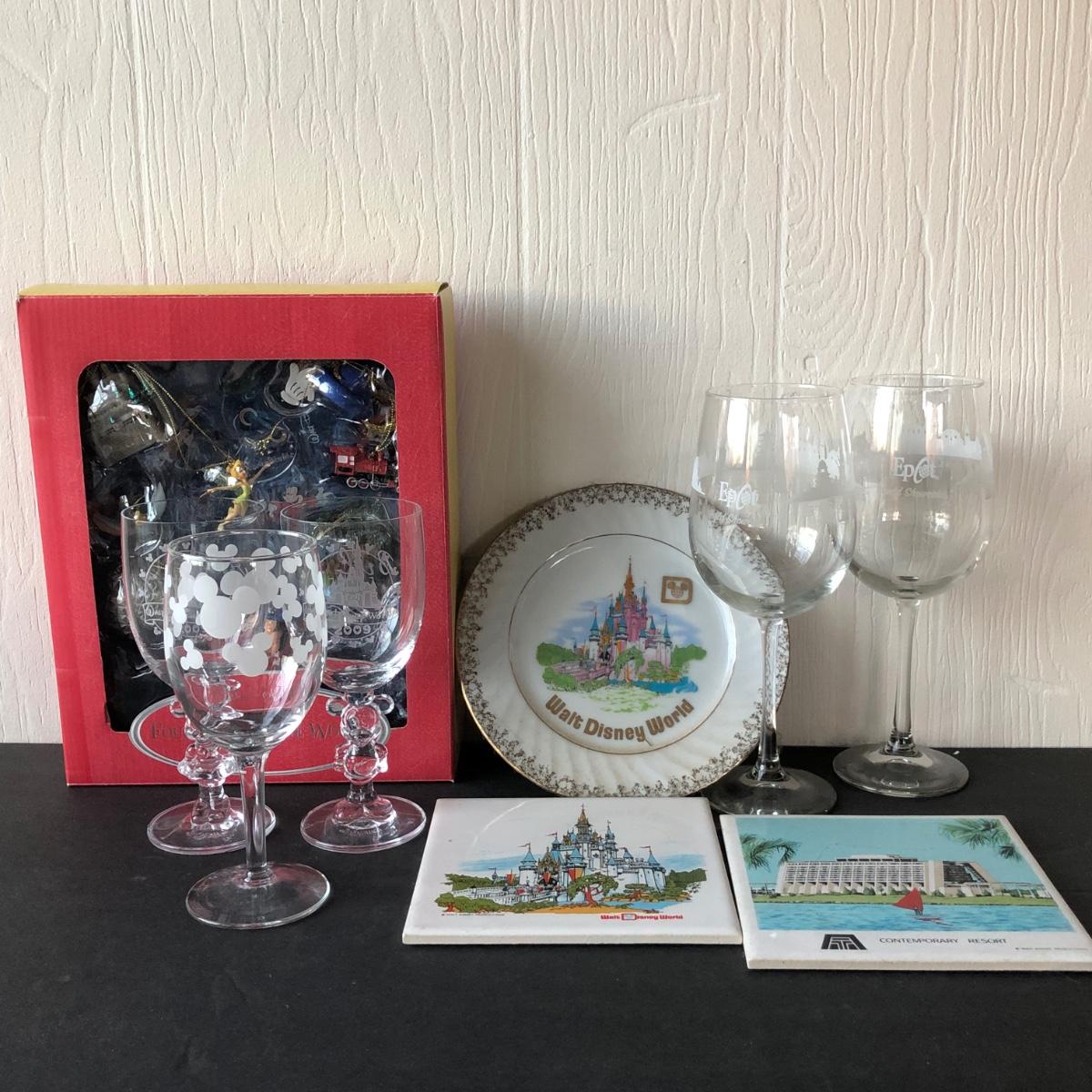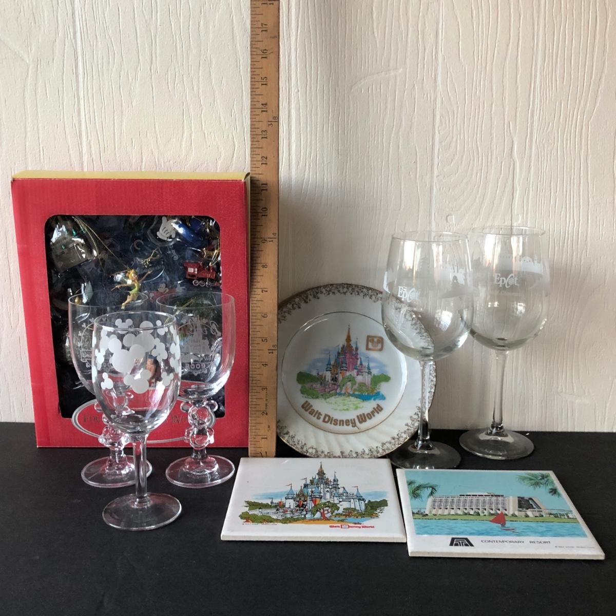 LOT 39B: Disney Collection - Vintage Trivets / Tiles, EPCOT Wine Glasses, WDW Plate & Ornament Set