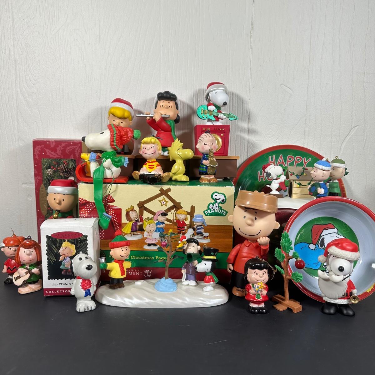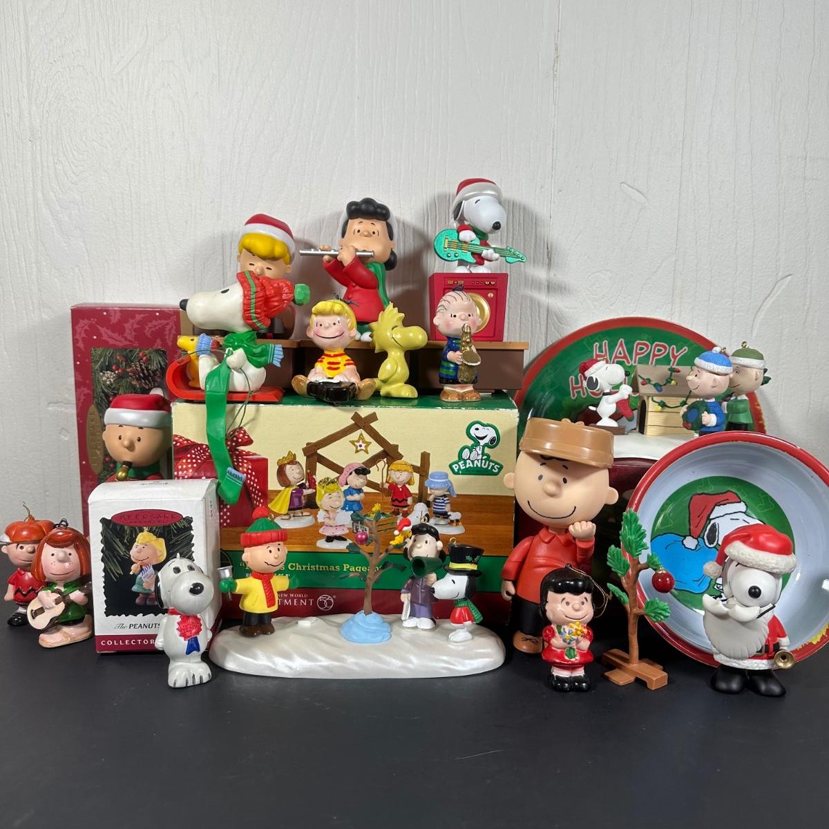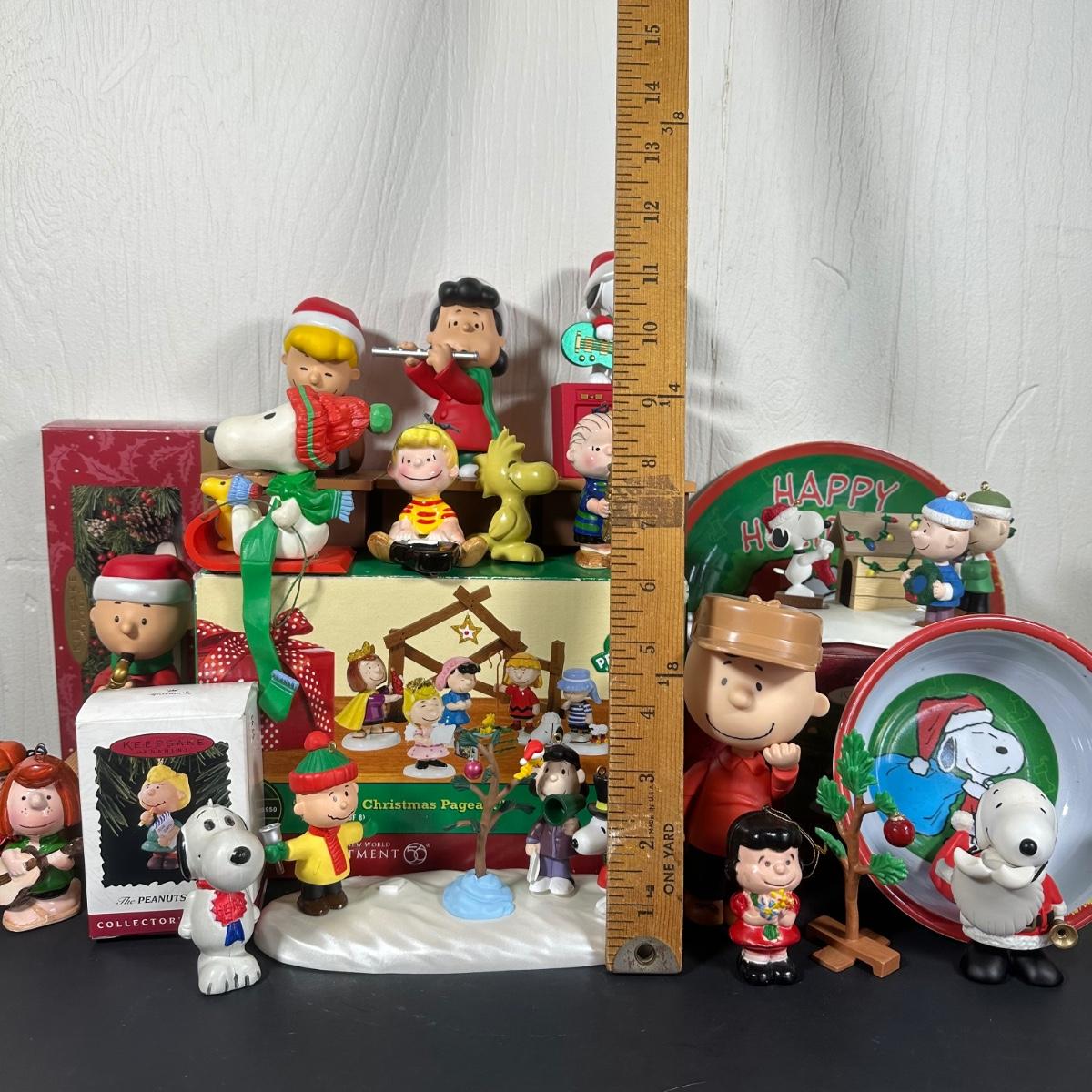 LOT 52G: Peanuts Christmas Collectables - Department 56 Peanuts Christmas Pageant, Hallmark Keepsake Ornaments w/ Displays & More