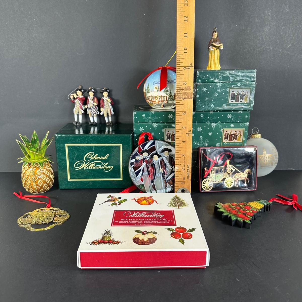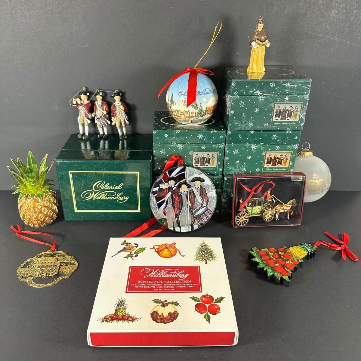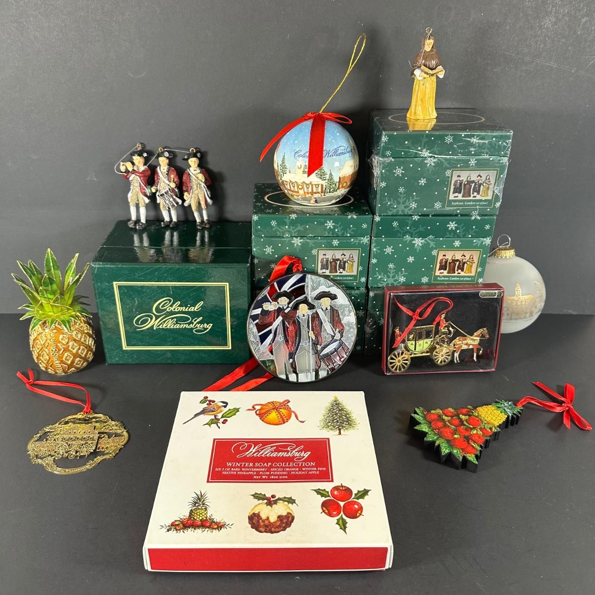 LOT 67G: Colonial Williamsburg Virginia Collection - Lang & Wise Ornaments w/ Box, Soap Collection & More