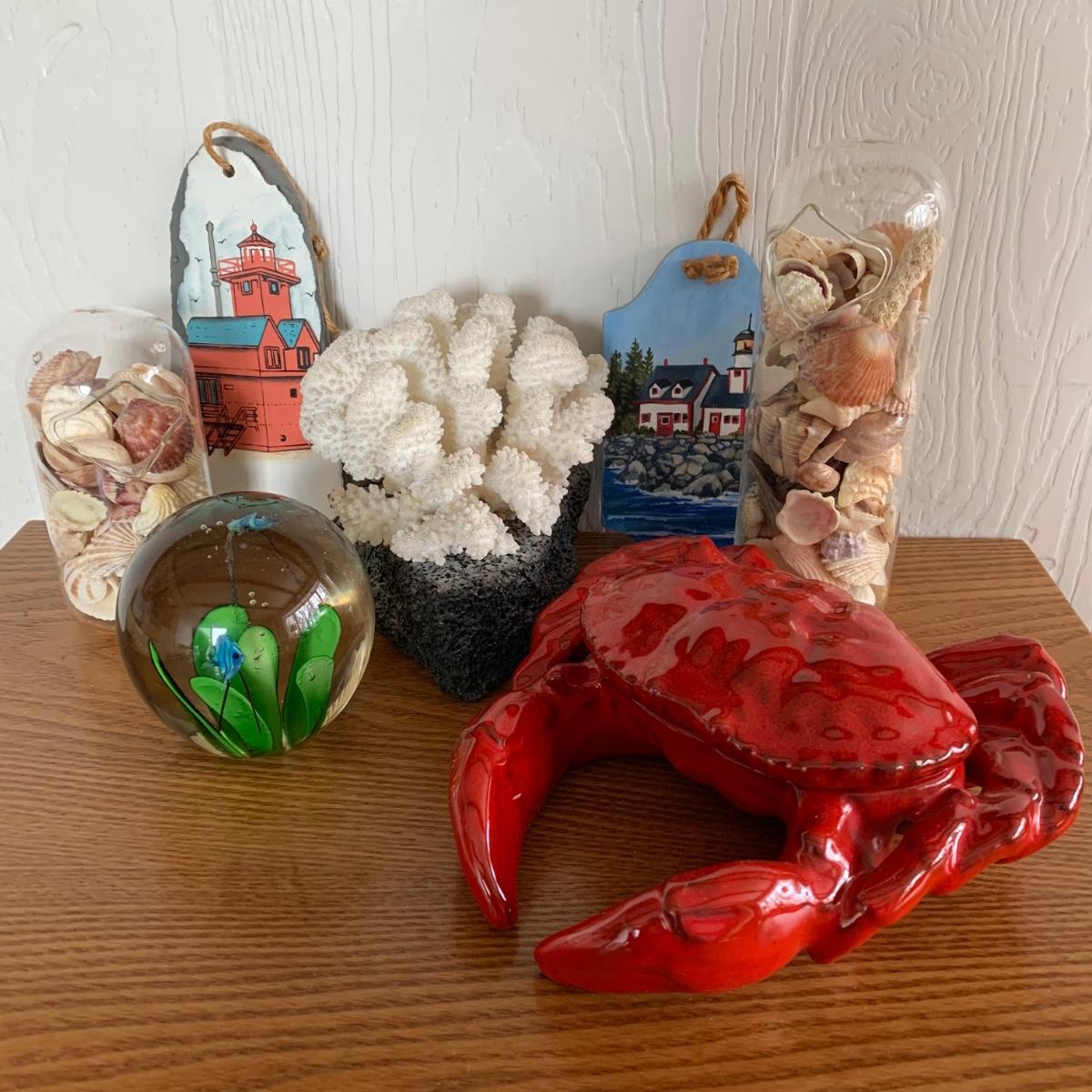 LOT 85 G: Beach Days Collection: Ceramic Crab Dish W/ Lid & More