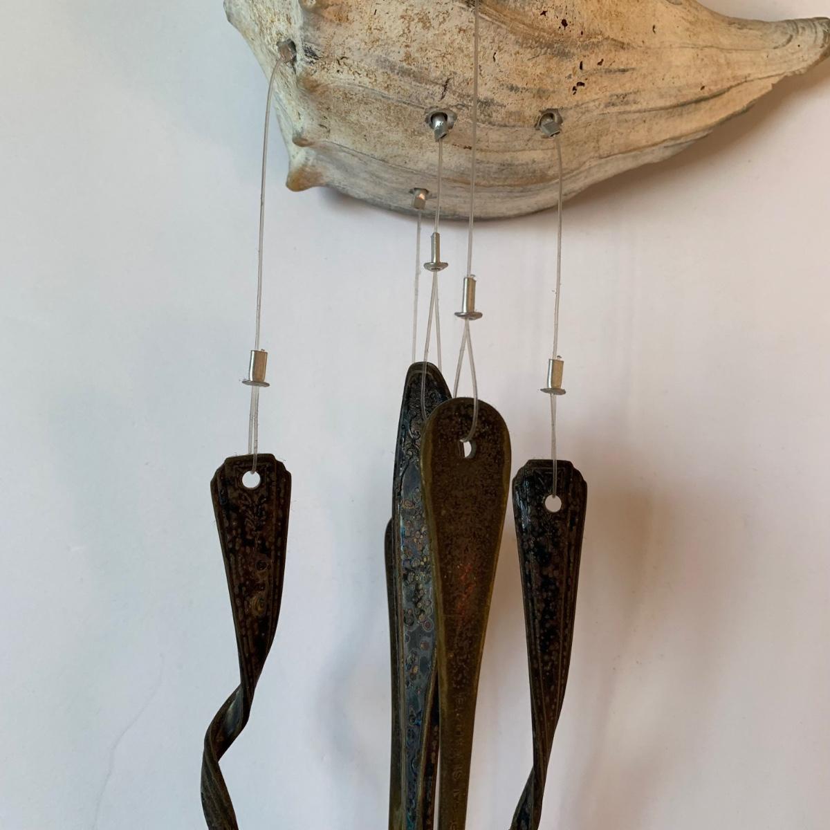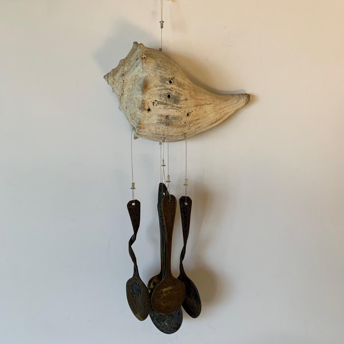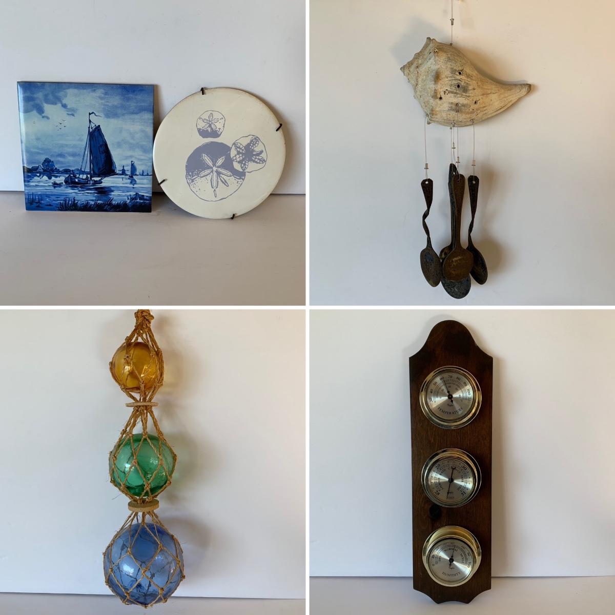 LOT 100 B: Vintage Barometer, Seashell & Spoon Wind Chime, Trivets & More