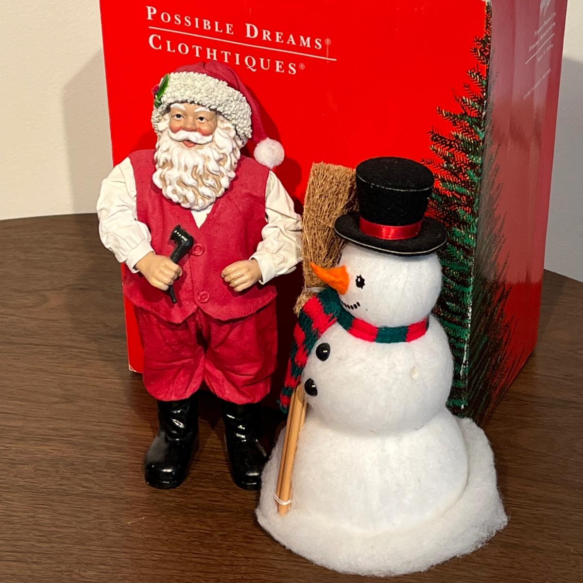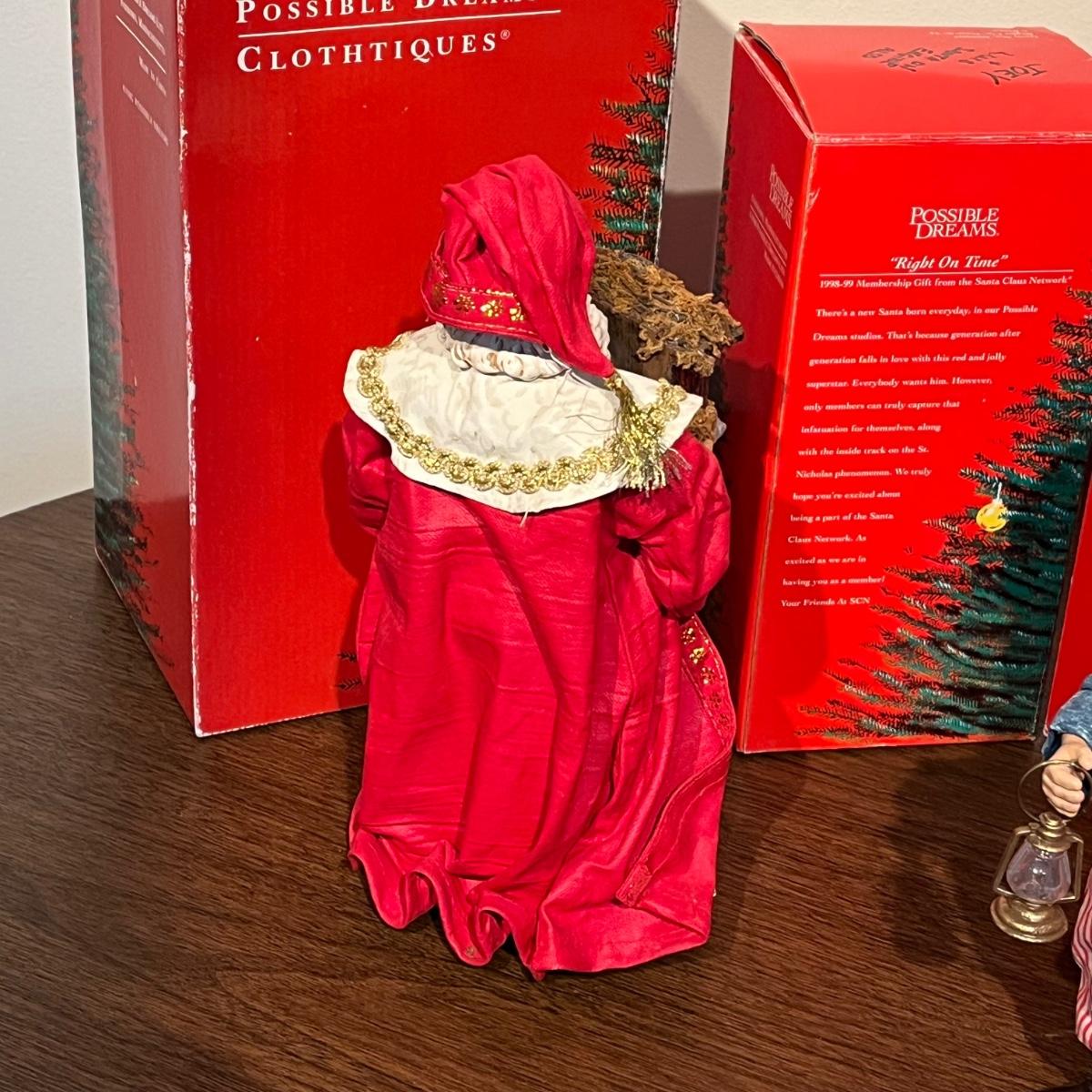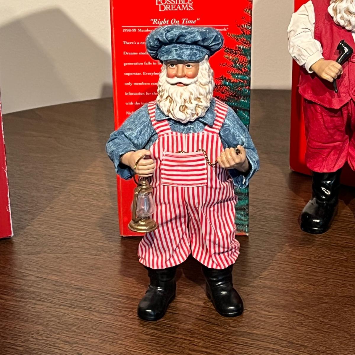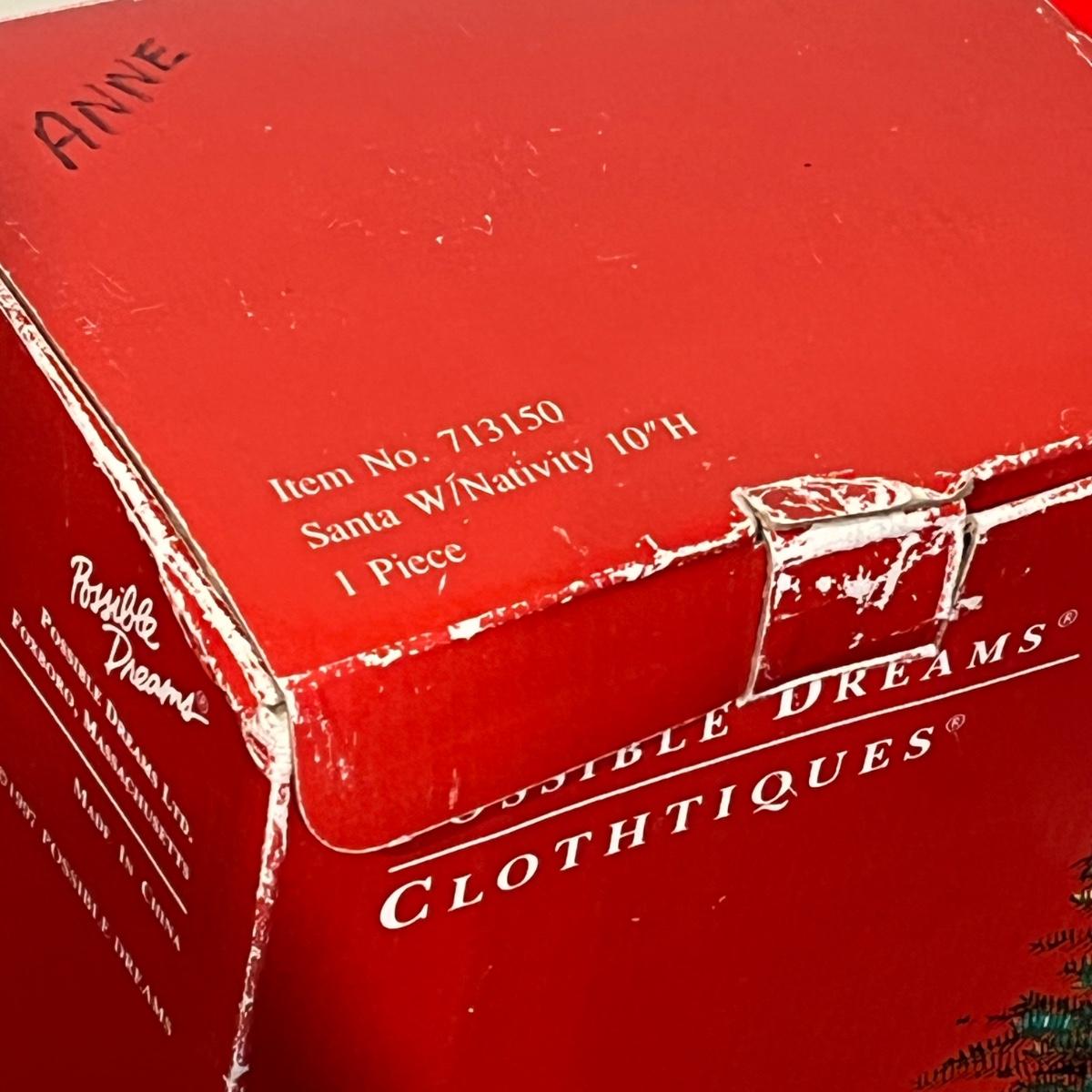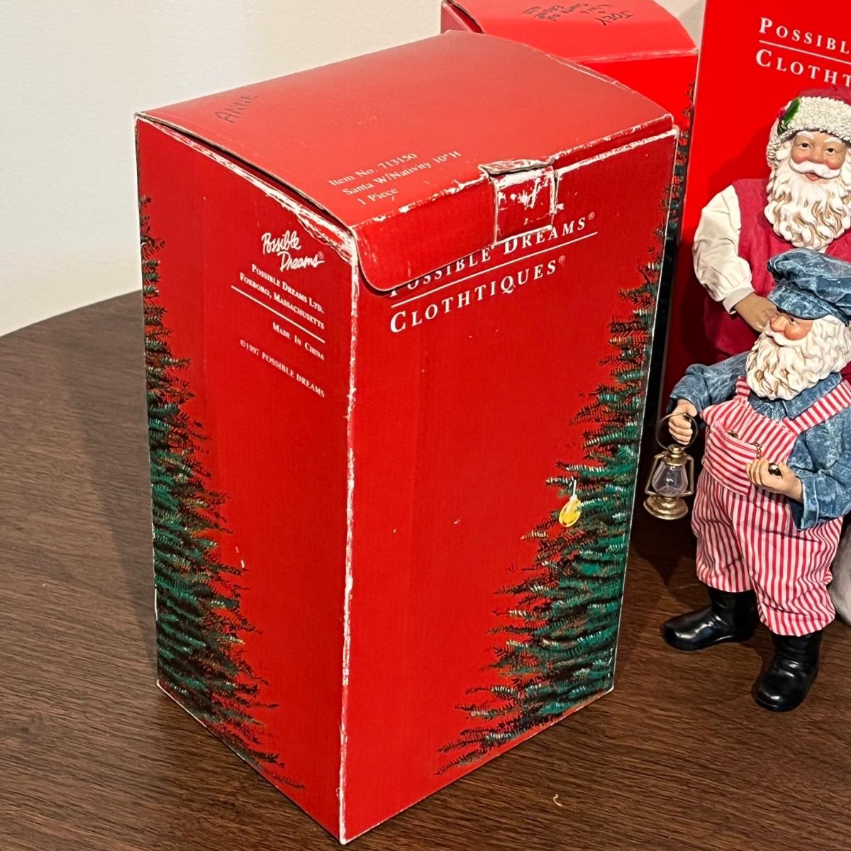 LOT 122G: Possible Dreams Clothtique Santa Figurines - Santa W/ Nativity, Right On Time, A Frosty Friend