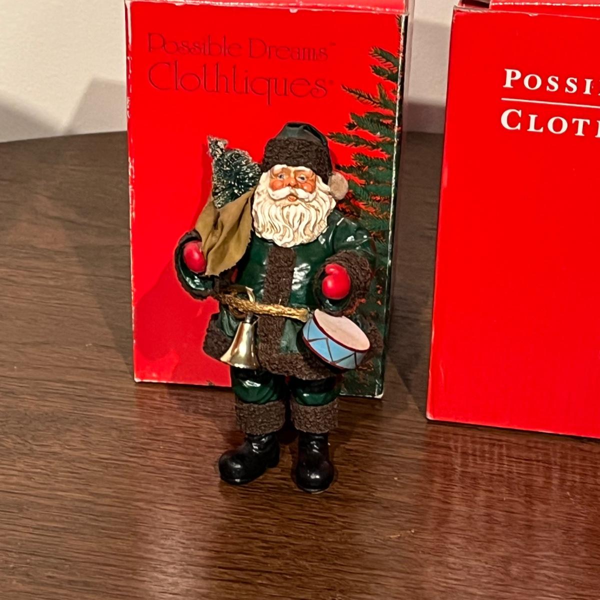 LOT 130G: Possible Dreams Clothtique Santas - A Tree For The Children, Wish Upon a Star, Green Coat