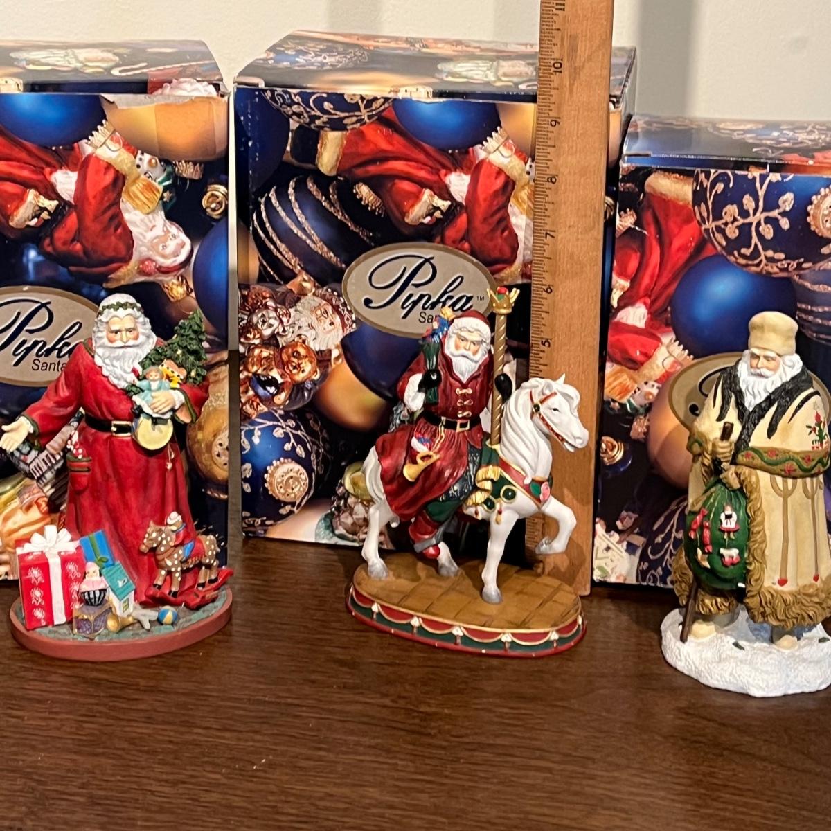 LOT 134G: Pipka Santa Figurines - German Village Traveler, A Gift To You Santa, Carousel Santa, Hungarian Santa