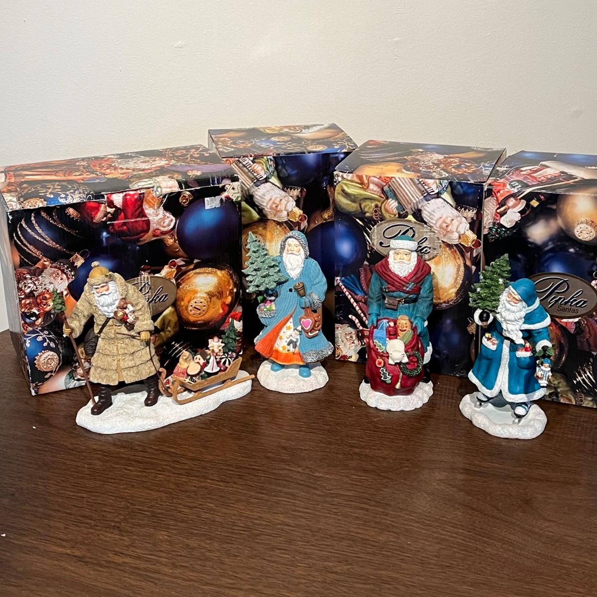 LOT 136F: Pipka Reflections of Christmas Figurines - Father Beisnickle, Bavarian Santa, Canadian Santa, Joy of Skating Santa