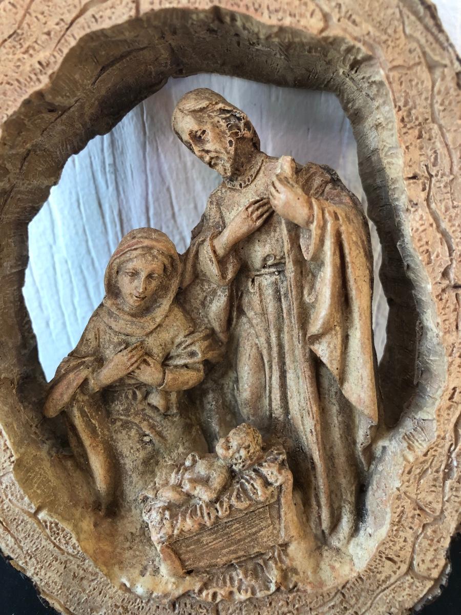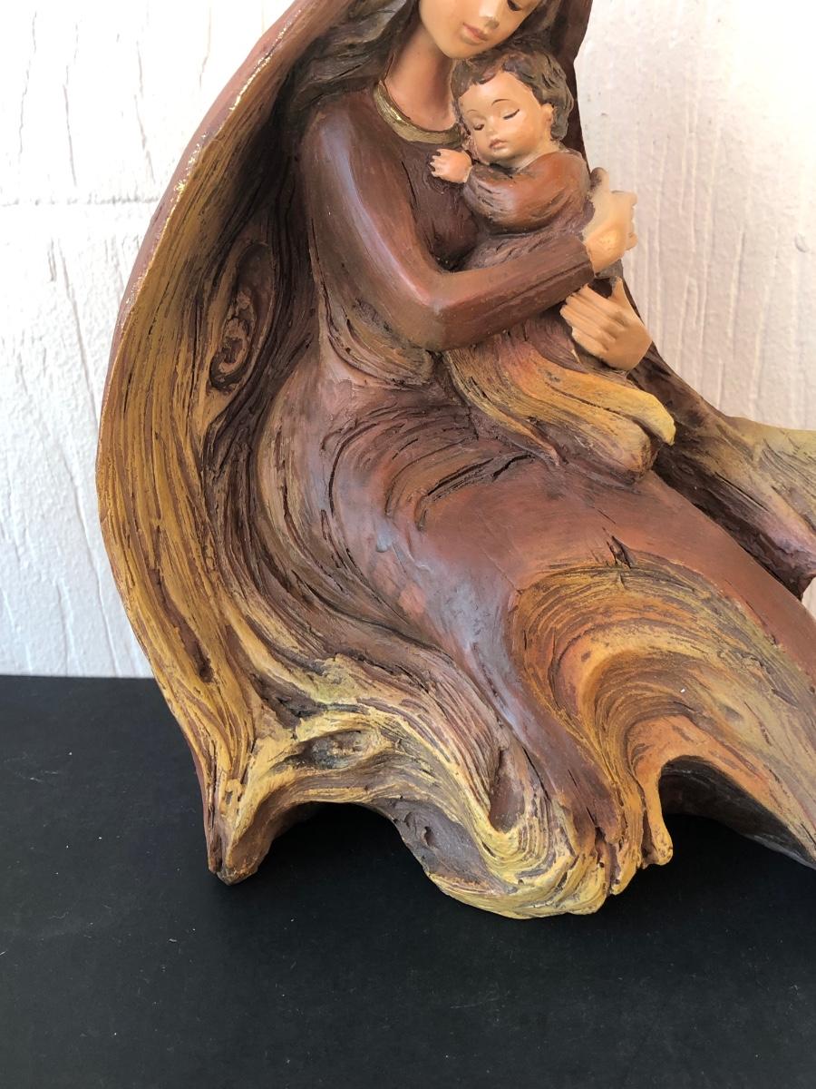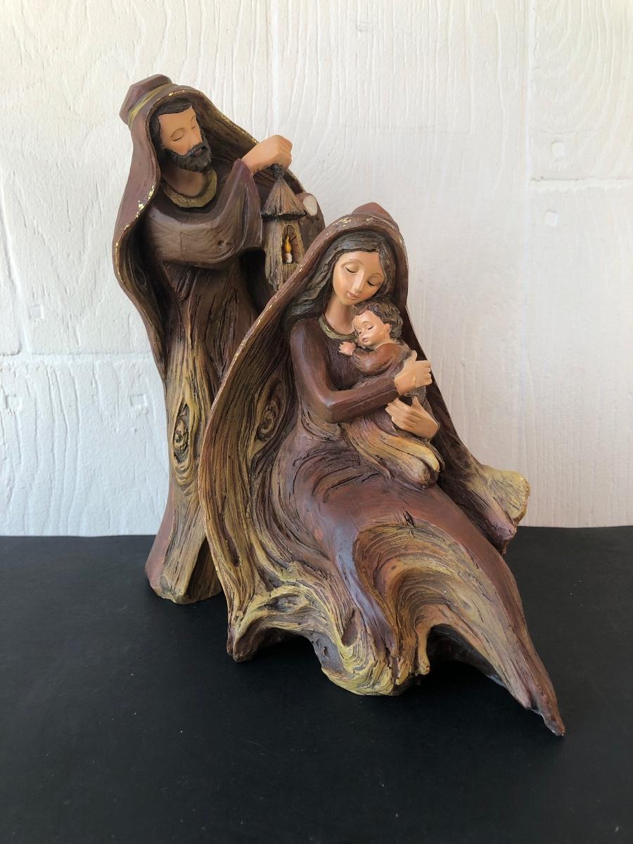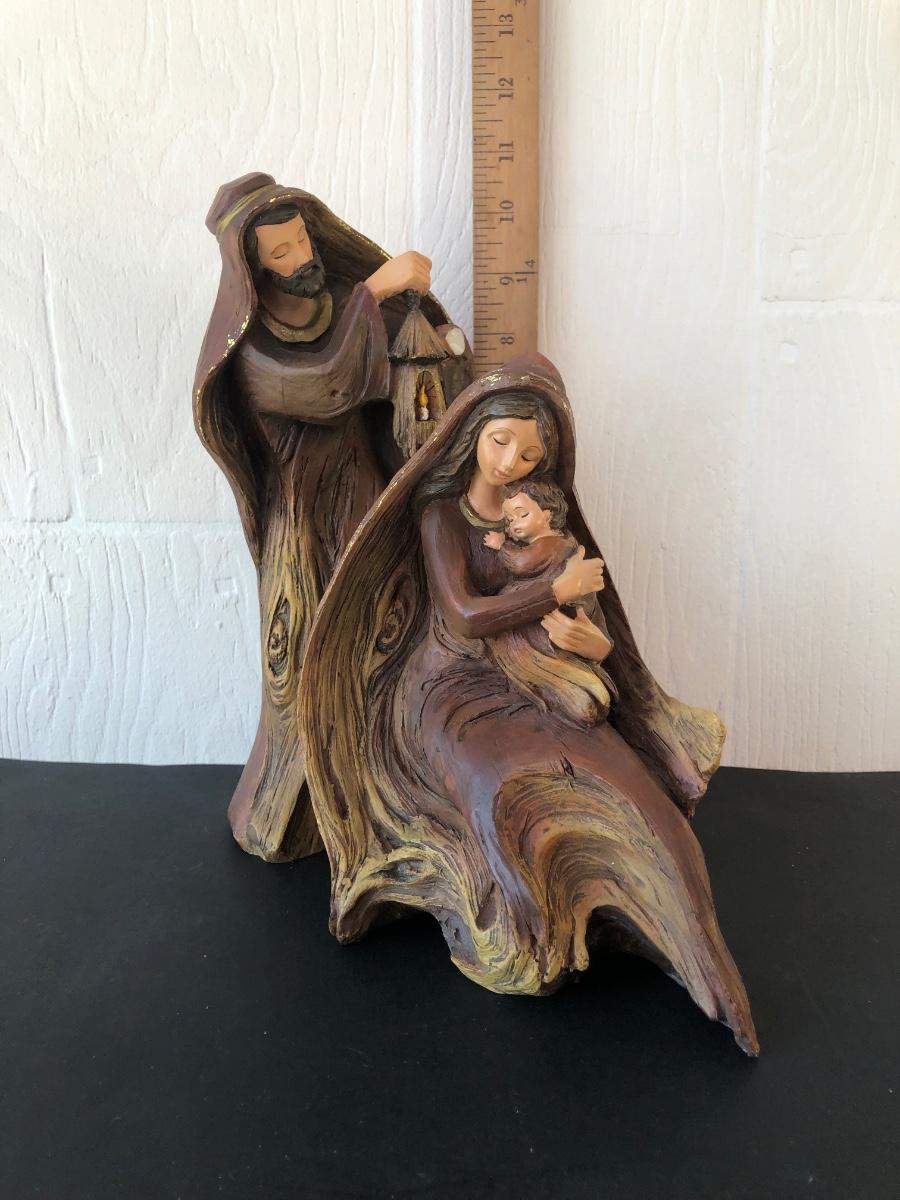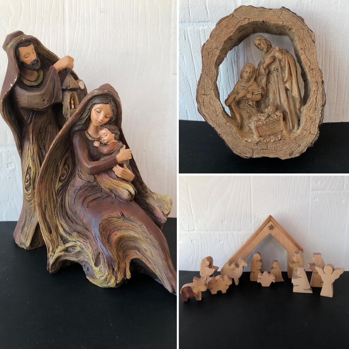 LOT 166G: Vintage Wood-Like Roman Inc. Holy Family Sculptures, Wood Ring Holy Family & Appalachian Wood Nativity Set
