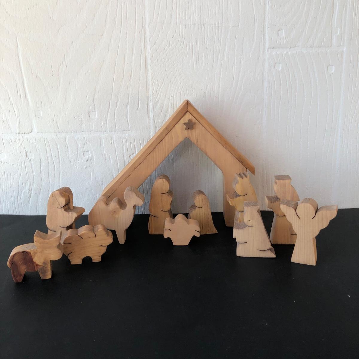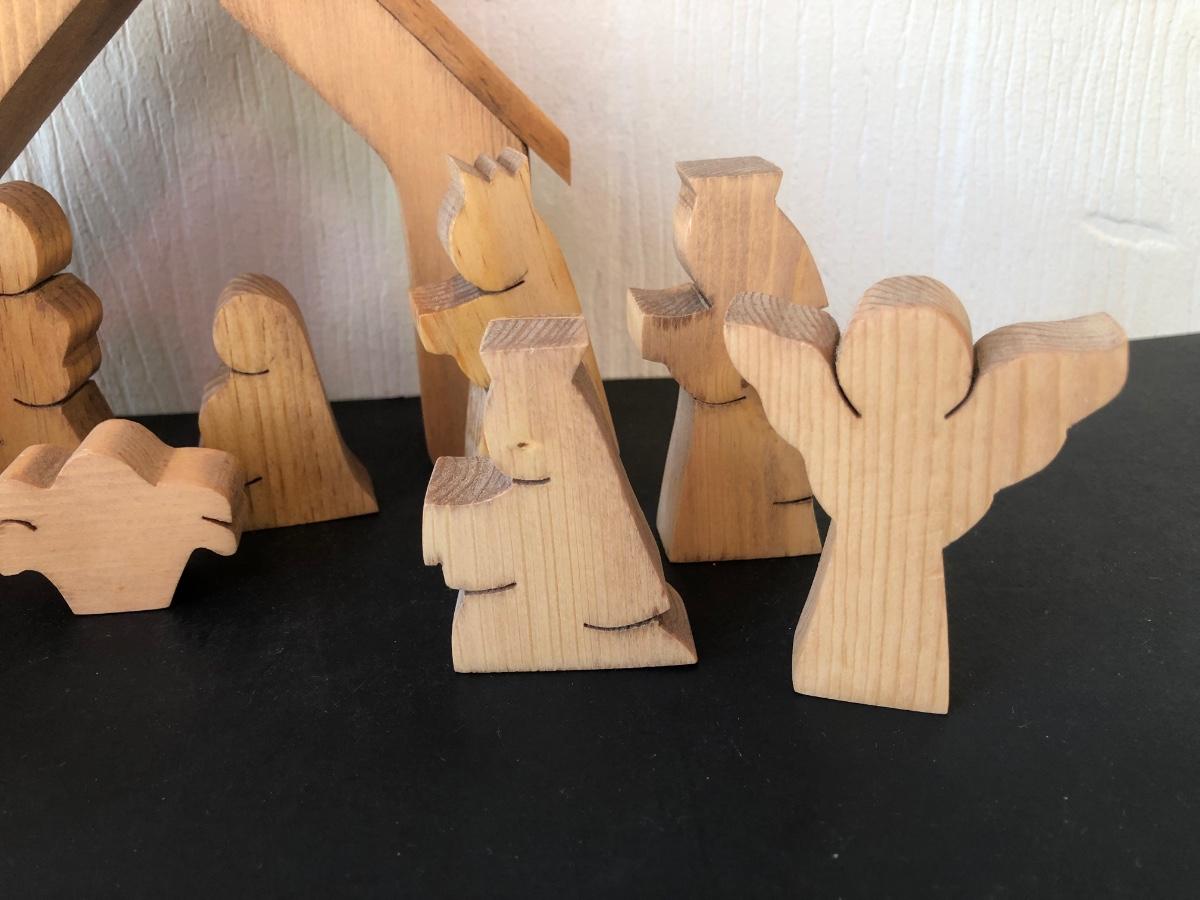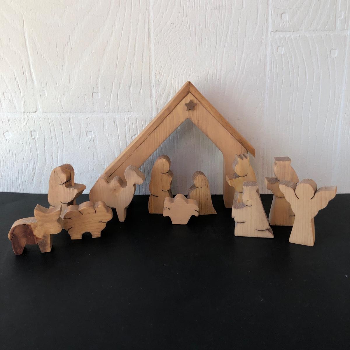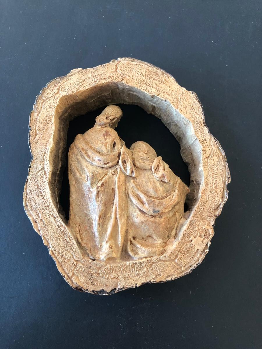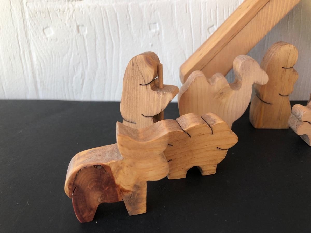 LOT 166G: Vintage Wood-Like Roman Inc. Holy Family Sculptures, Wood Ring Holy Family & Appalachian Wood Nativity Set