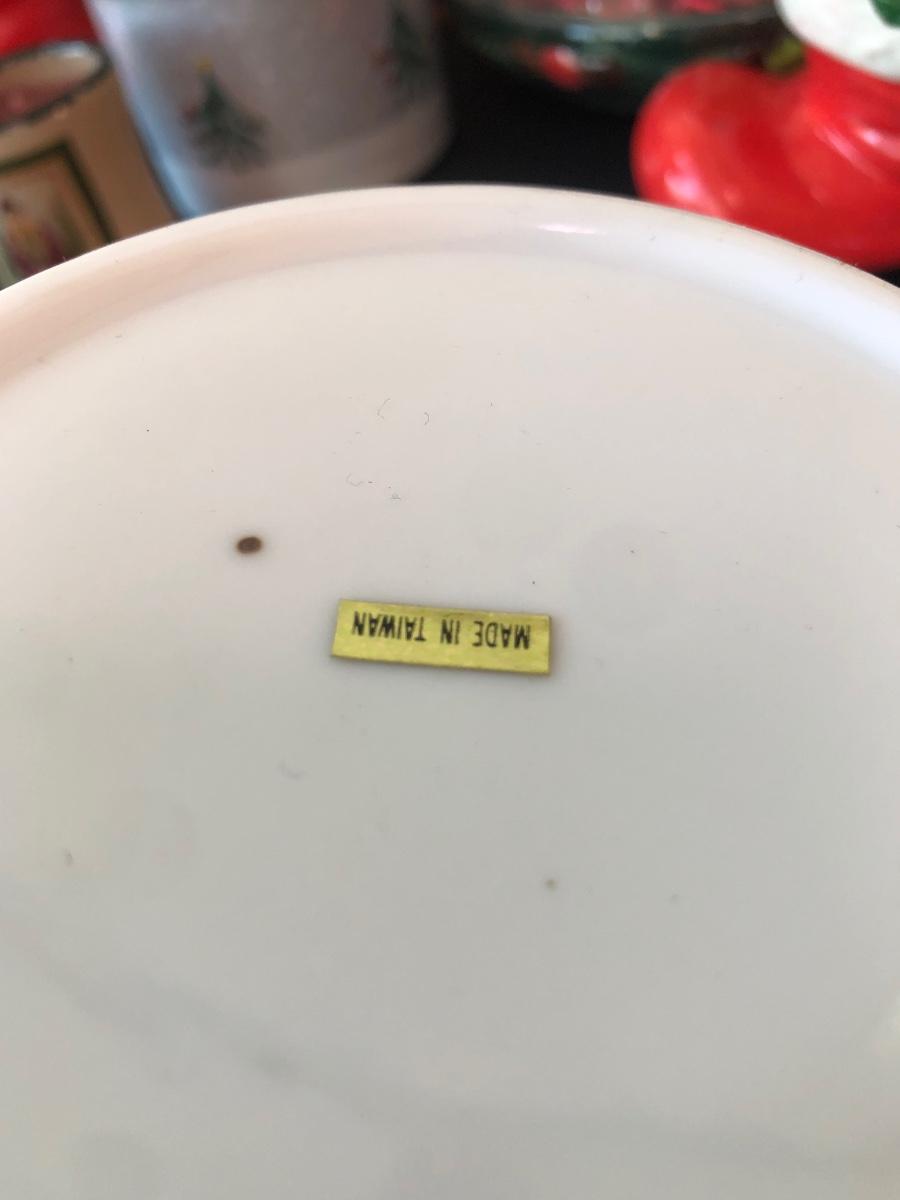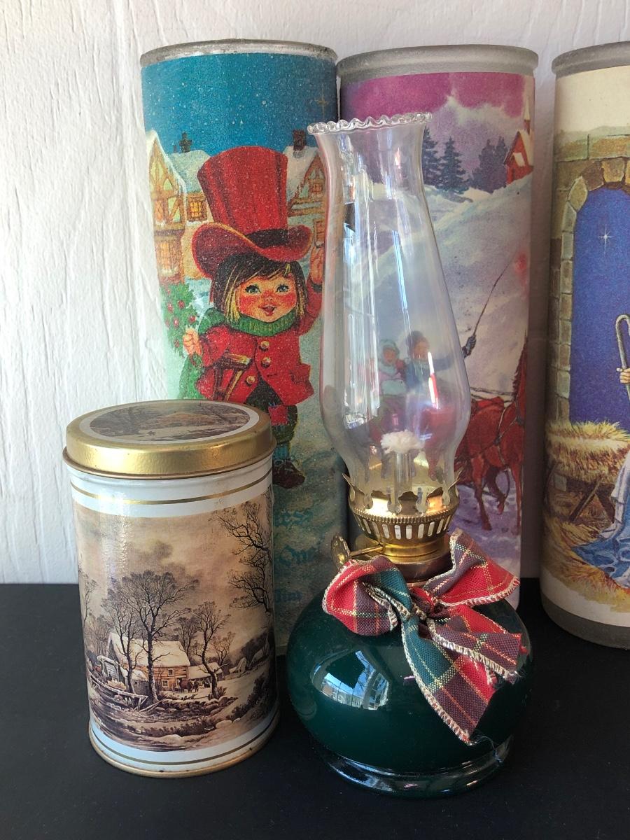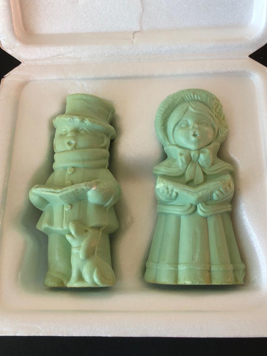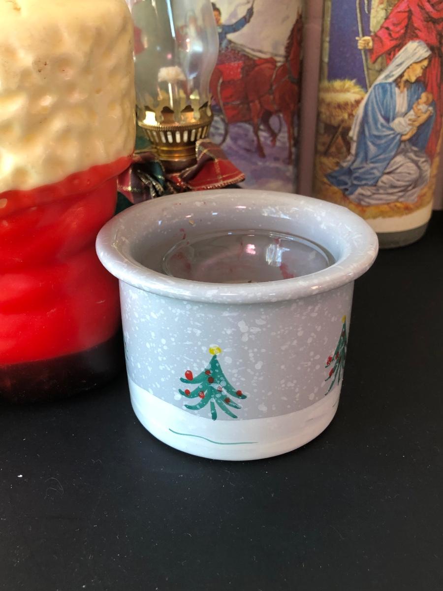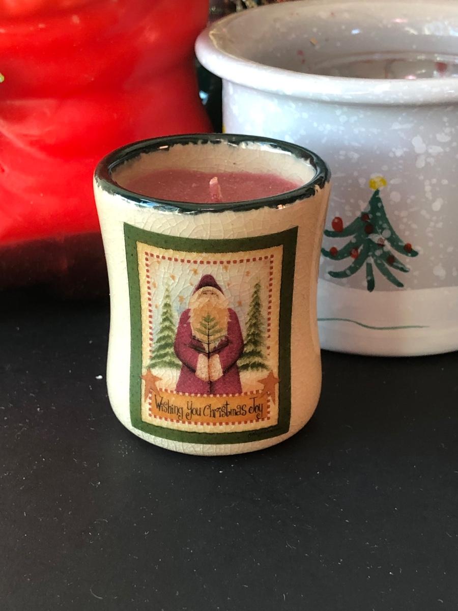 LOT 168G: Vintage Christmas Decor - 1995 LE Hermitage Pottery Santa Trinket Dish, 2-Tier Santa Candy Dish, Avon Christmas Carolers Soap, Candles & More