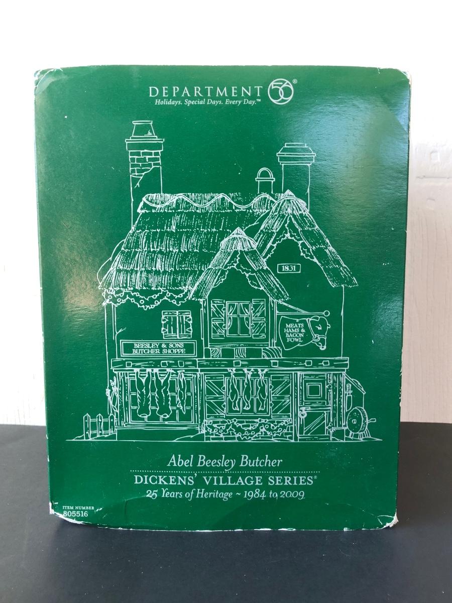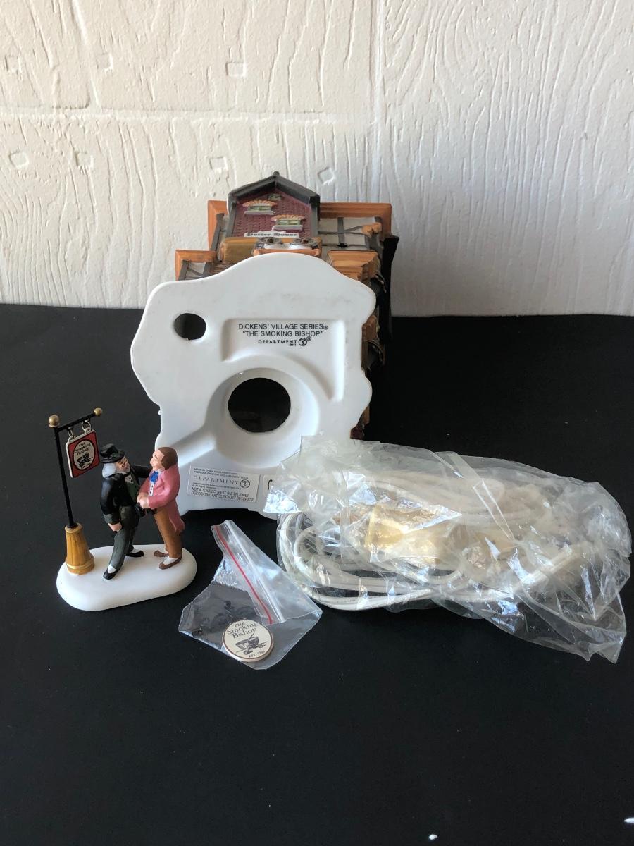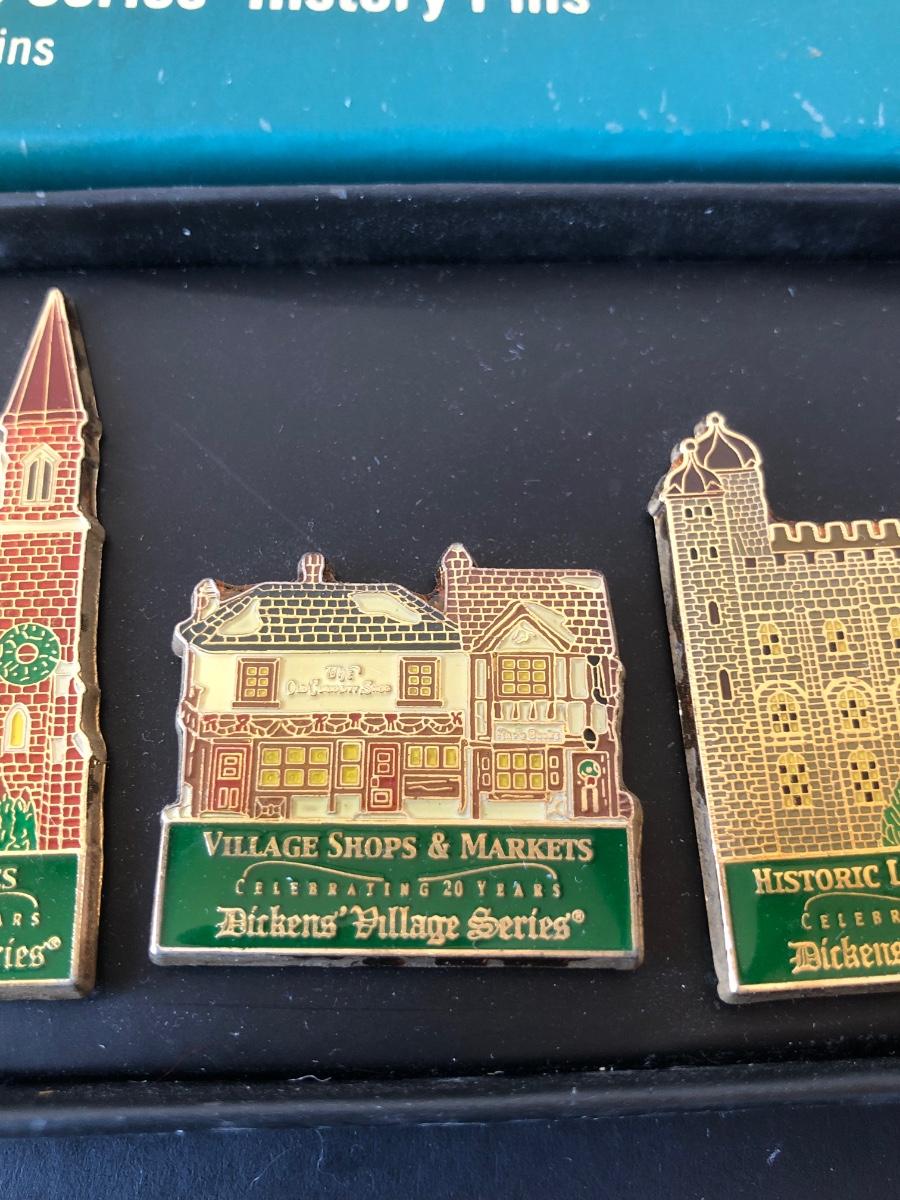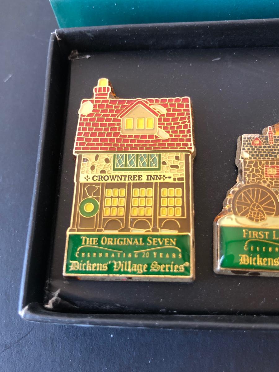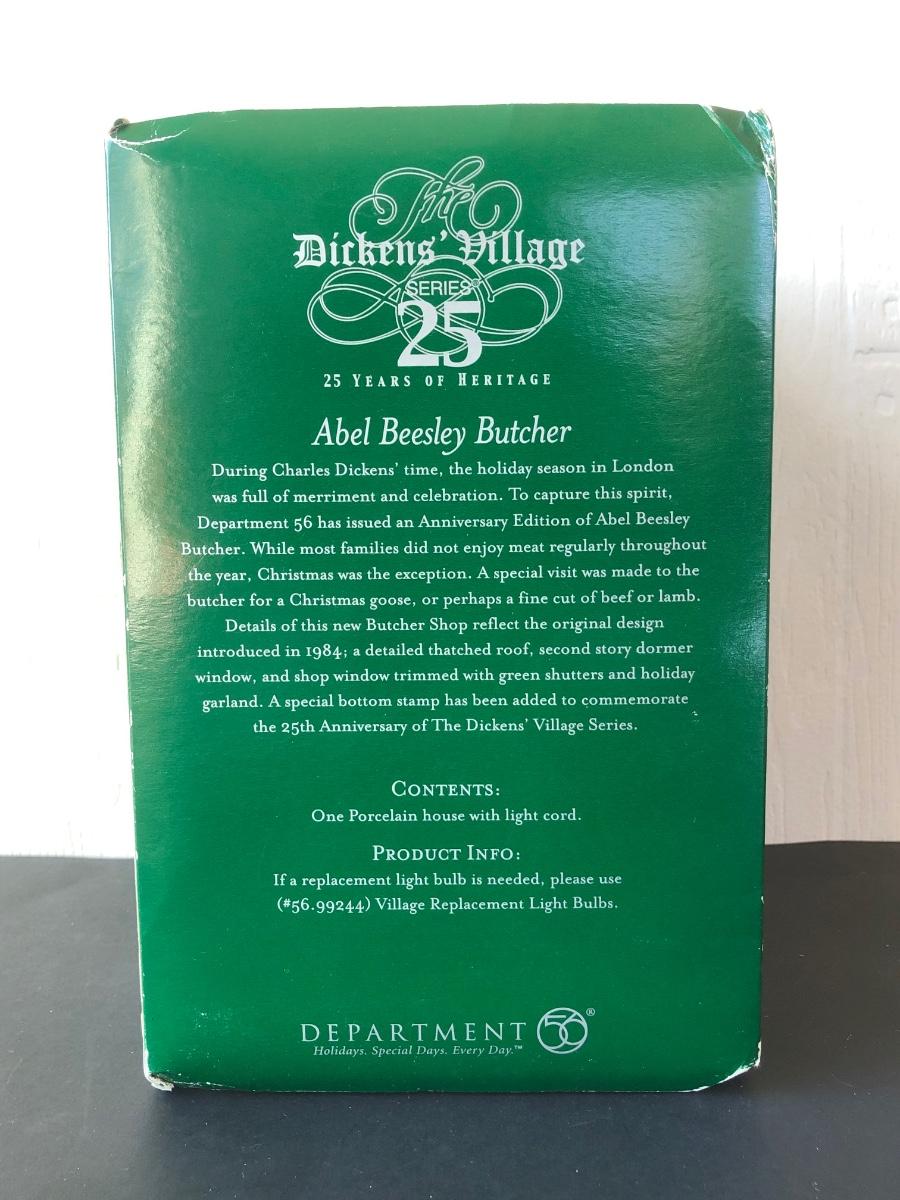 LOT 171G: Department 56 Dickens' Village 25th Anniversary - Golden Swan Baker (805517) & Abel Beesley Butcher (805516) w/ LE Smoking Bishop (4023612) & 20th Anniversary Pins
