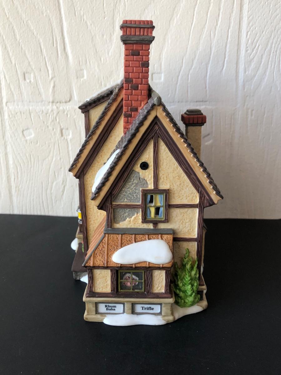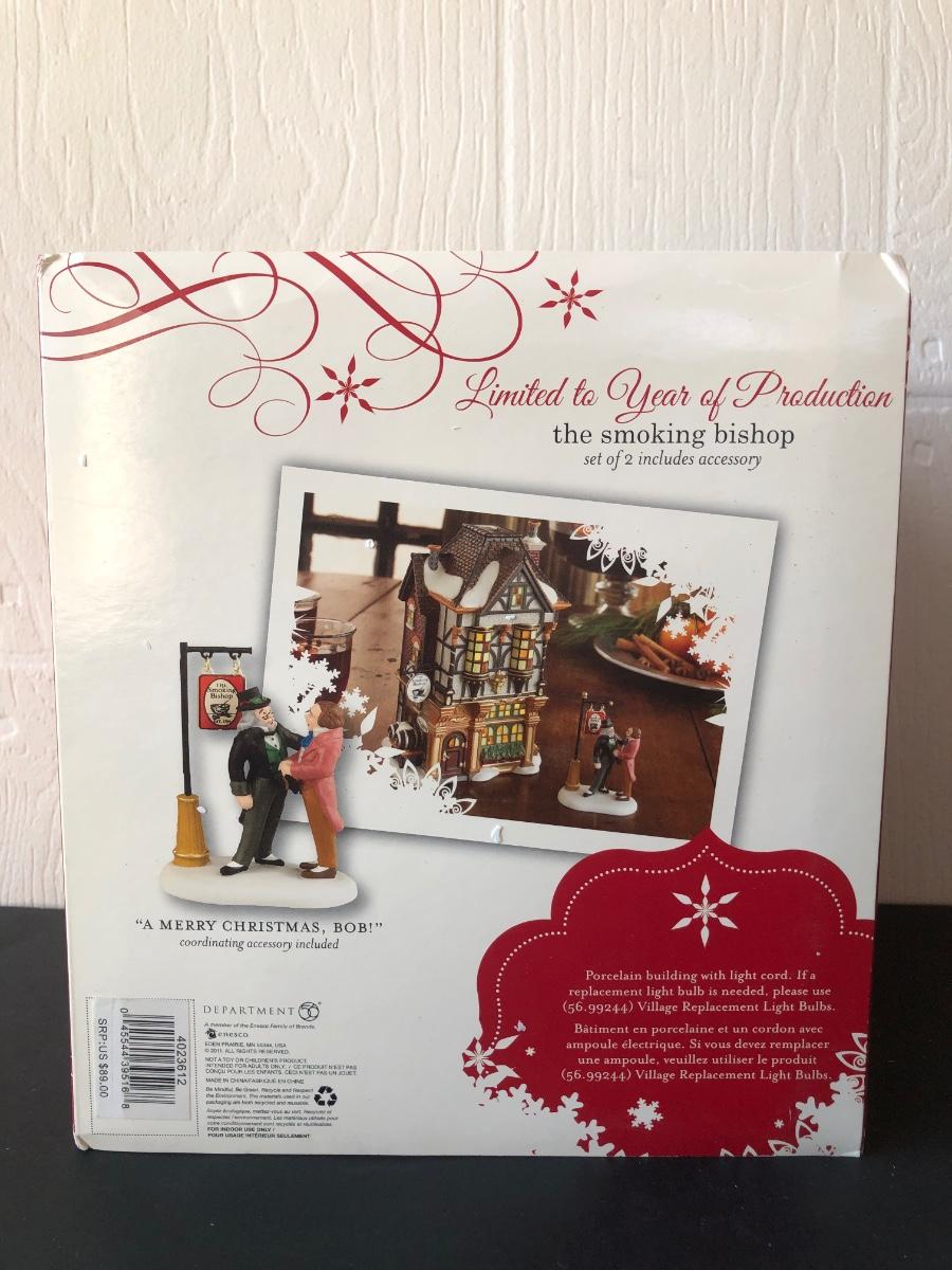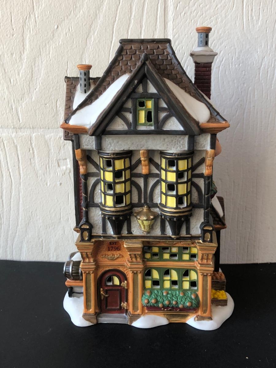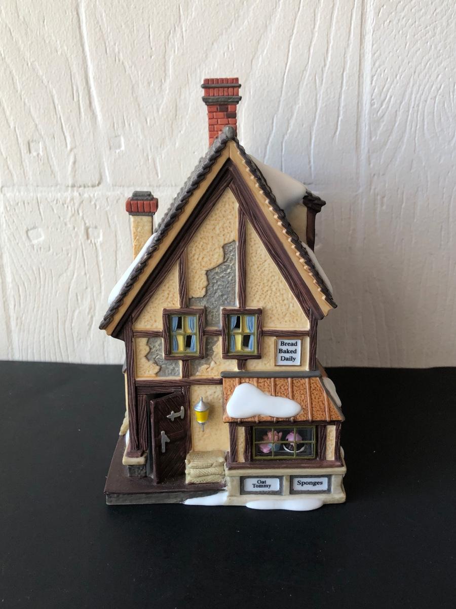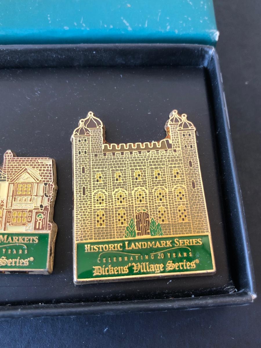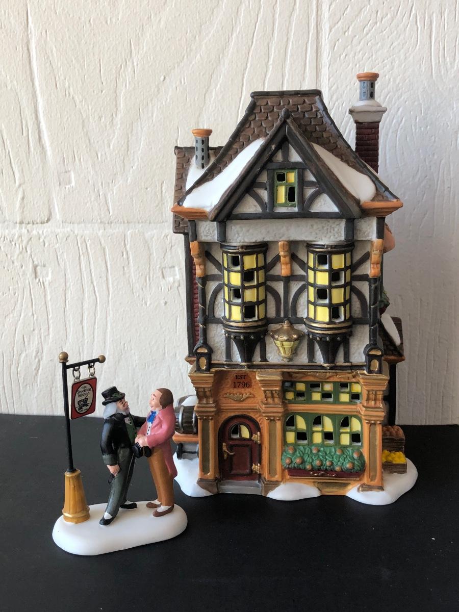 LOT 171G: Department 56 Dickens' Village 25th Anniversary - Golden Swan Baker (805517) & Abel Beesley Butcher (805516) w/ LE Smoking Bishop (4023612) & 20th Anniversary Pins