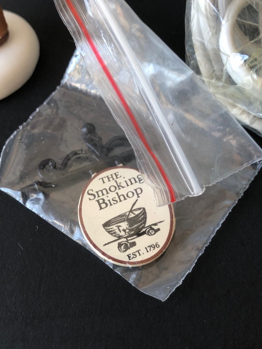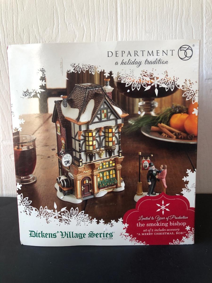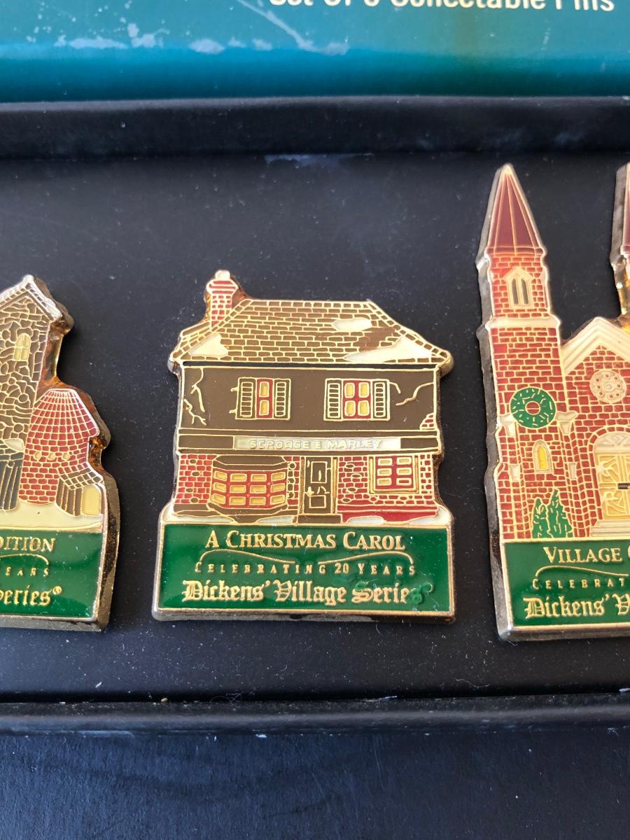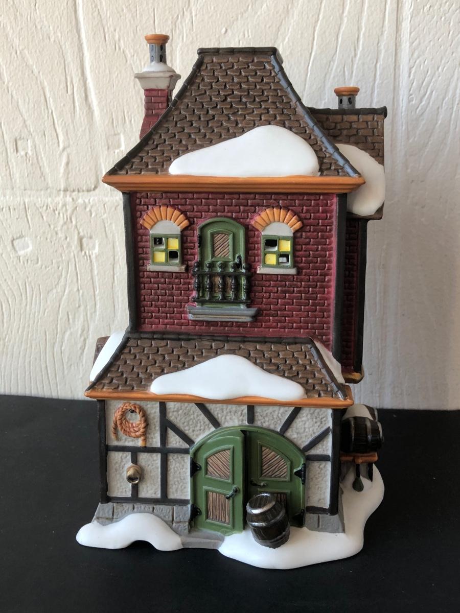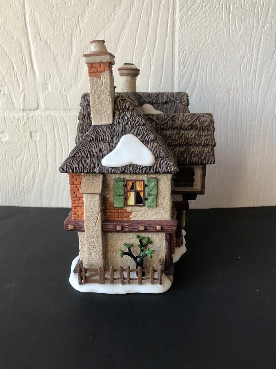 LOT 171G: Department 56 Dickens' Village 25th Anniversary - Golden Swan Baker (805517) & Abel Beesley Butcher (805516) w/ LE Smoking Bishop (4023612) & 20th Anniversary Pins