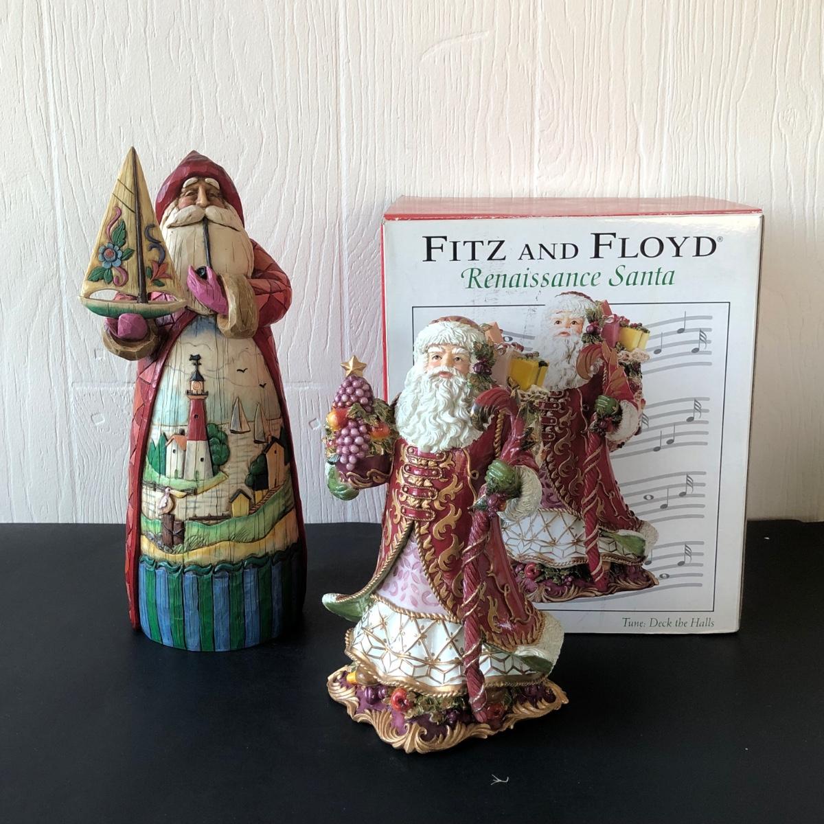 LOT 173G: Jim Shore Heartwood Creek 2003 A Ships Sails In Bearing Gifts (112239) and Fitz & Floyd Renaissance Santa w/ Box