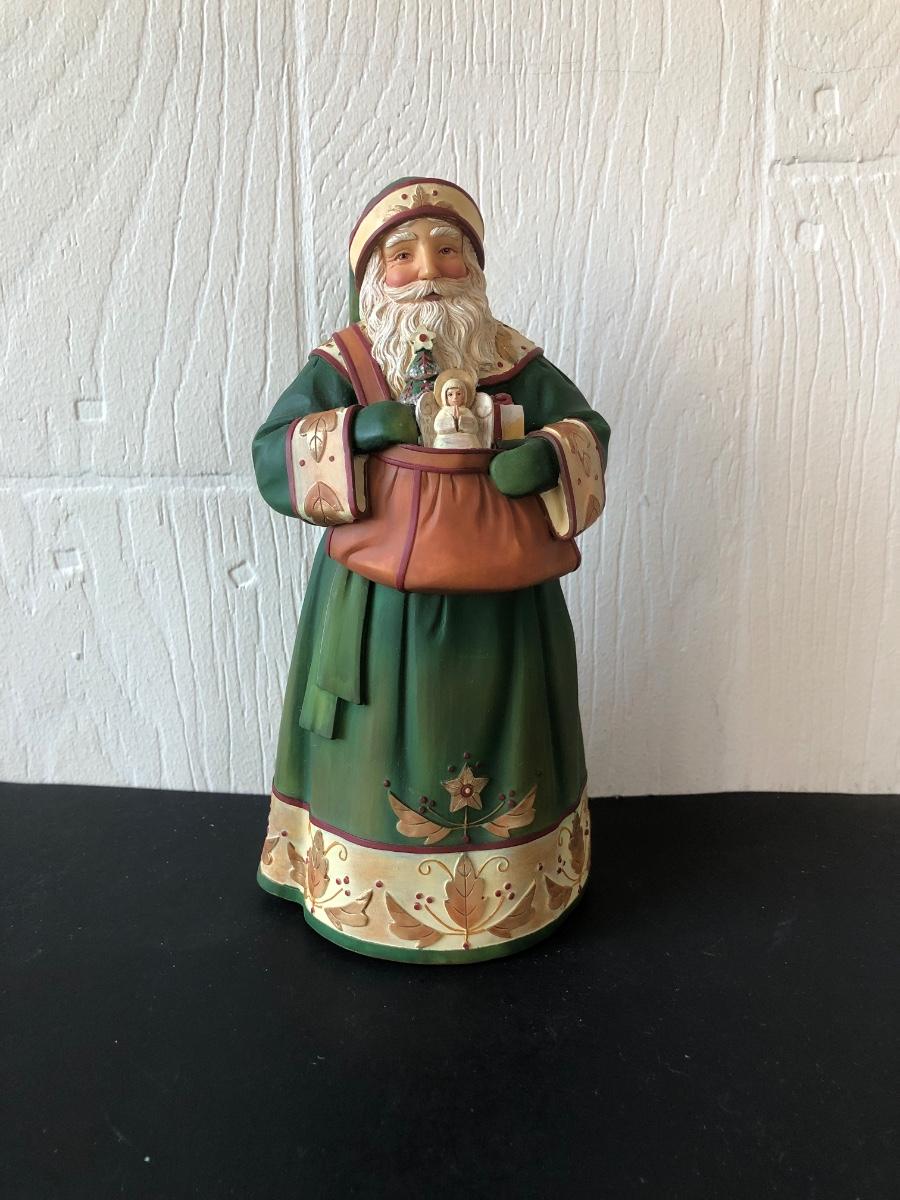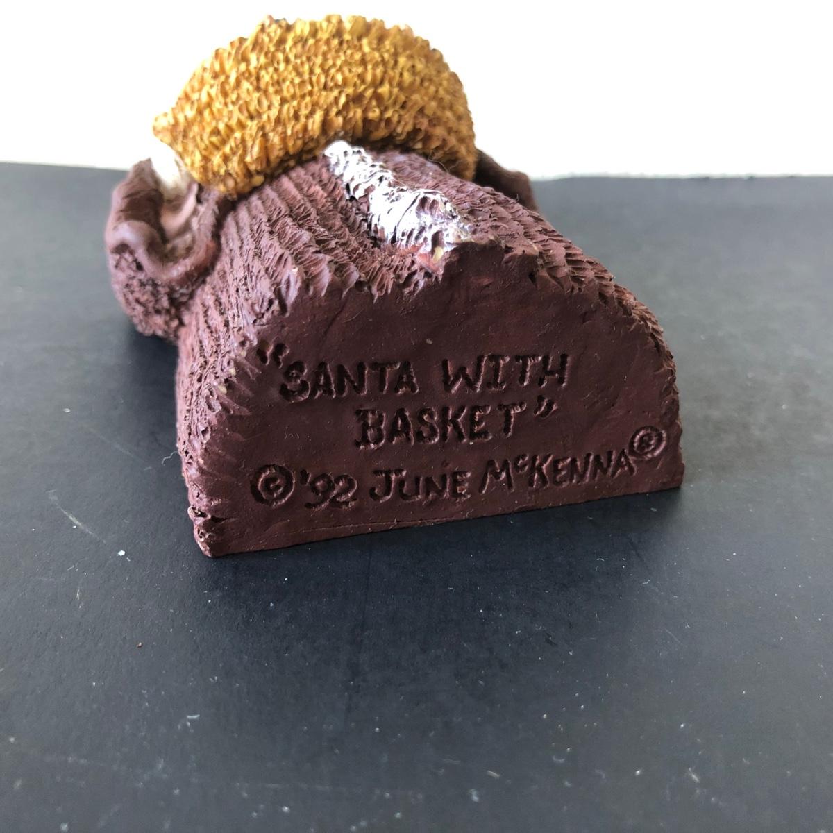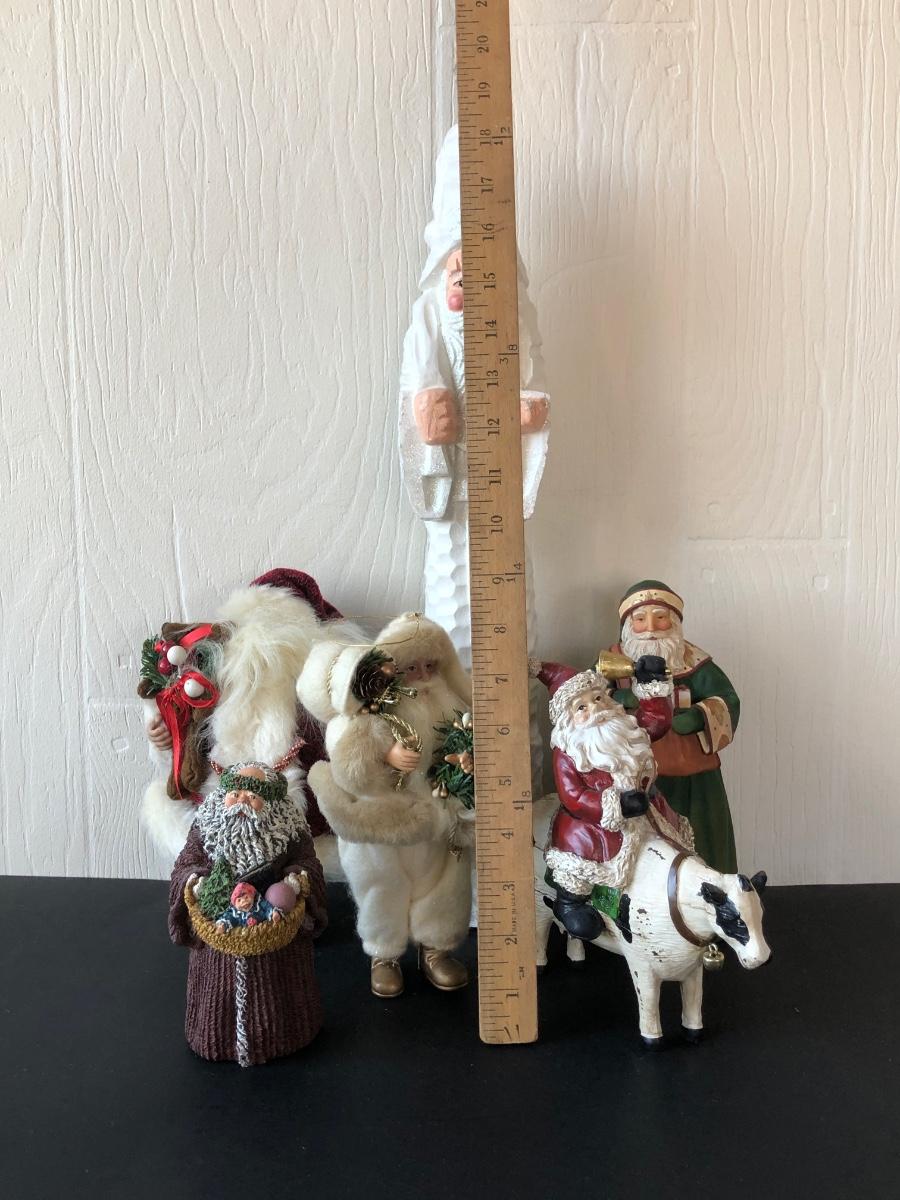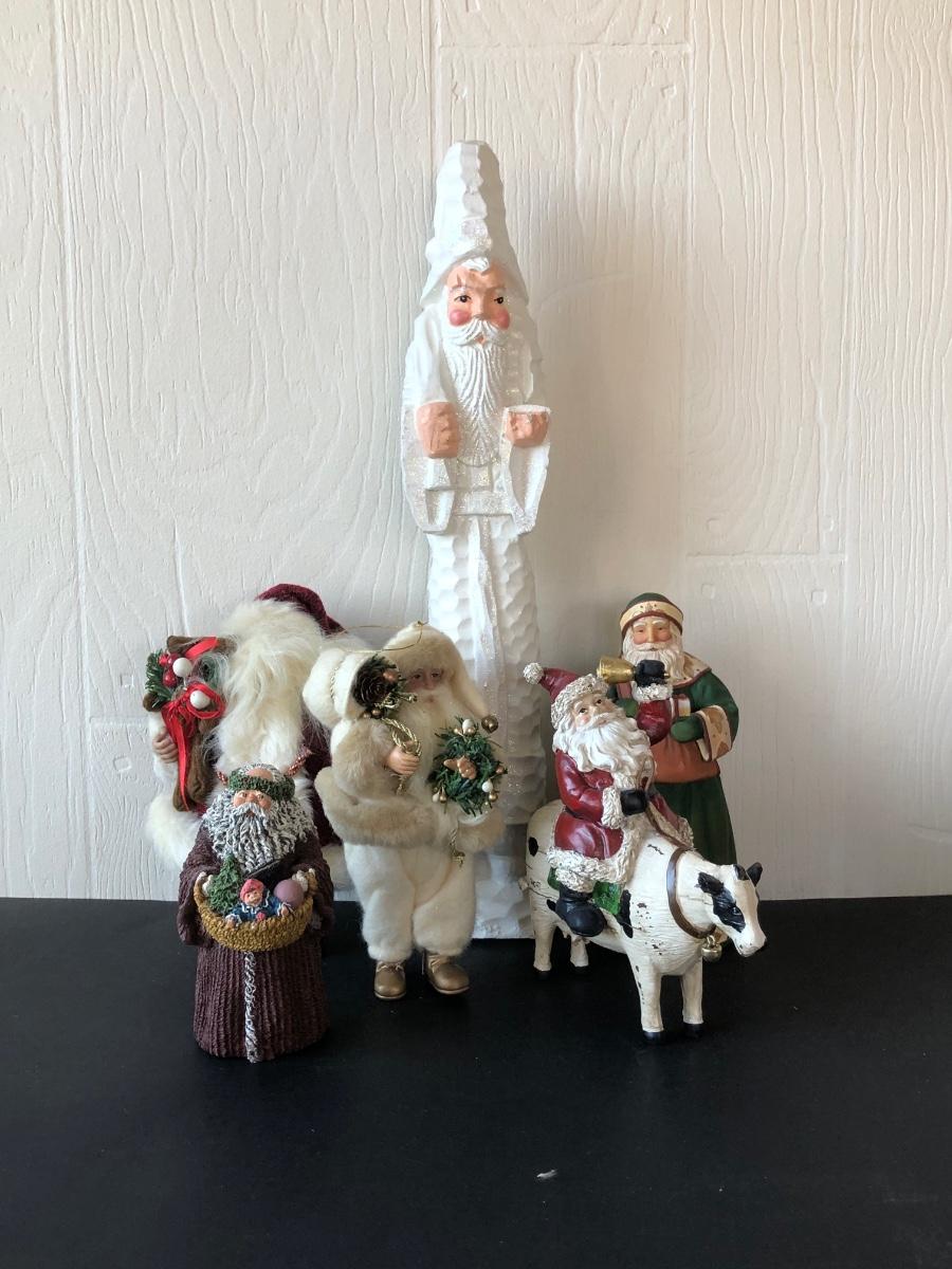 LOT 179G: Tall White Santa Made in the Philippines, Signed 1992 June McKenna Santa w/ Basket, 2007 Wonders of Christmas Santa by Judith Ann Griffith, Santa on Cow & More
