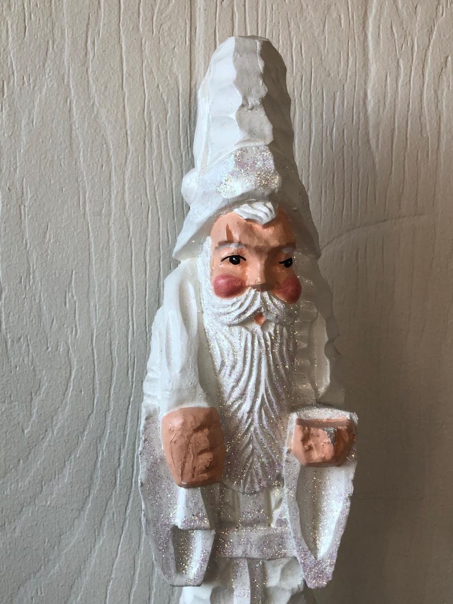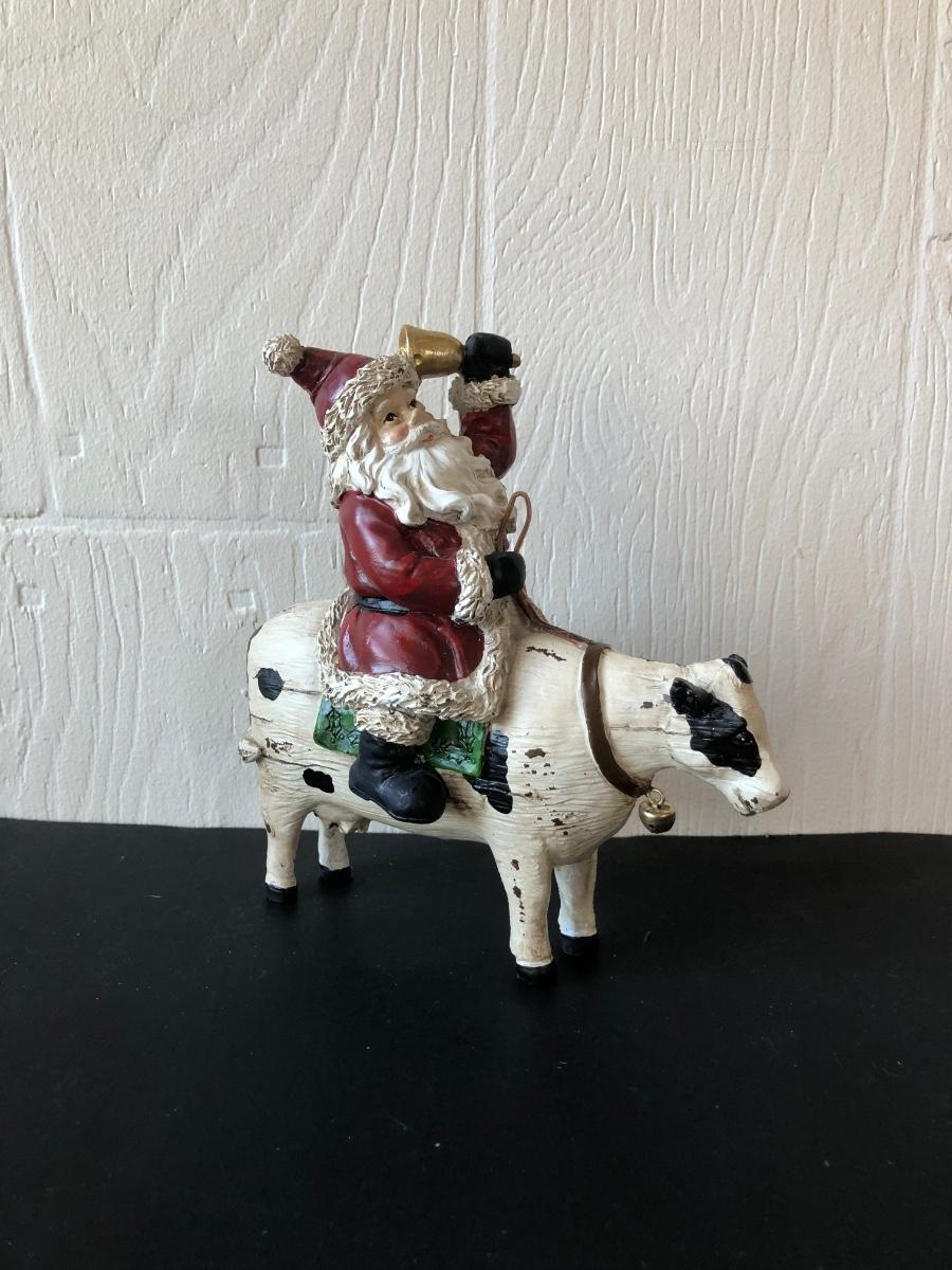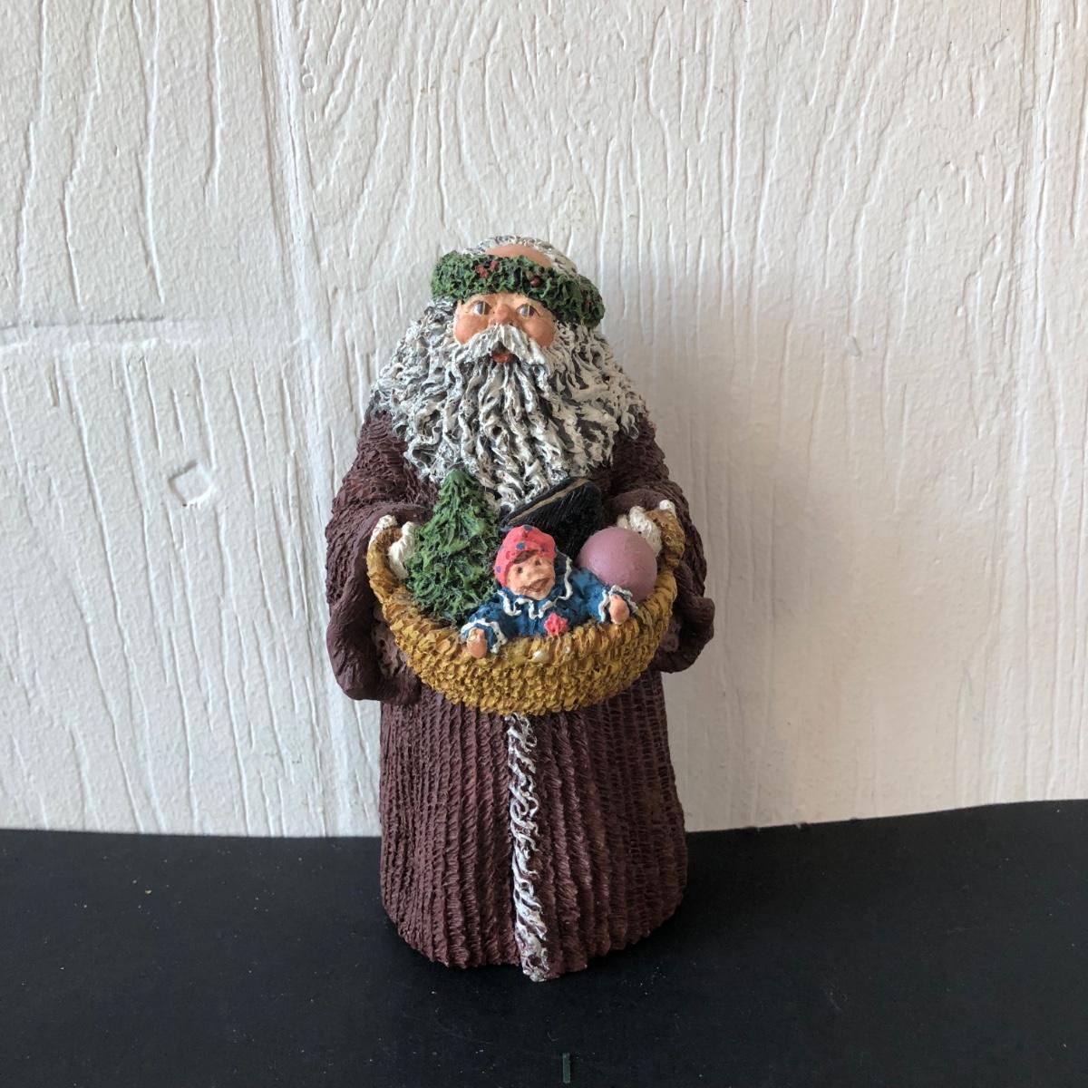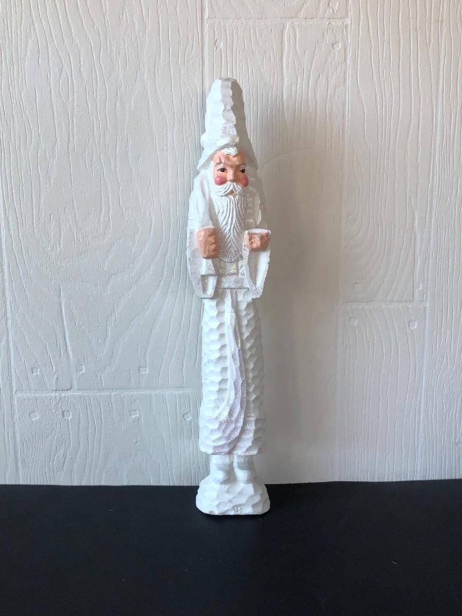 LOT 179G: Tall White Santa Made in the Philippines, Signed 1992 June McKenna Santa w/ Basket, 2007 Wonders of Christmas Santa by Judith Ann Griffith, Santa on Cow & More