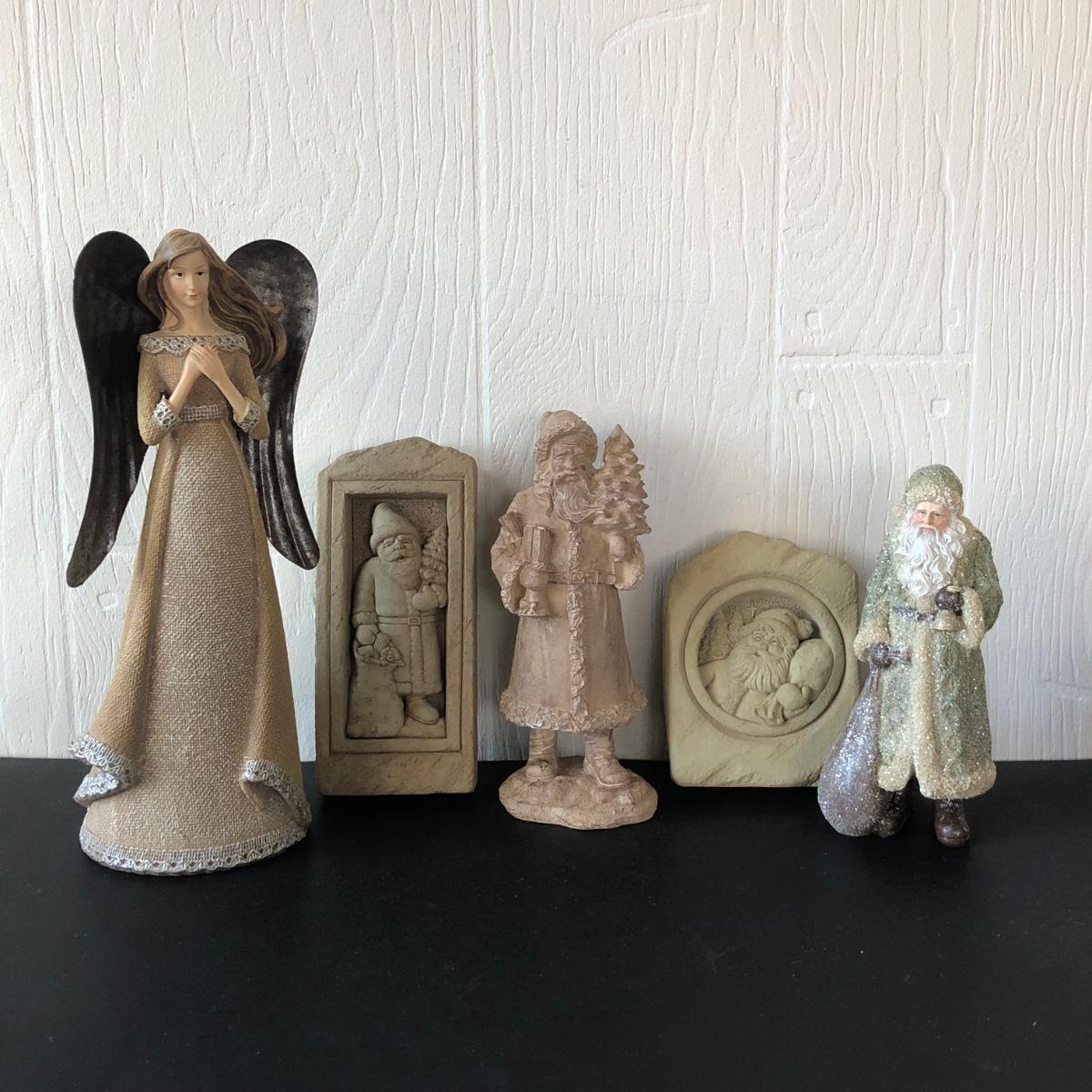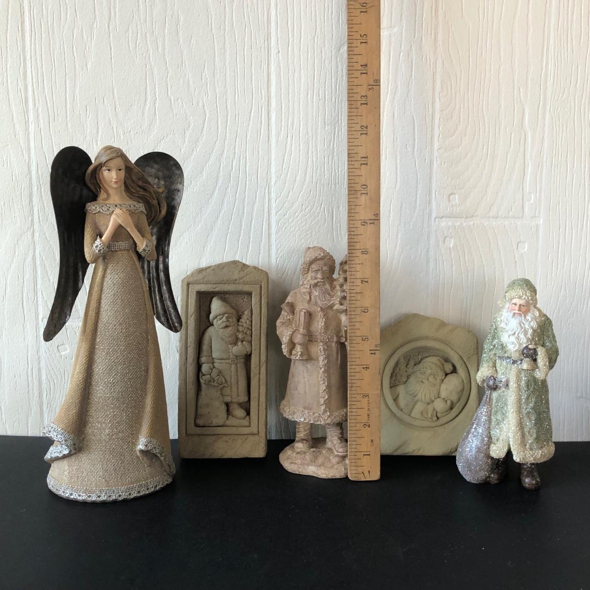 LOT 187G: Signed Carruth Pottery Santa Sculptures, Santa Figurines & Sullivan Gift Angel w/ Tin Wings