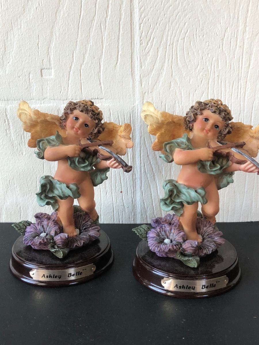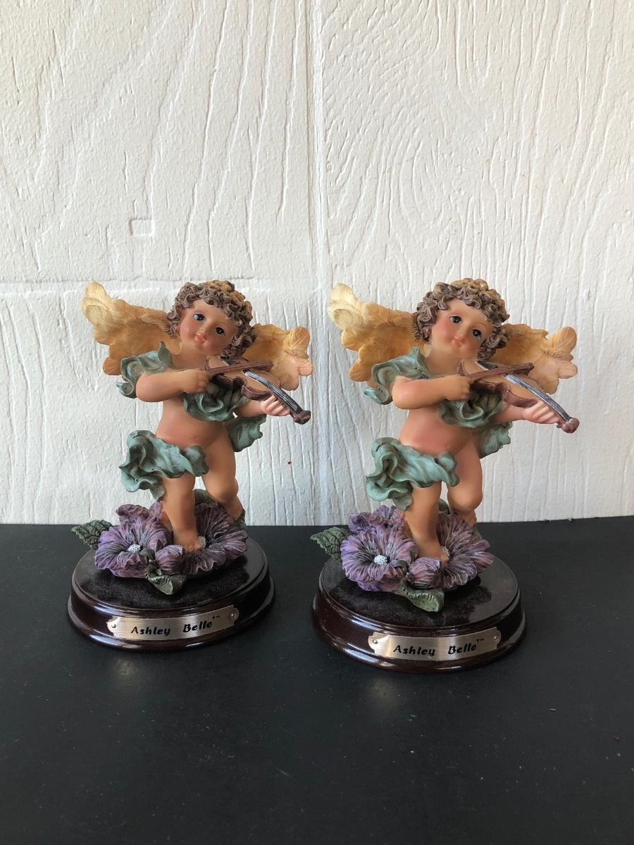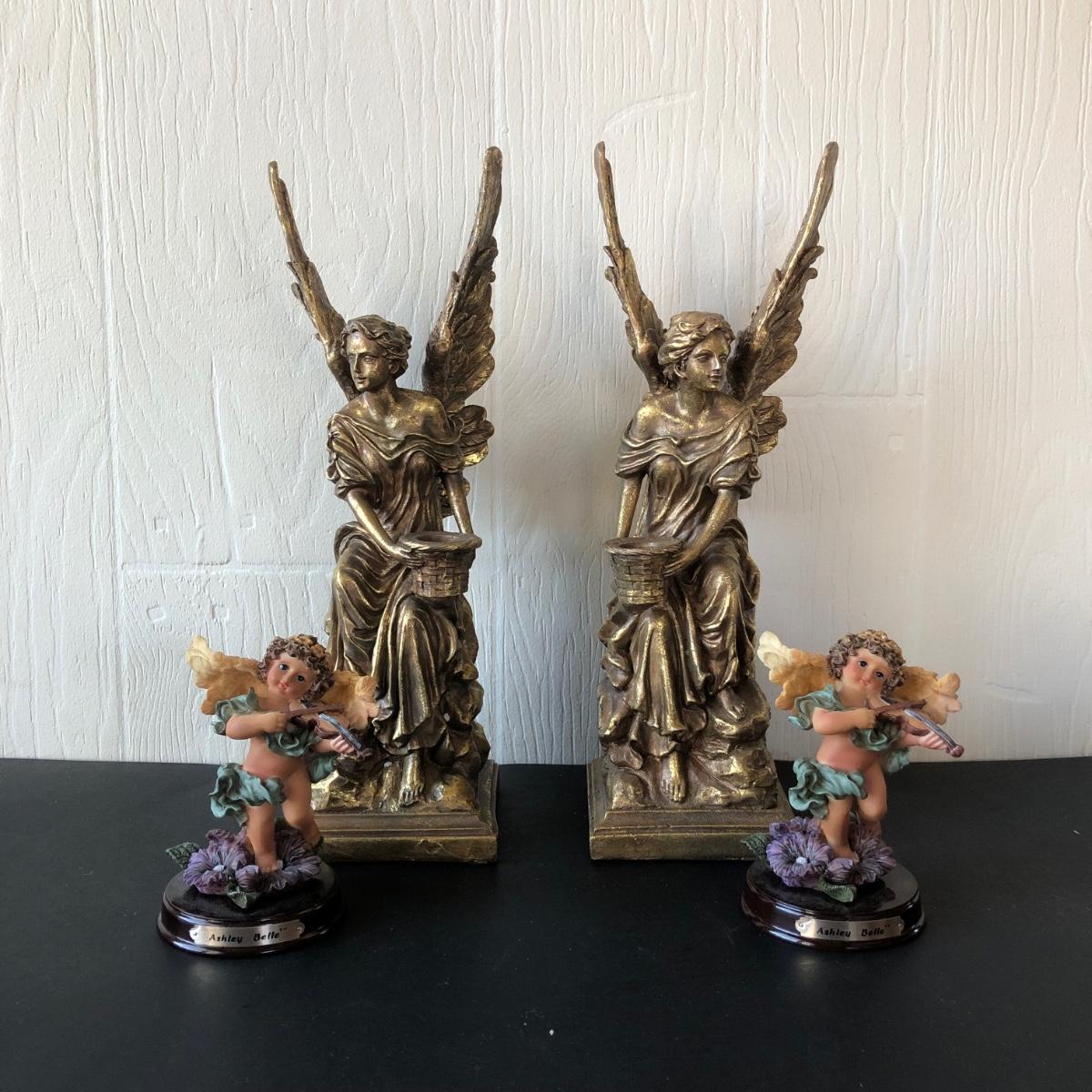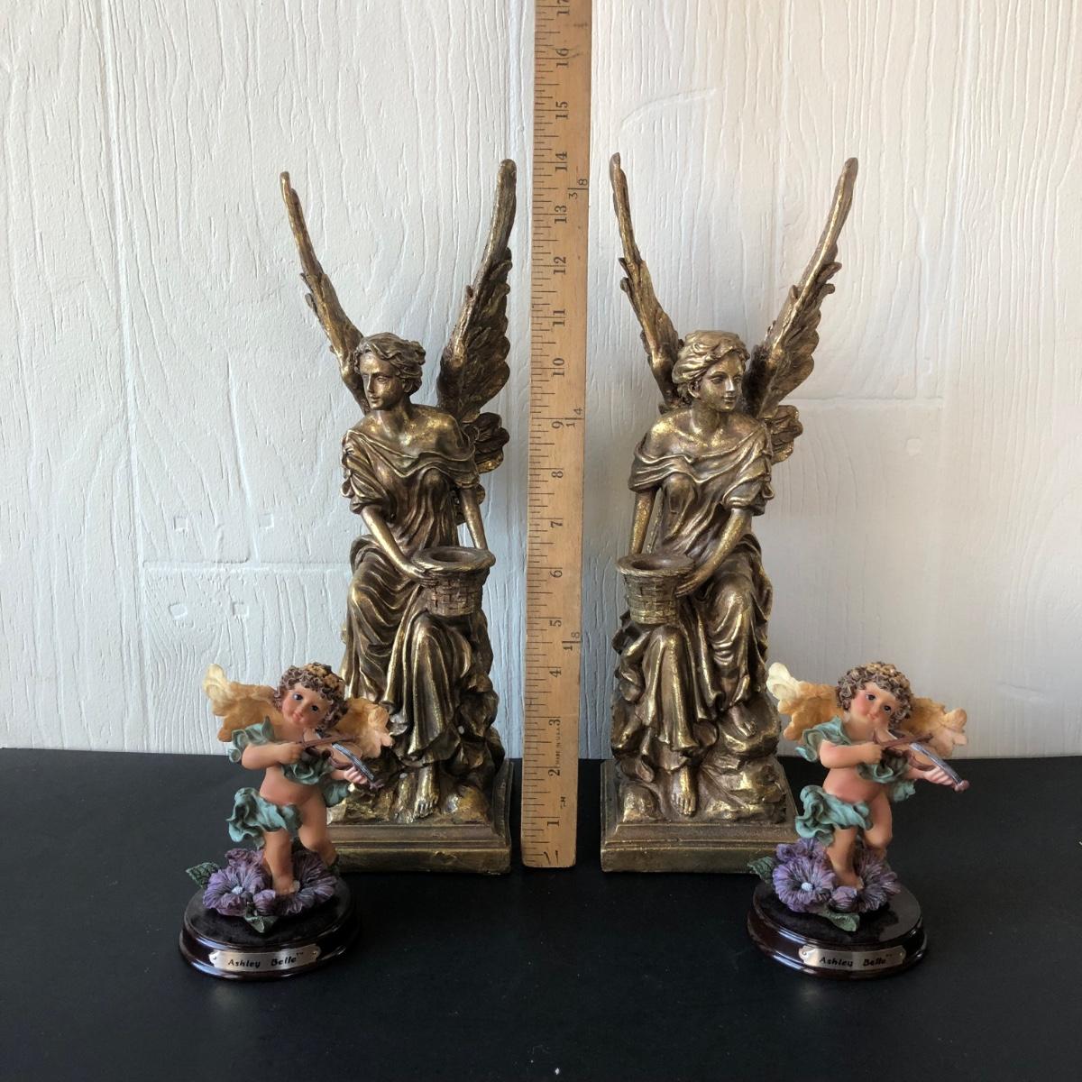 LOT 186G: Mark Roberts Collection Angel Candlestick Holders w/ Avon Ashley Belle Angels