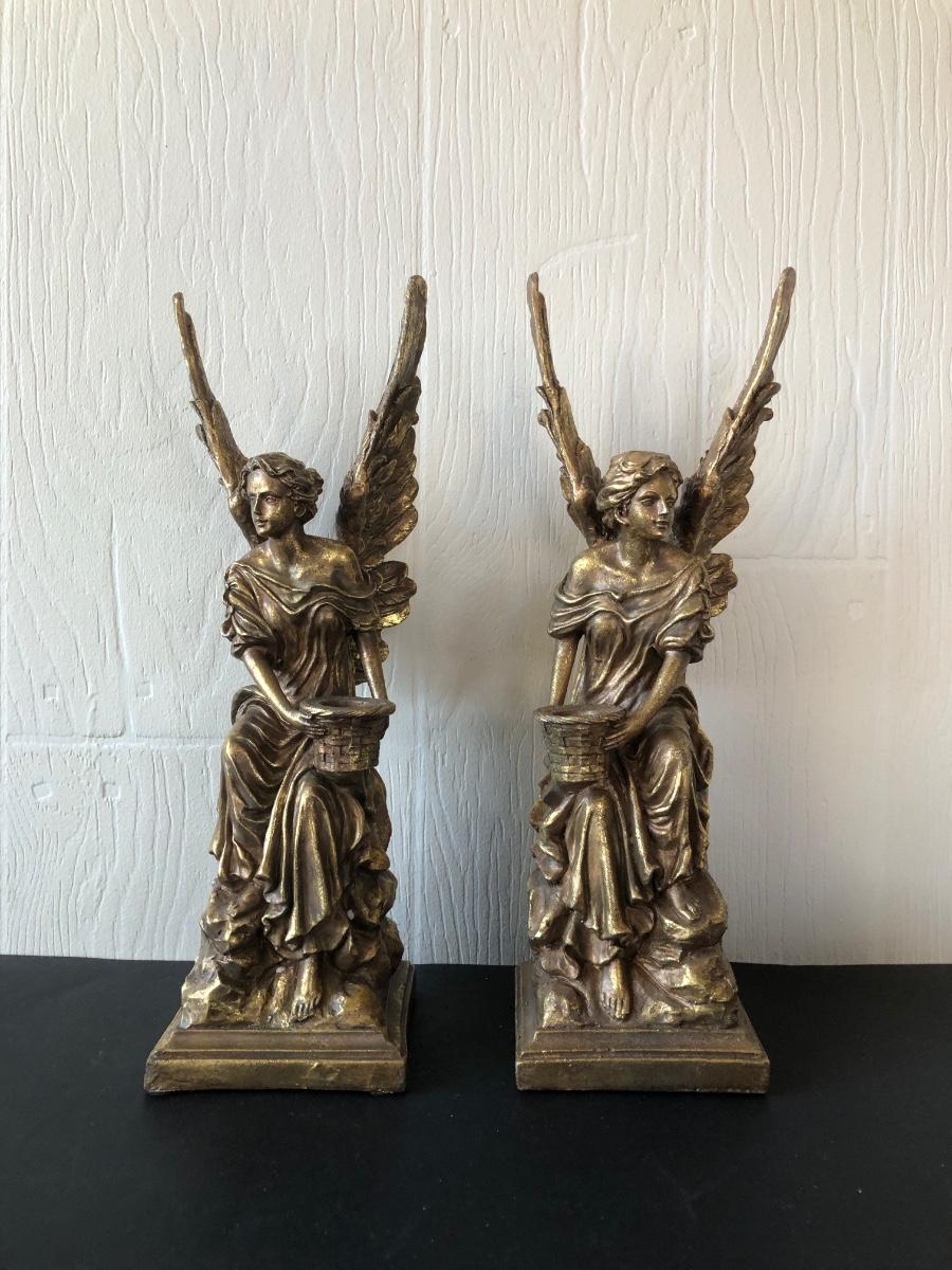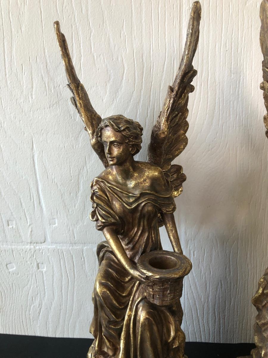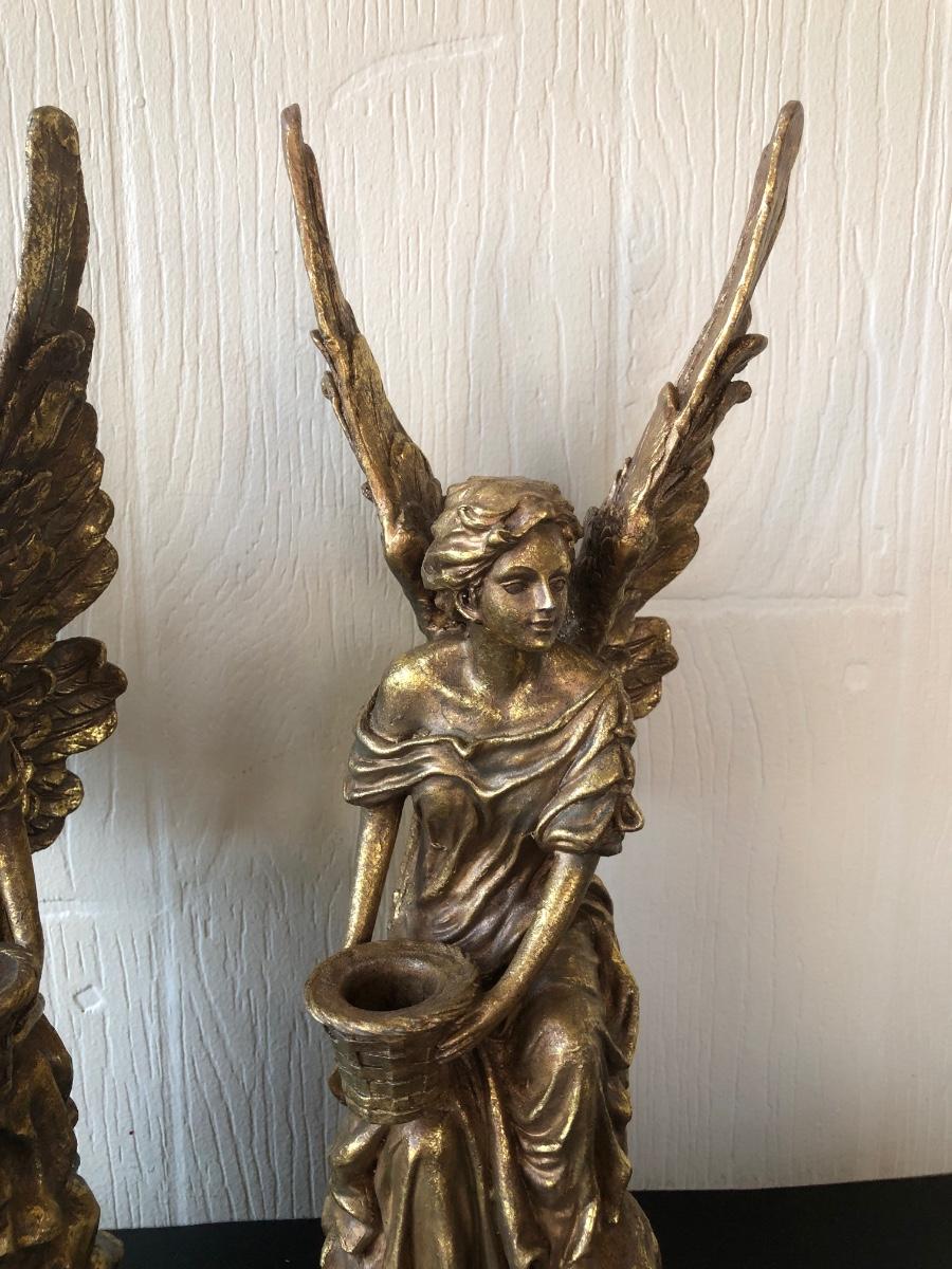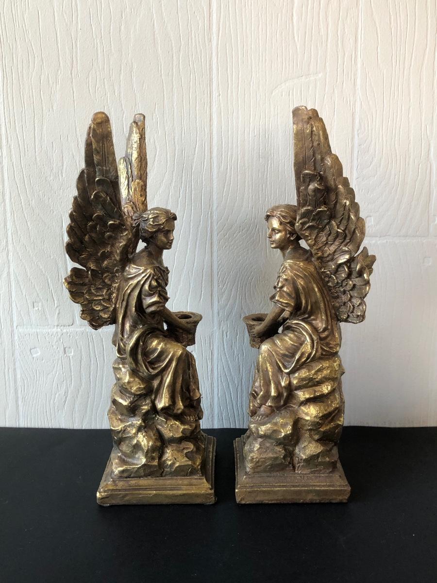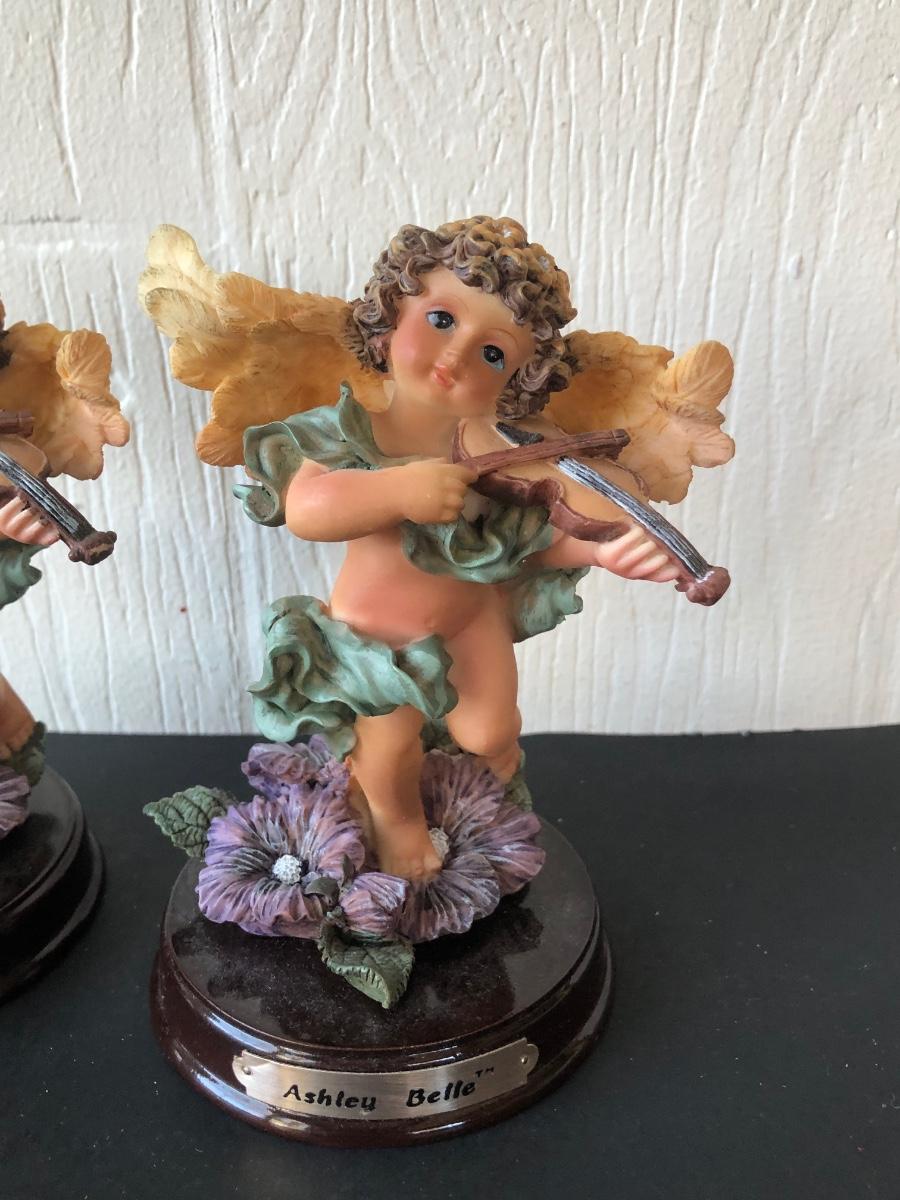 LOT 186G: Mark Roberts Collection Angel Candlestick Holders w/ Avon Ashley Belle Angels
