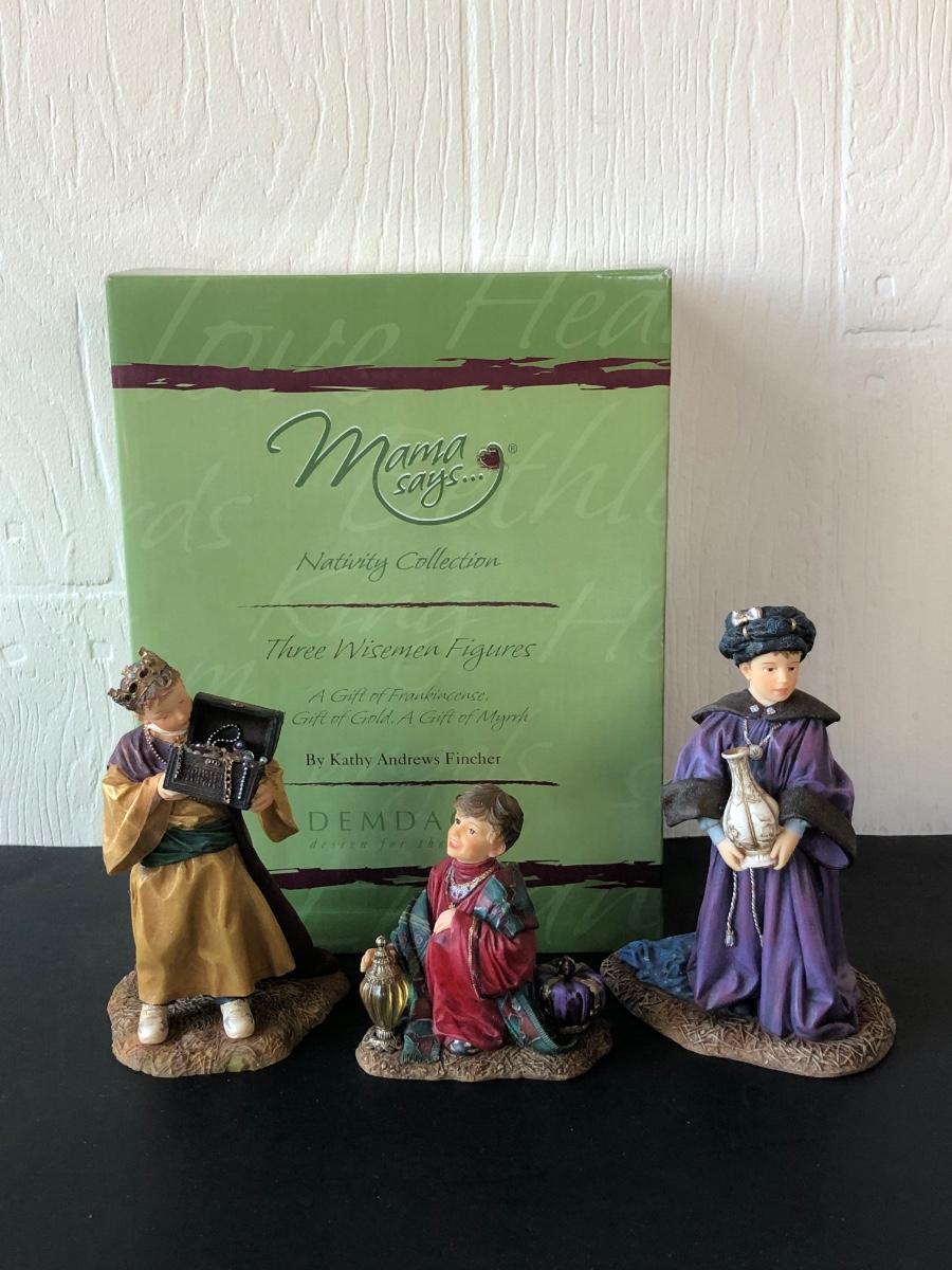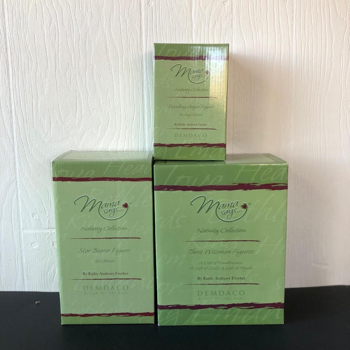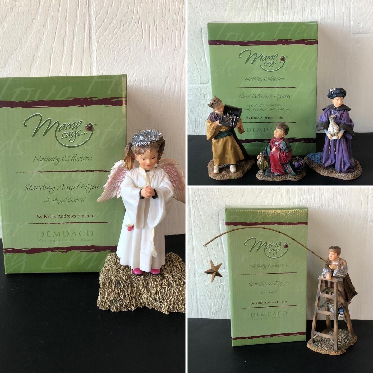 LOT 195G: Mama Says Nativity Pieces w/ Boxes - Standing Angel, Three Wisemen & Star Bearer