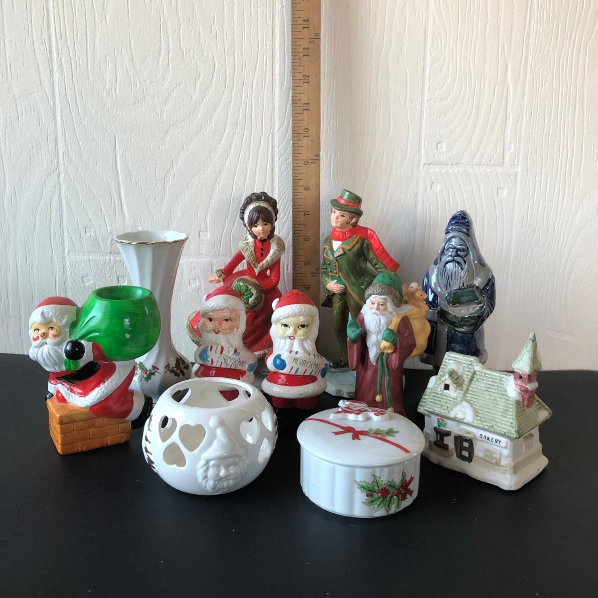 LOT 199F: Ceramic Christmas Collection - Votive, Trinket Box, Figures, S&P Shakers