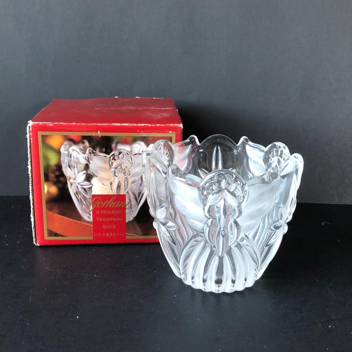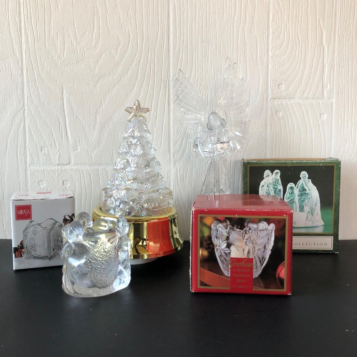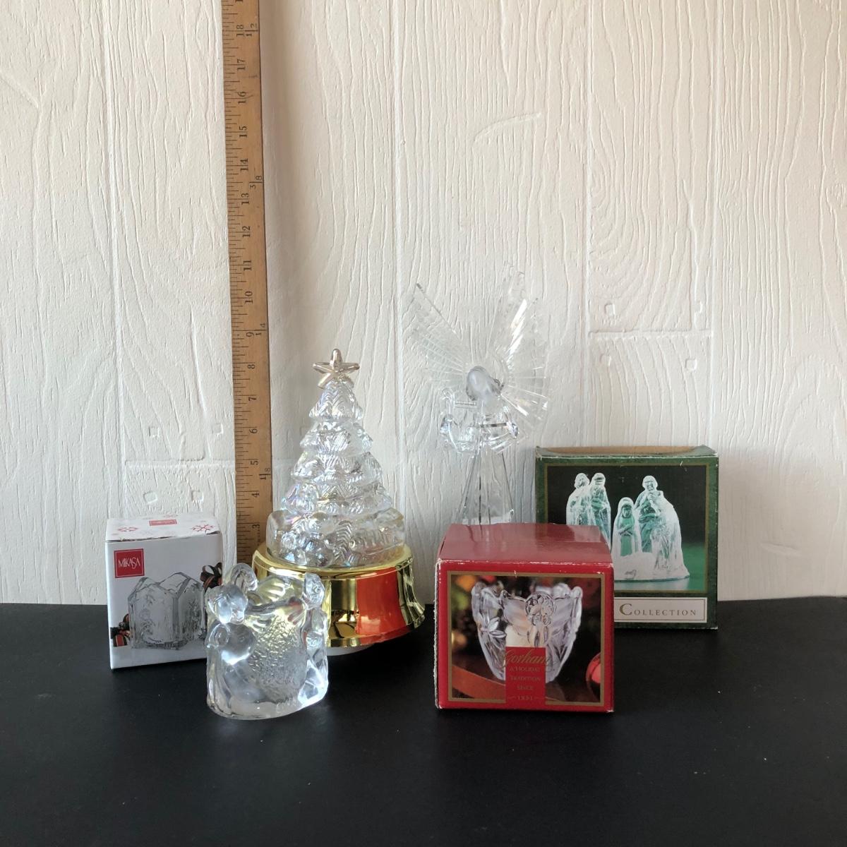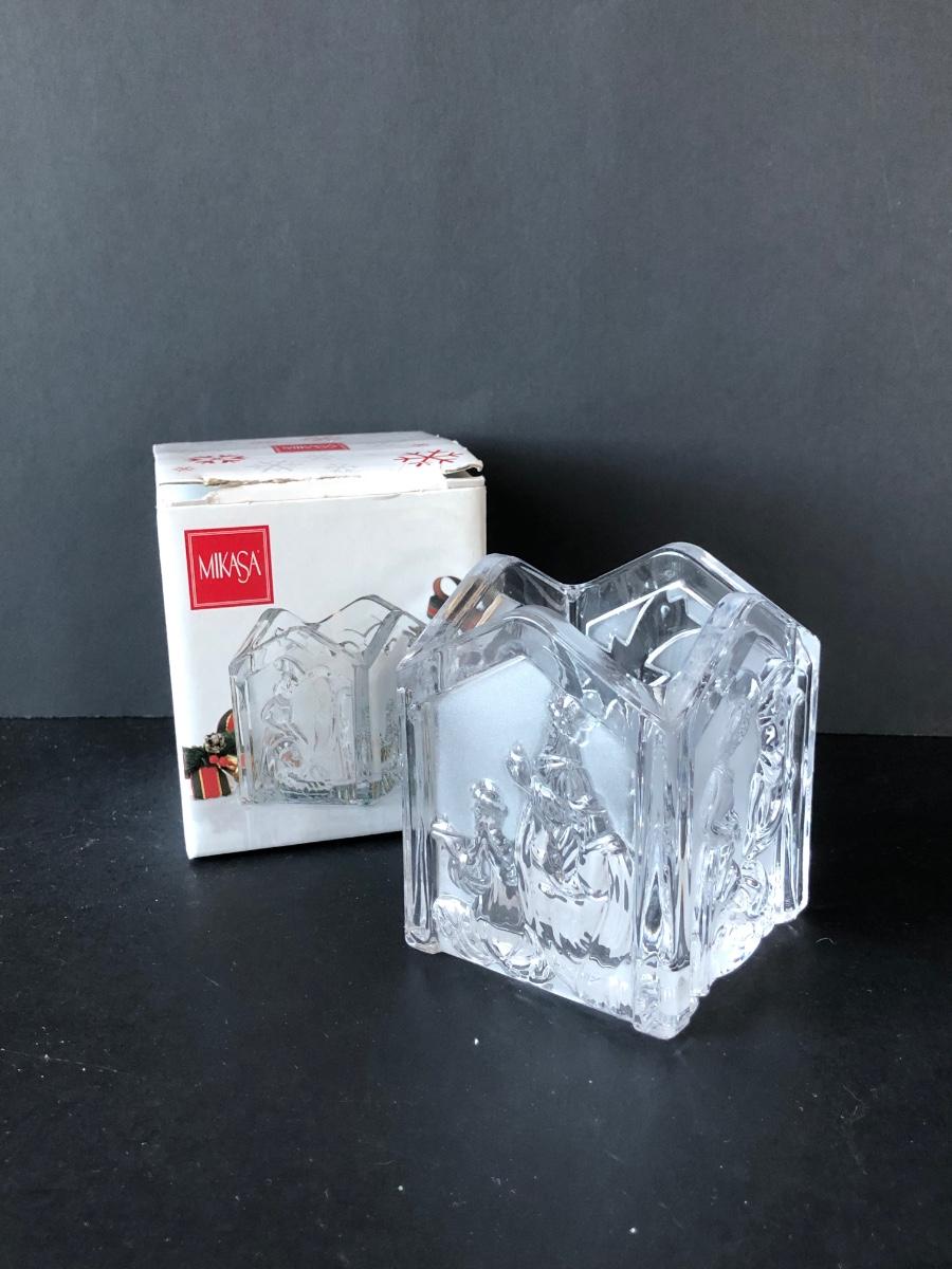 LOT 200F: Christmas Glass & Crystal - Gorham Votive, Mikasa Votive, Nativity Set w/ Mirror & More