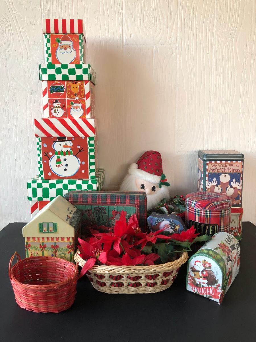 LOT 241F: Christmas Decor Boxes, Tins & Baskets