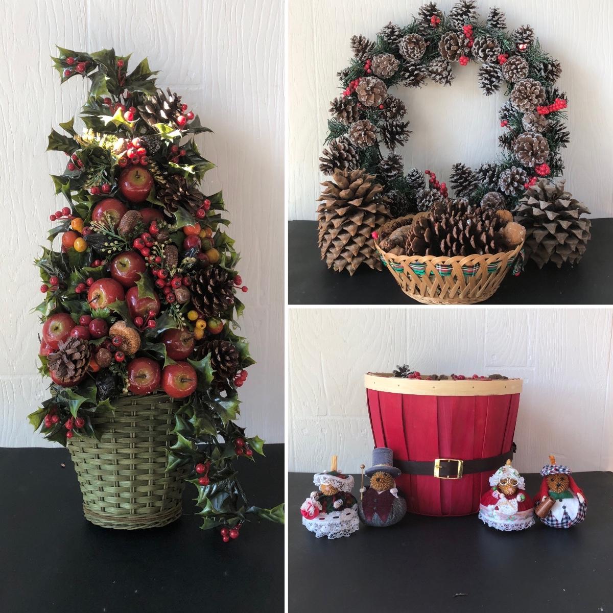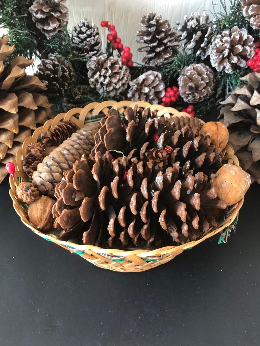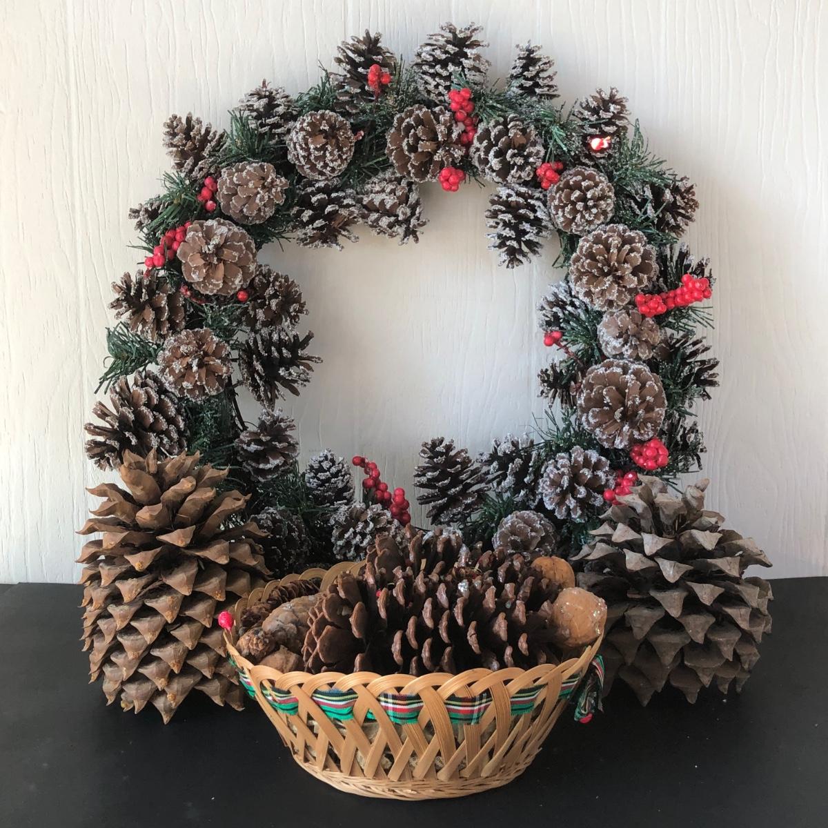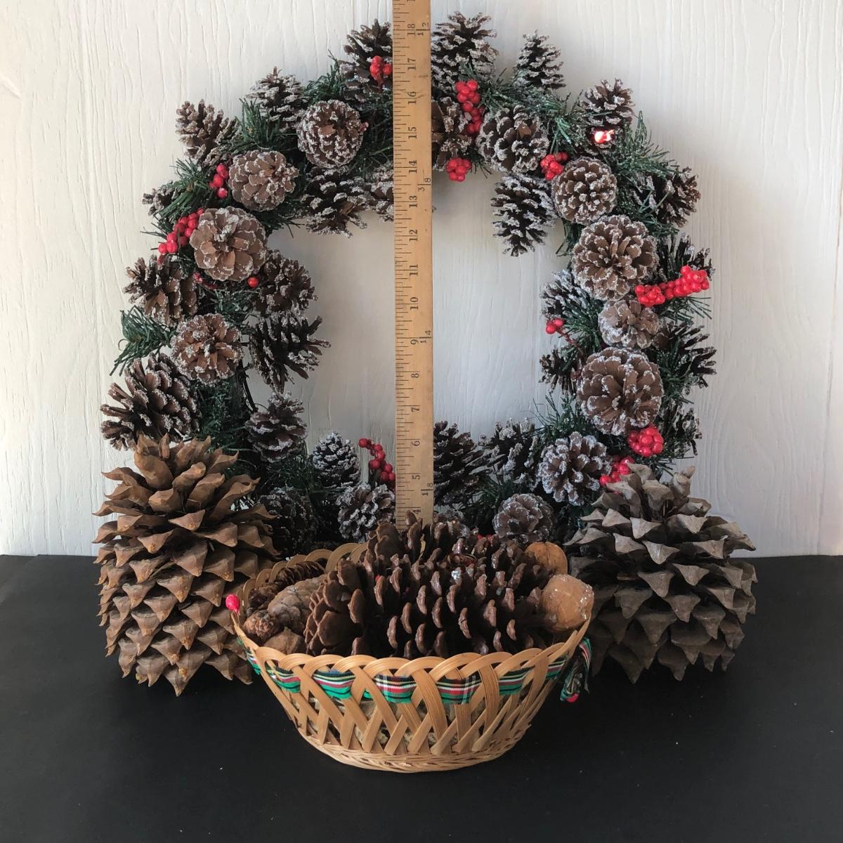 LOT 246F: Pinecone Collection - Wreath, Baskets, Pinecone Face Mouse Figures, Centerpiece & Many Pinecones