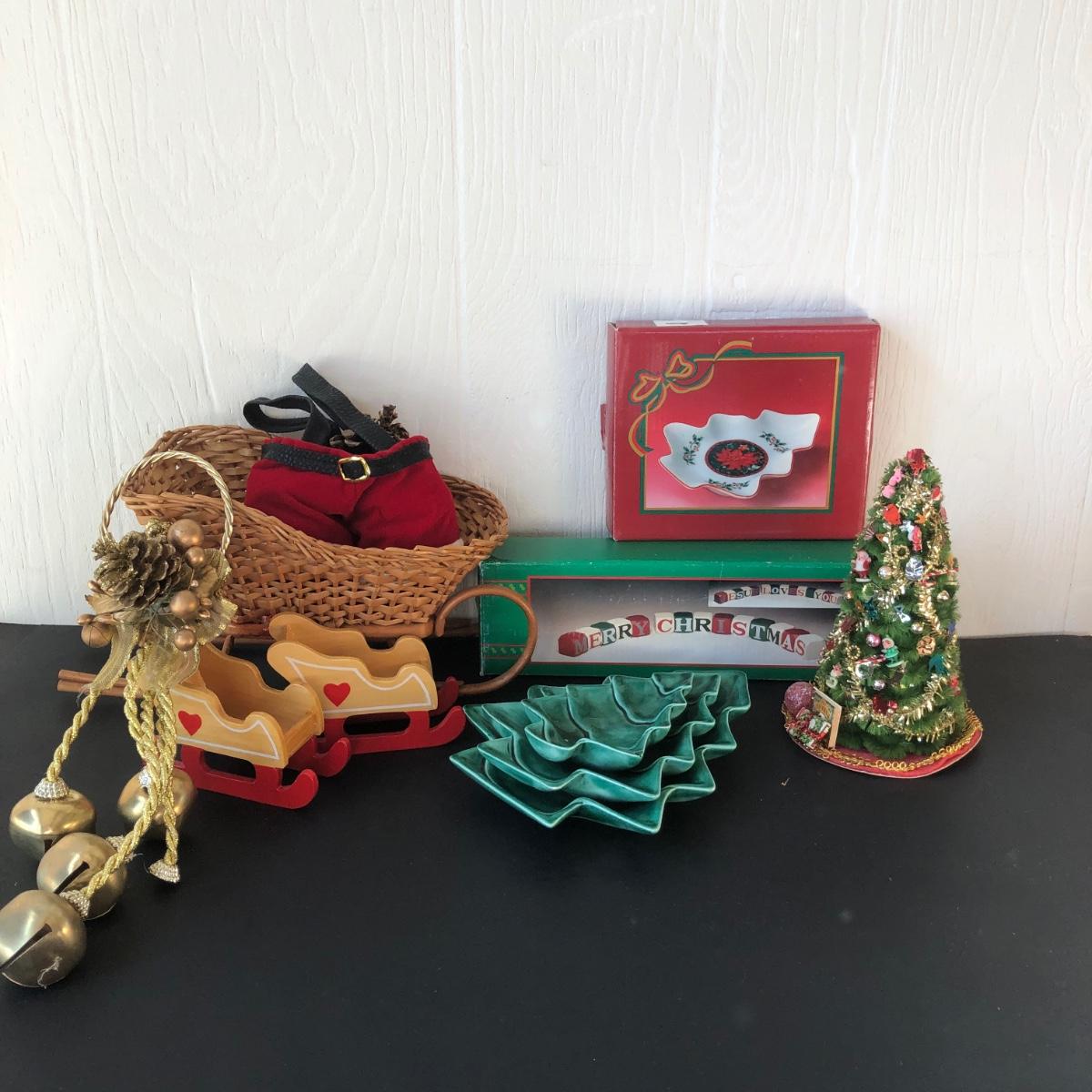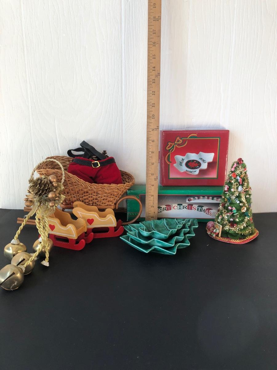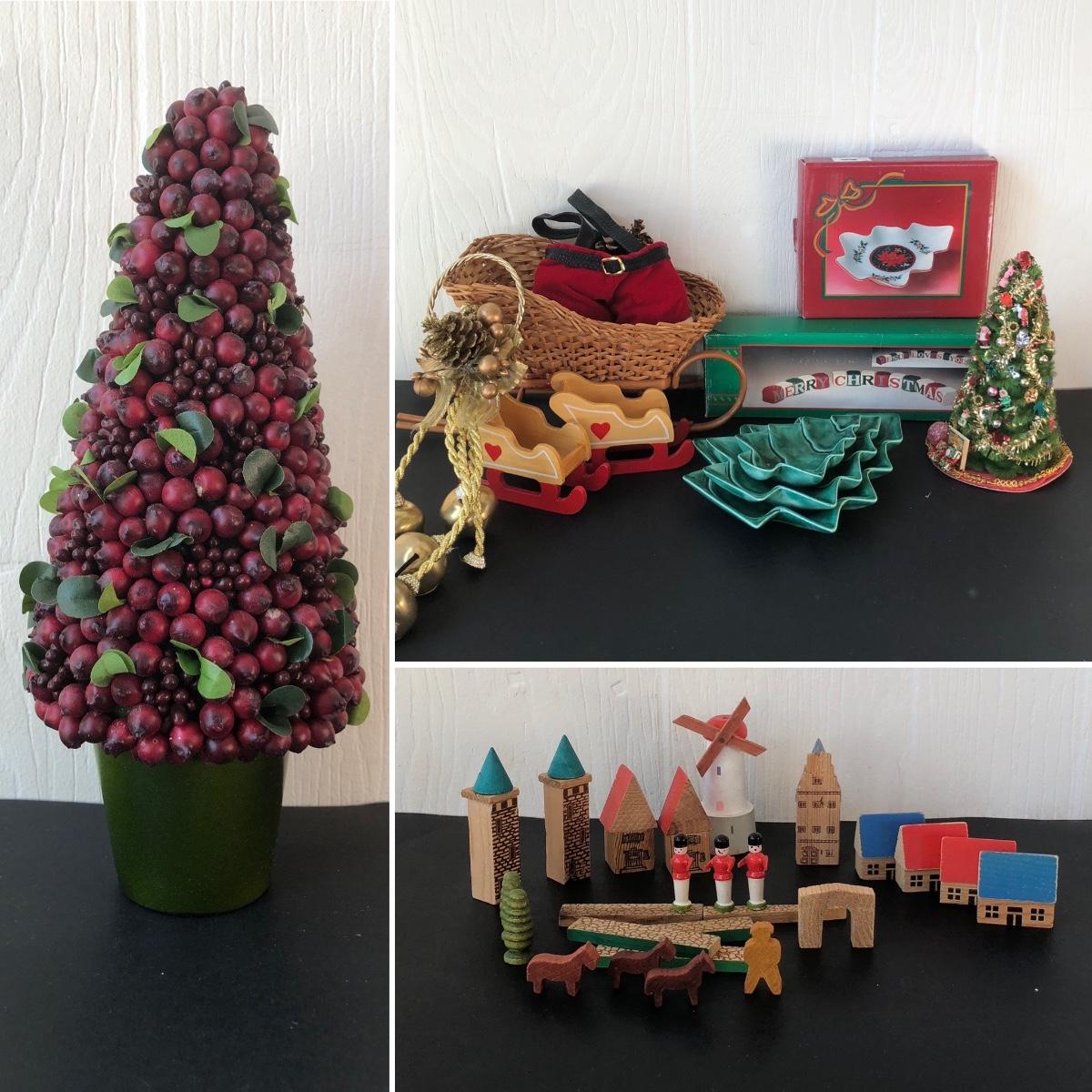 LOT 251F: Christmas Decor Collection w/ Wooden Village & Cranberry Centerpiece