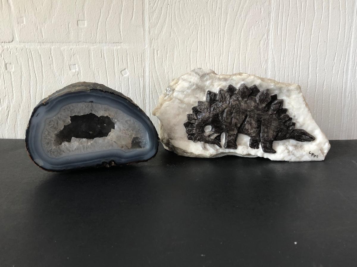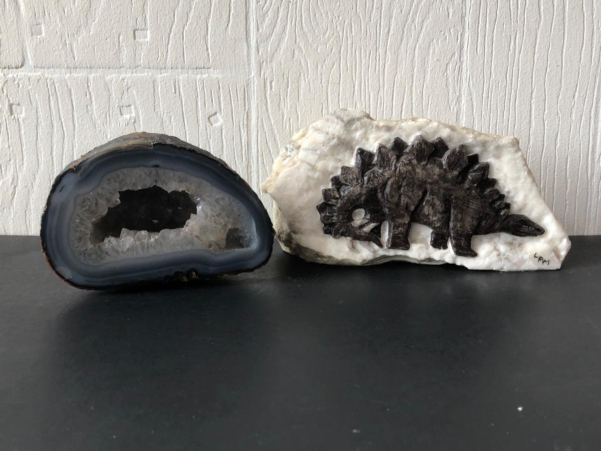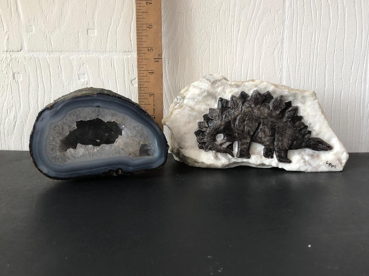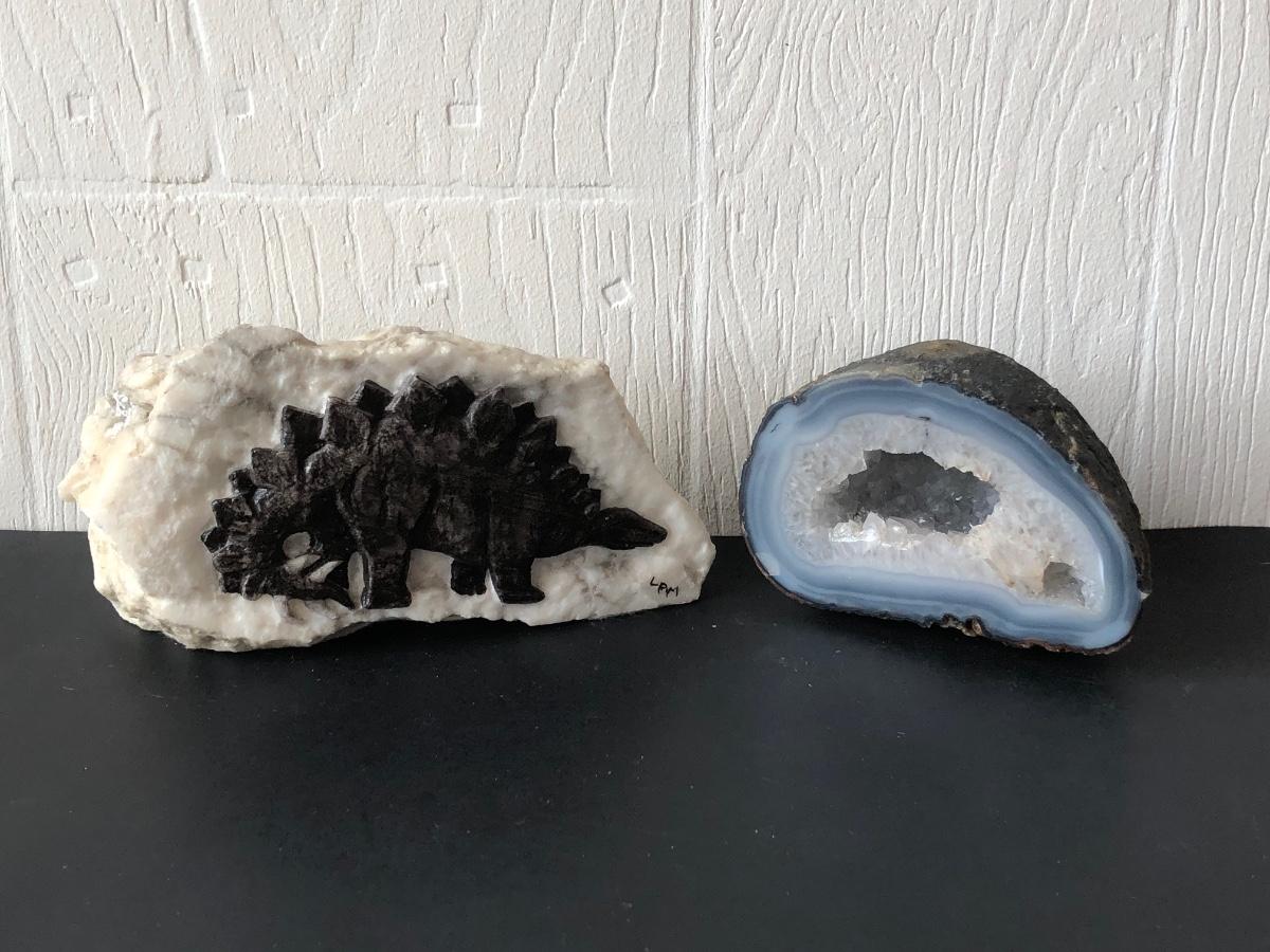LOT 256F: Blue Cut Geode & Signed Dinosaur Rock