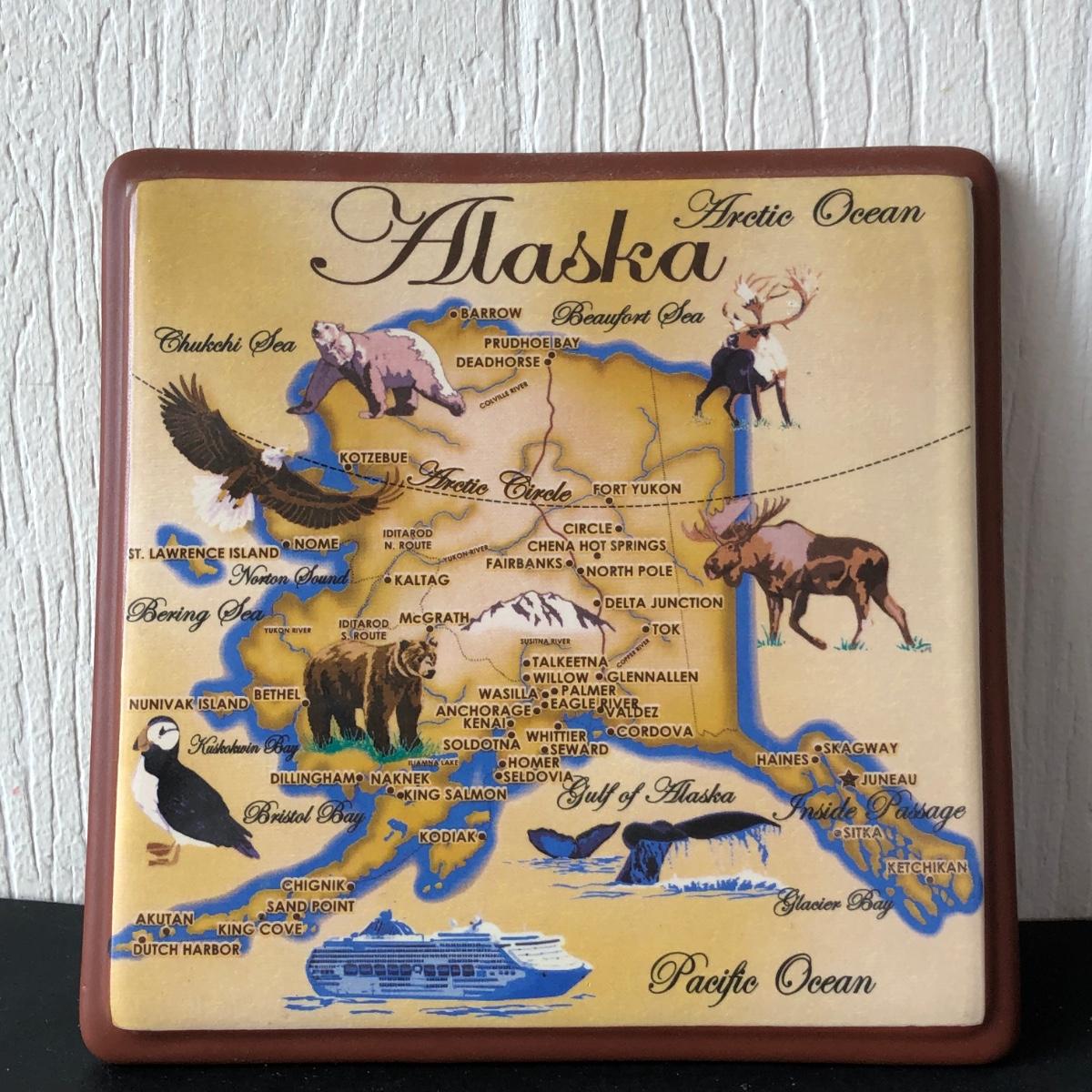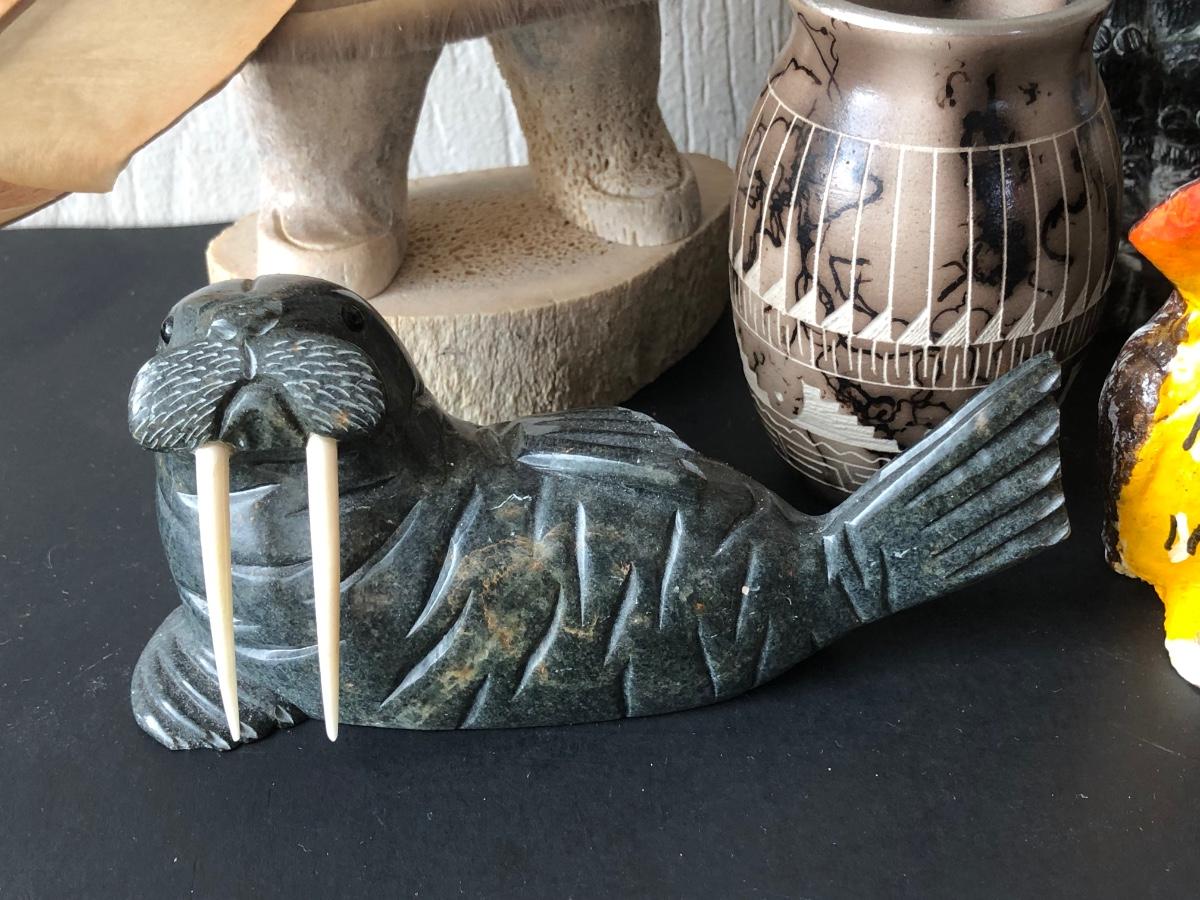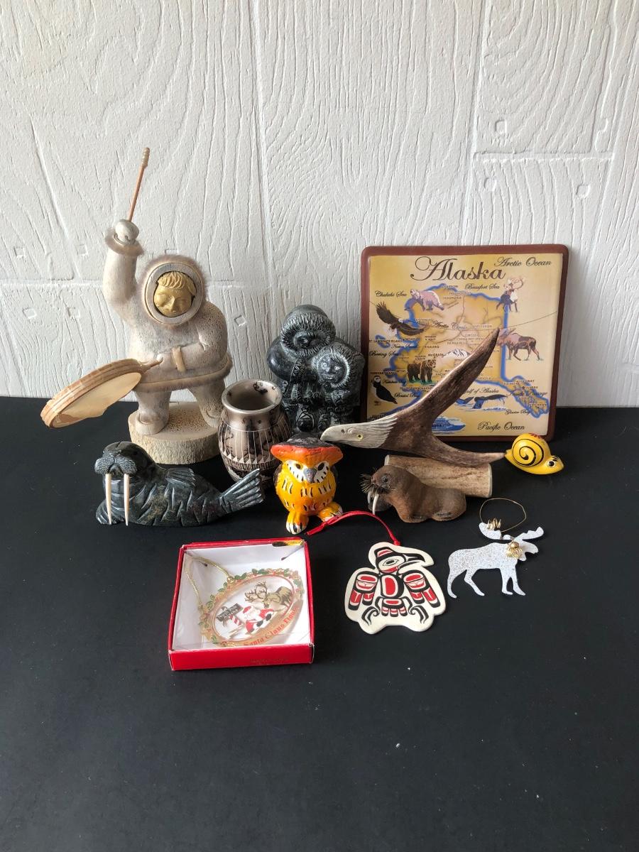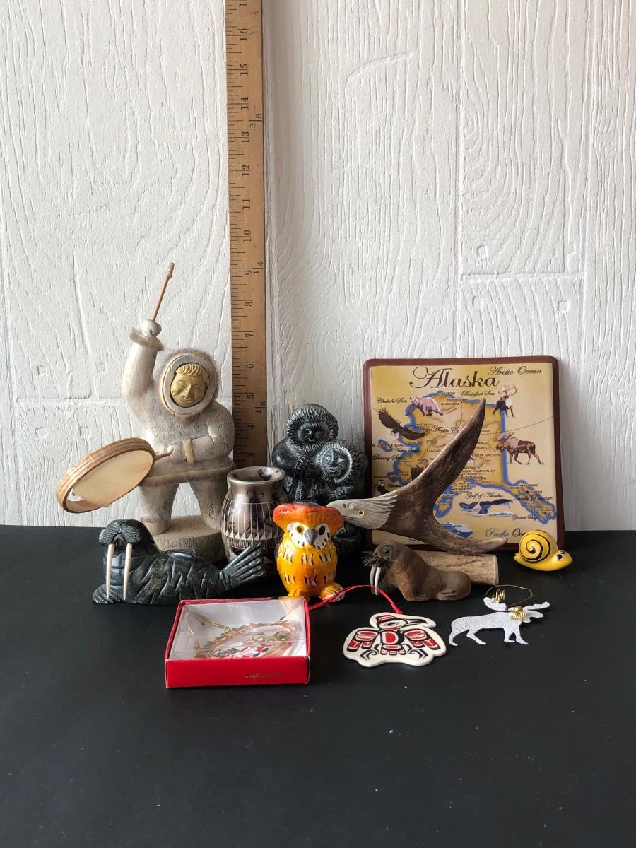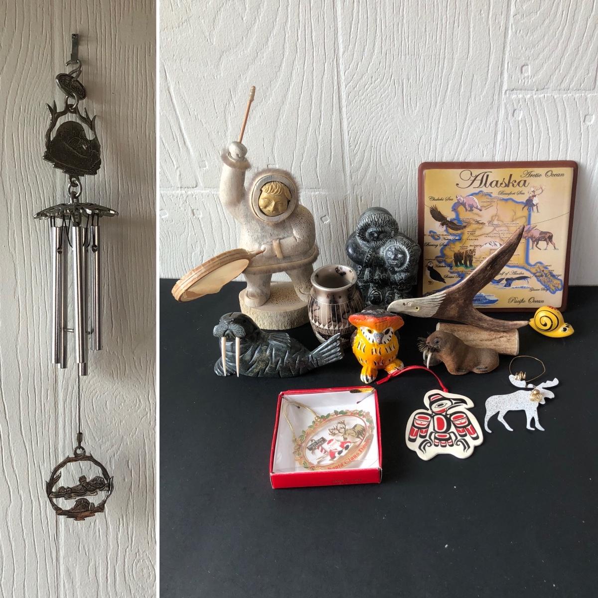 LOT 257F: Alaska & Northern Canada Collection - Wolf Original Sculpture, Alaska Trivet / Tile, Ornaments, Sea Otter Wind Chimes & More