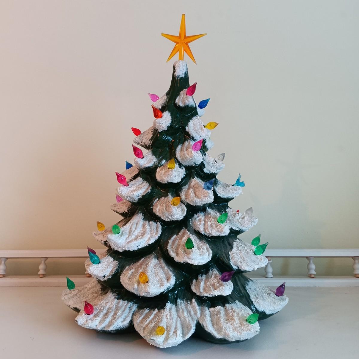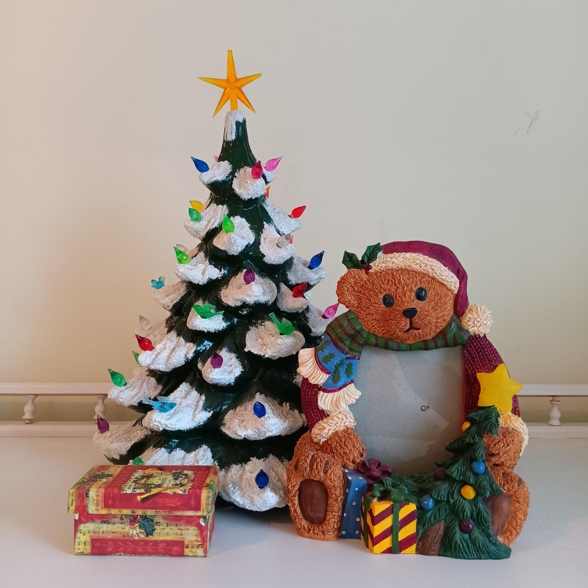 LOT 8U: 13" Vintage Ceramic Christmas Tree w/ Picture Frame & Box