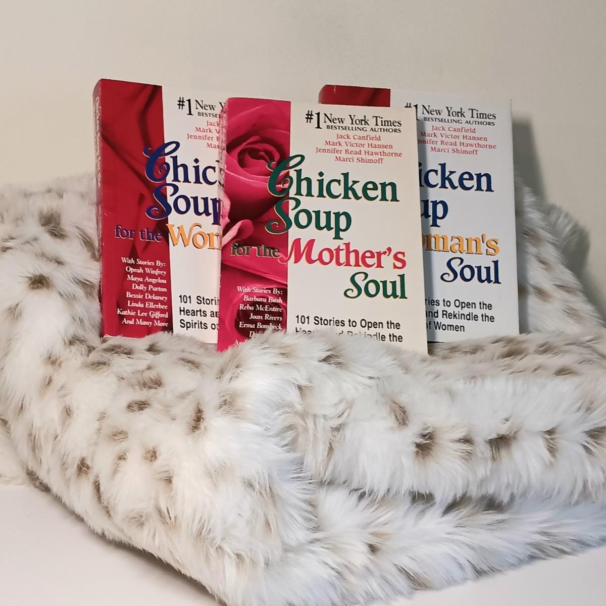 LOT 14U: Jennifer Lopez Snow Leopard Print Throw w/ Chicken Soup for the Soul Books