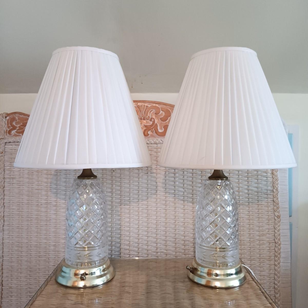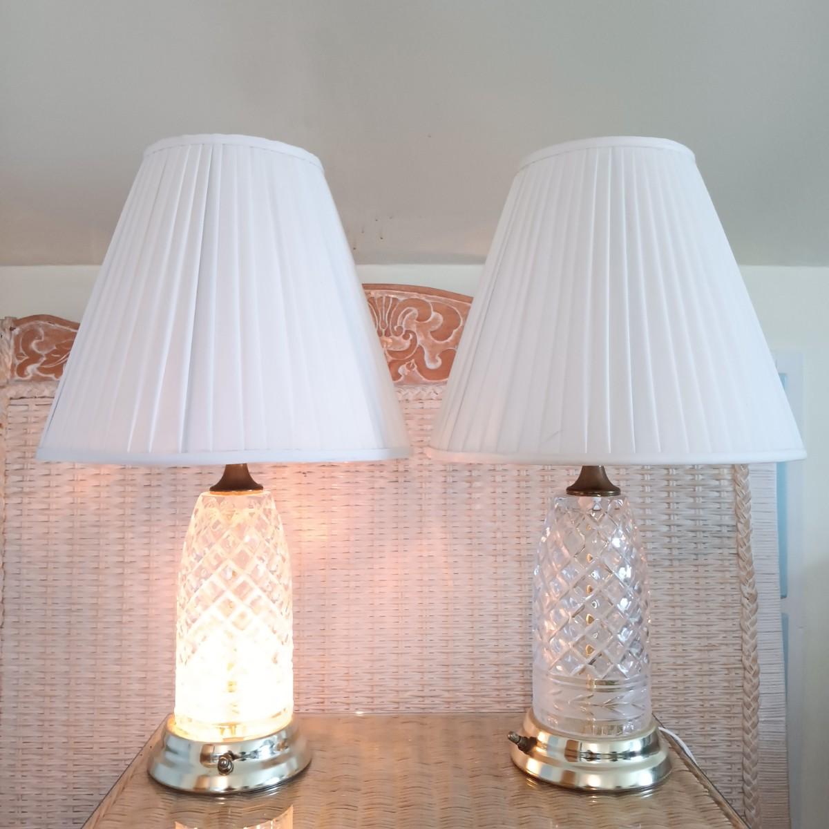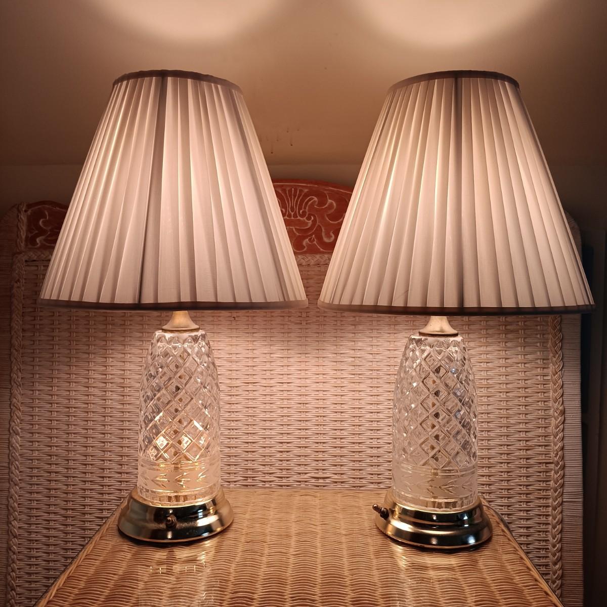 LOT 16U: Pair of Vintage Crystal-Style Glass and Metal Lamps