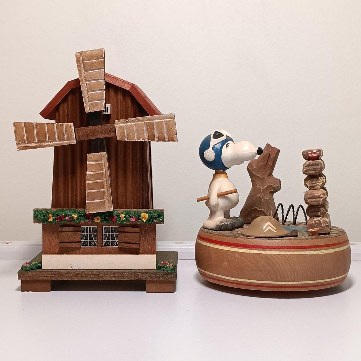 LOT 17U: 1968 ANRI Snoopy Flying Ace Music Box and Japan Made Windmill Music Box