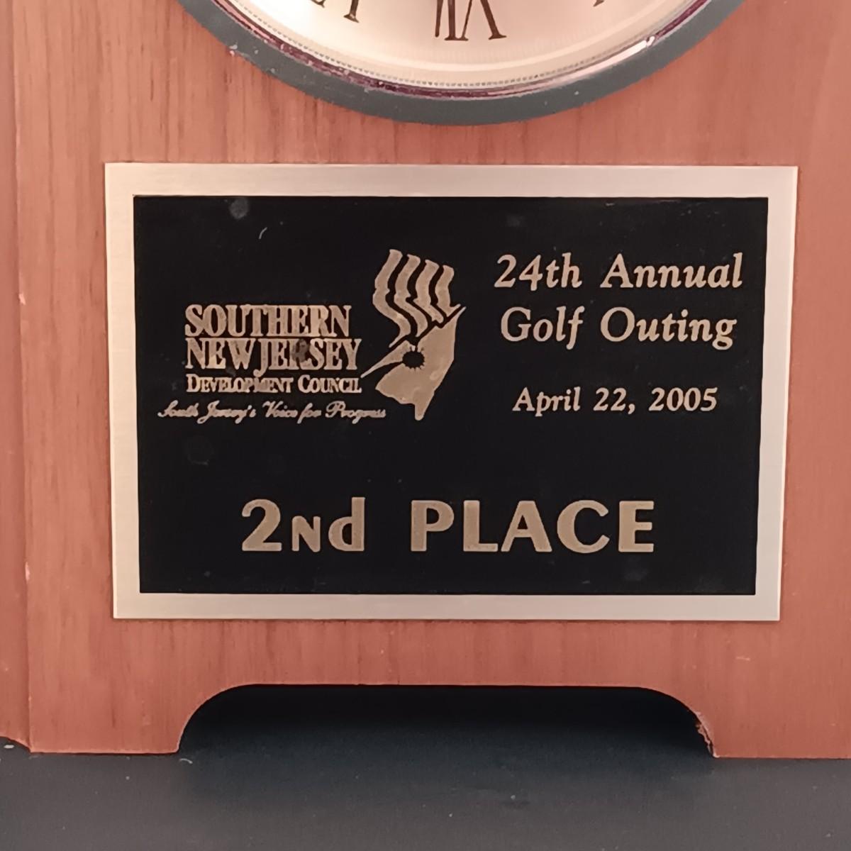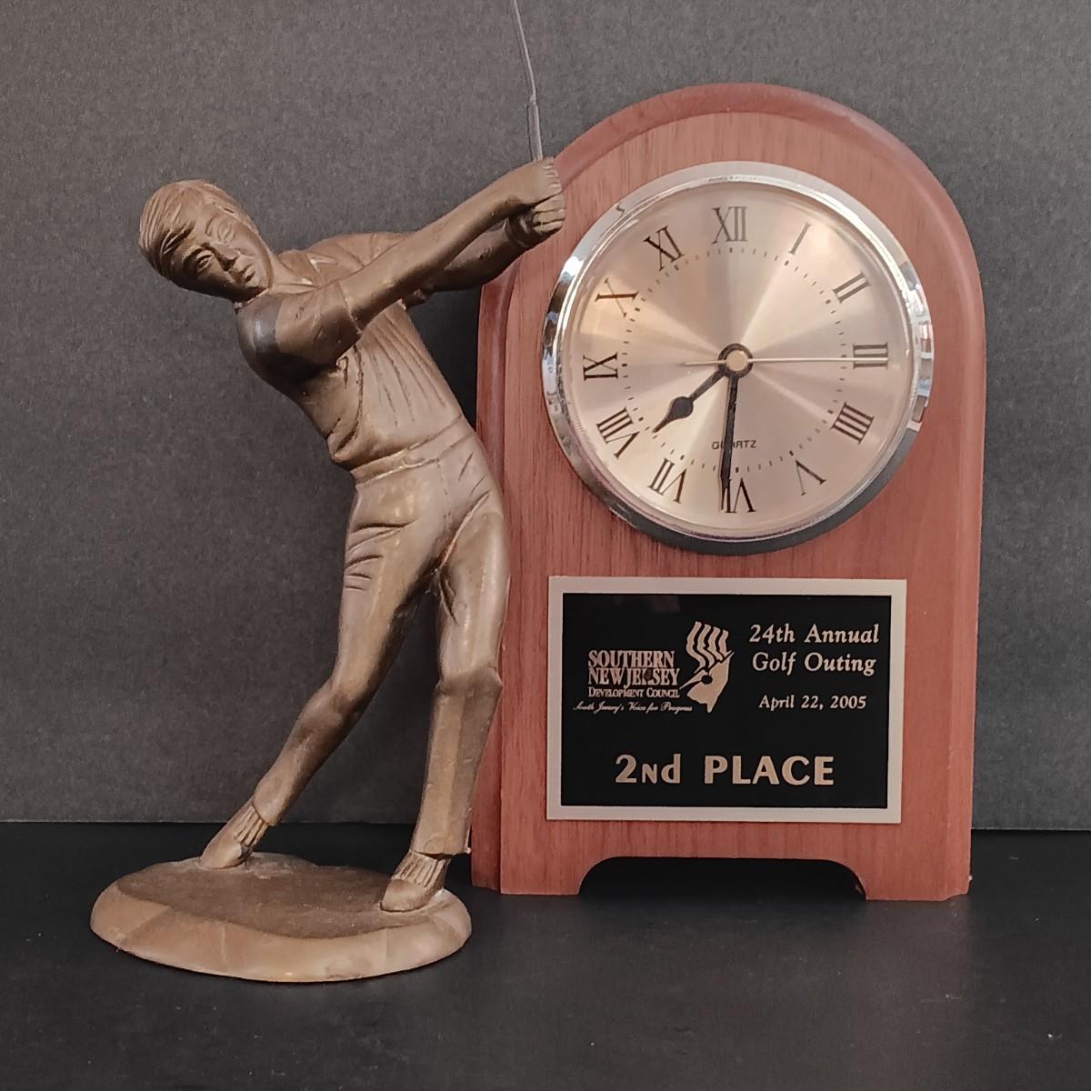 LOT 34S: Vintage Brass Golfer Figurine by Brass Baron w/ Personalized Clock from the Southern NJ Developmental Council