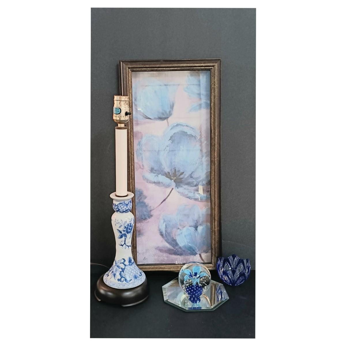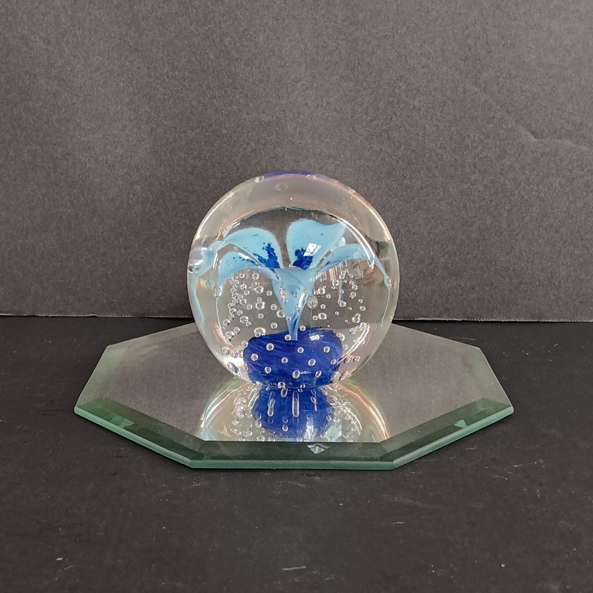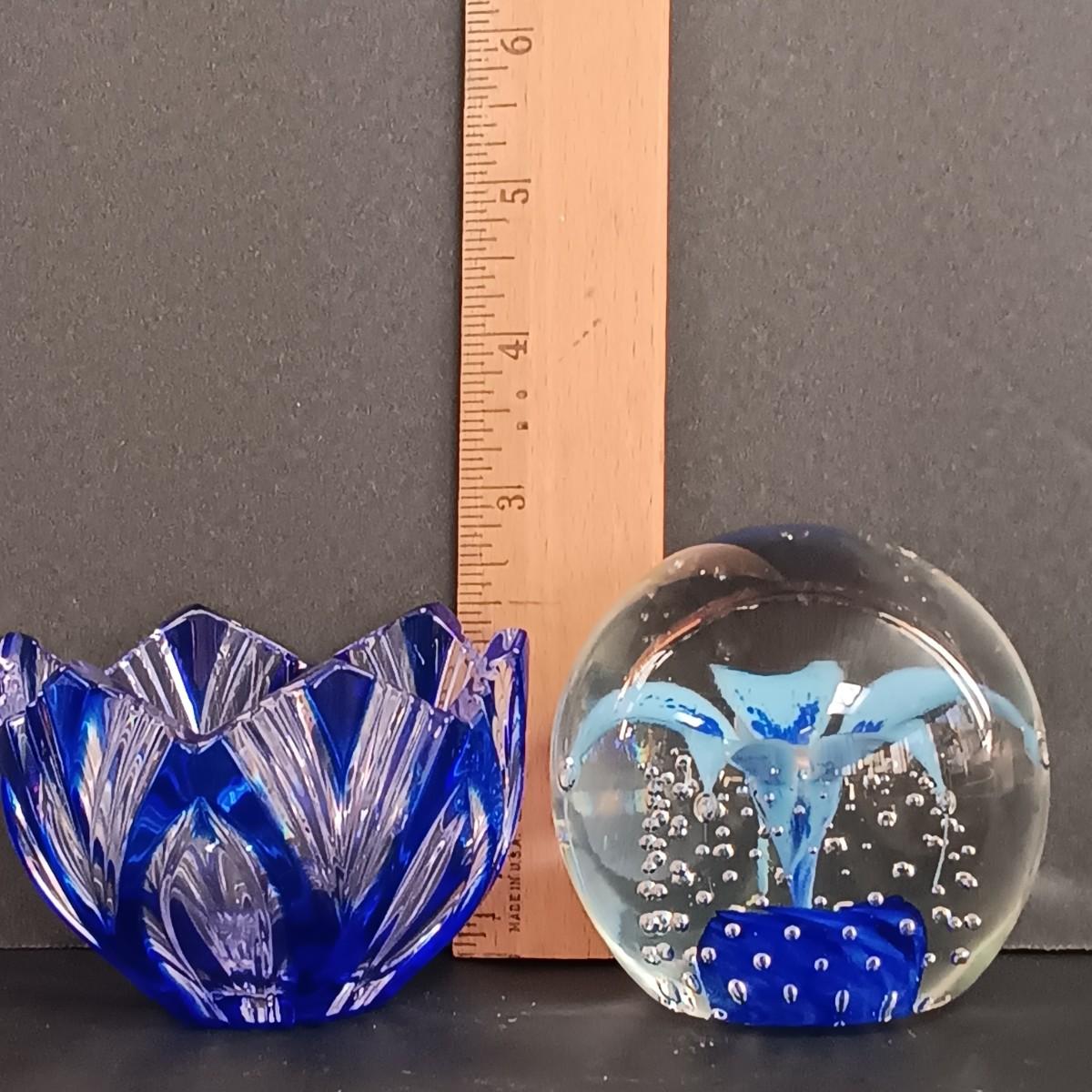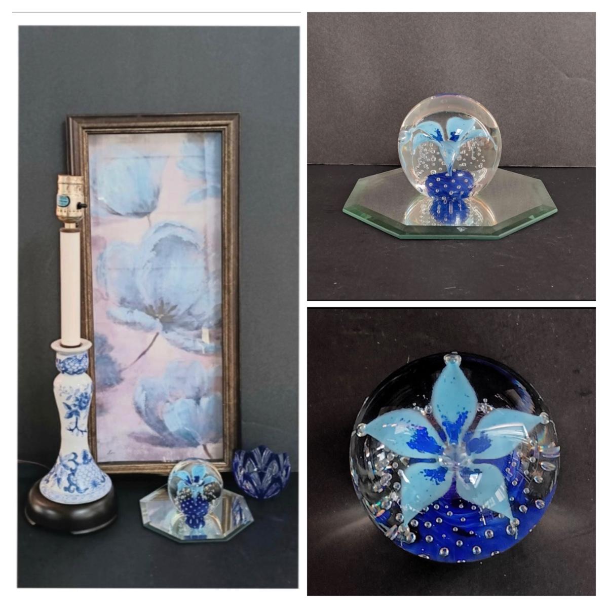 LOT 35S: Vintage Wheaton Village Art Glass Paperweight w/ Ceramic Lamp, Floral Print & Glass Votive
