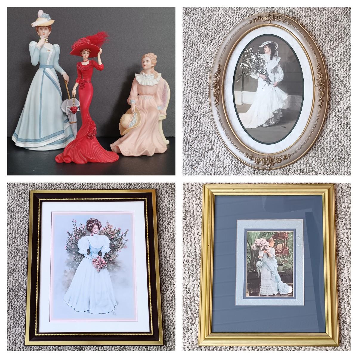 LOT 48S: Victorian Style Figurines with Art Prints