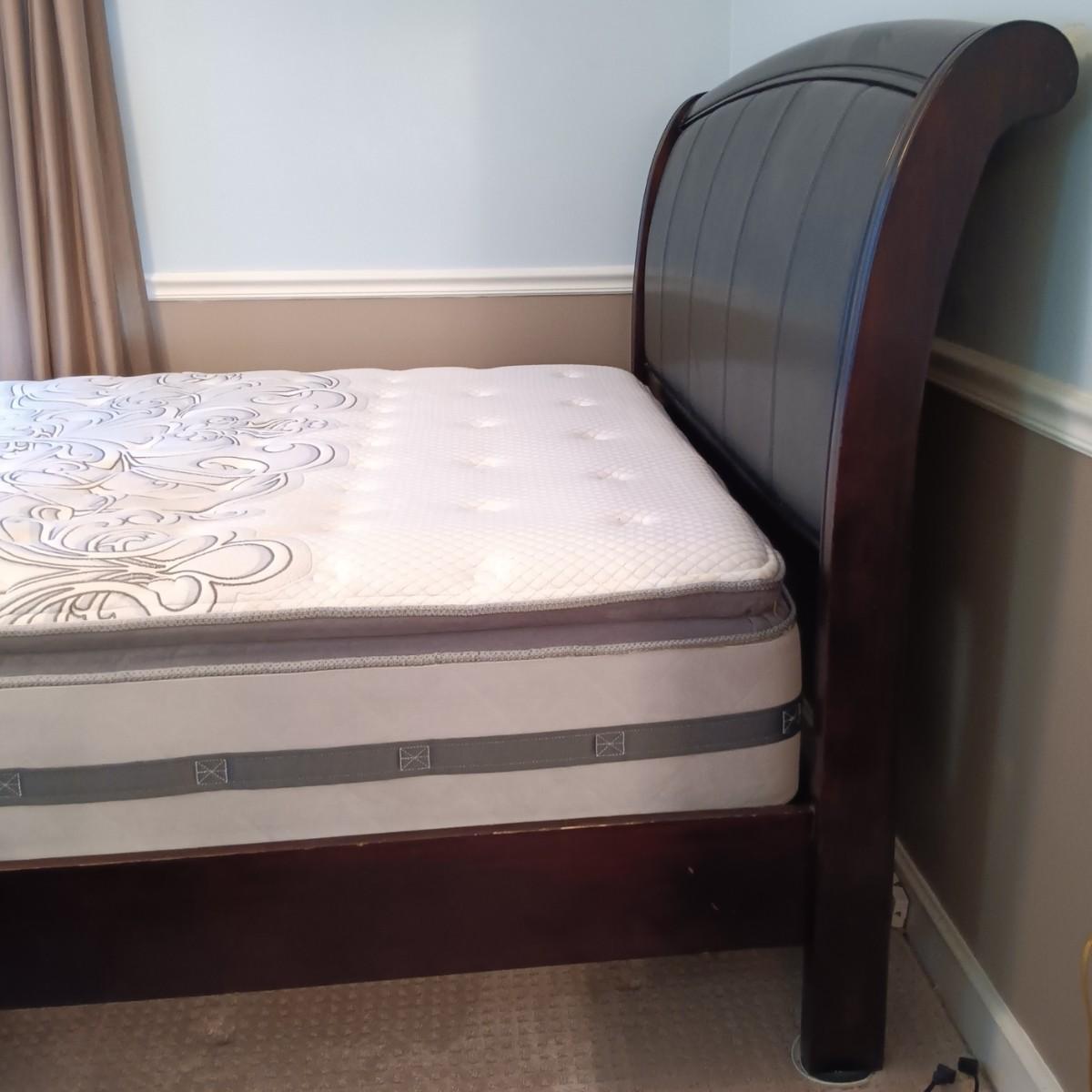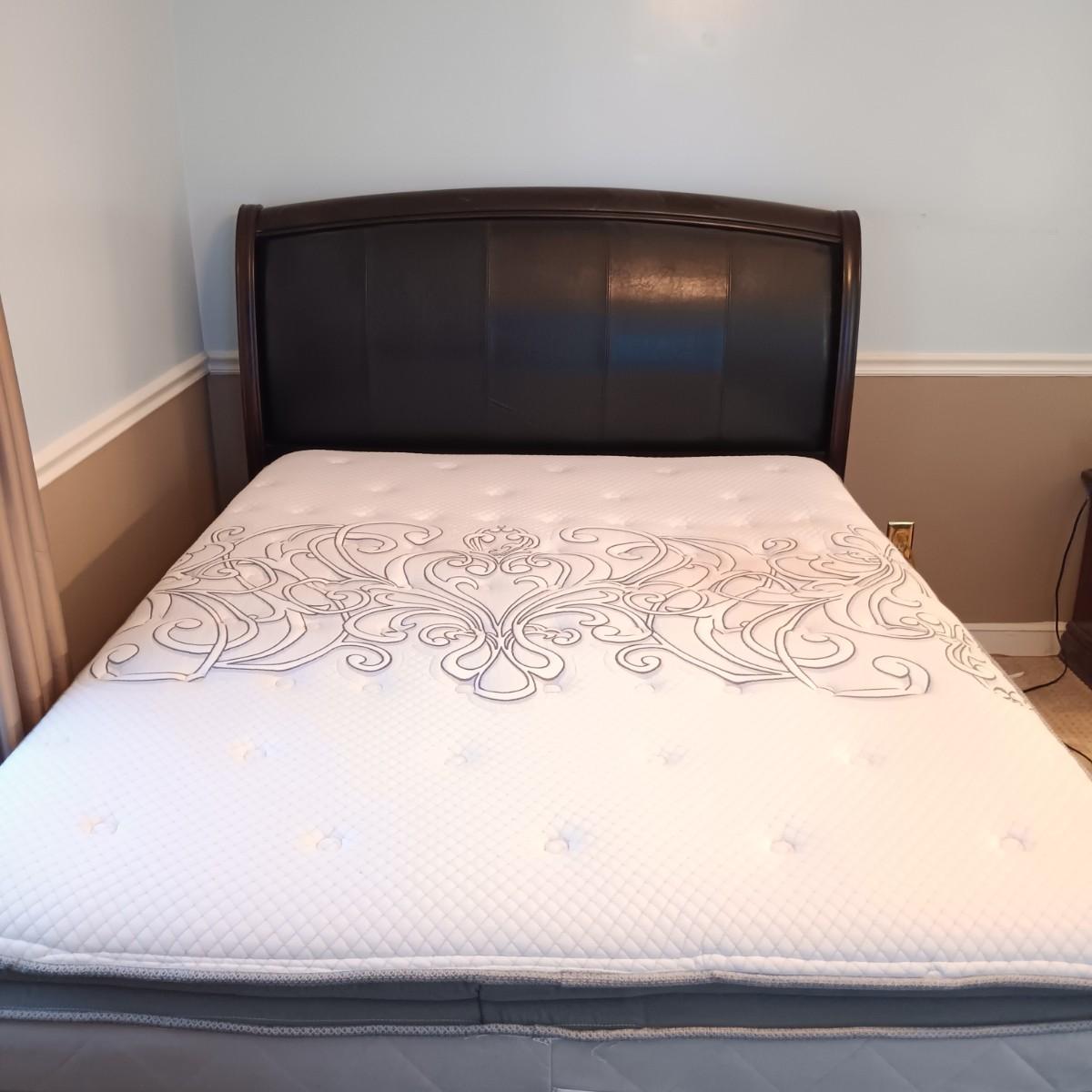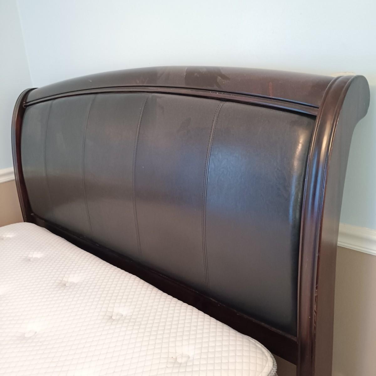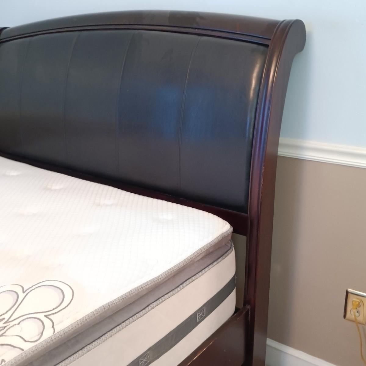 LOT 50MB: Queen Size Bed Frame with Wood and Leather Headboard