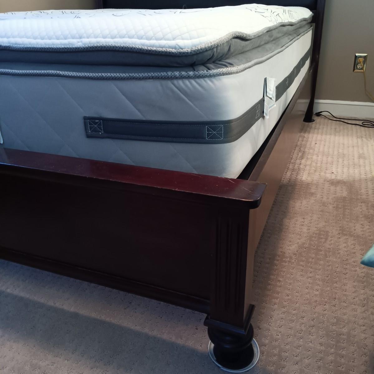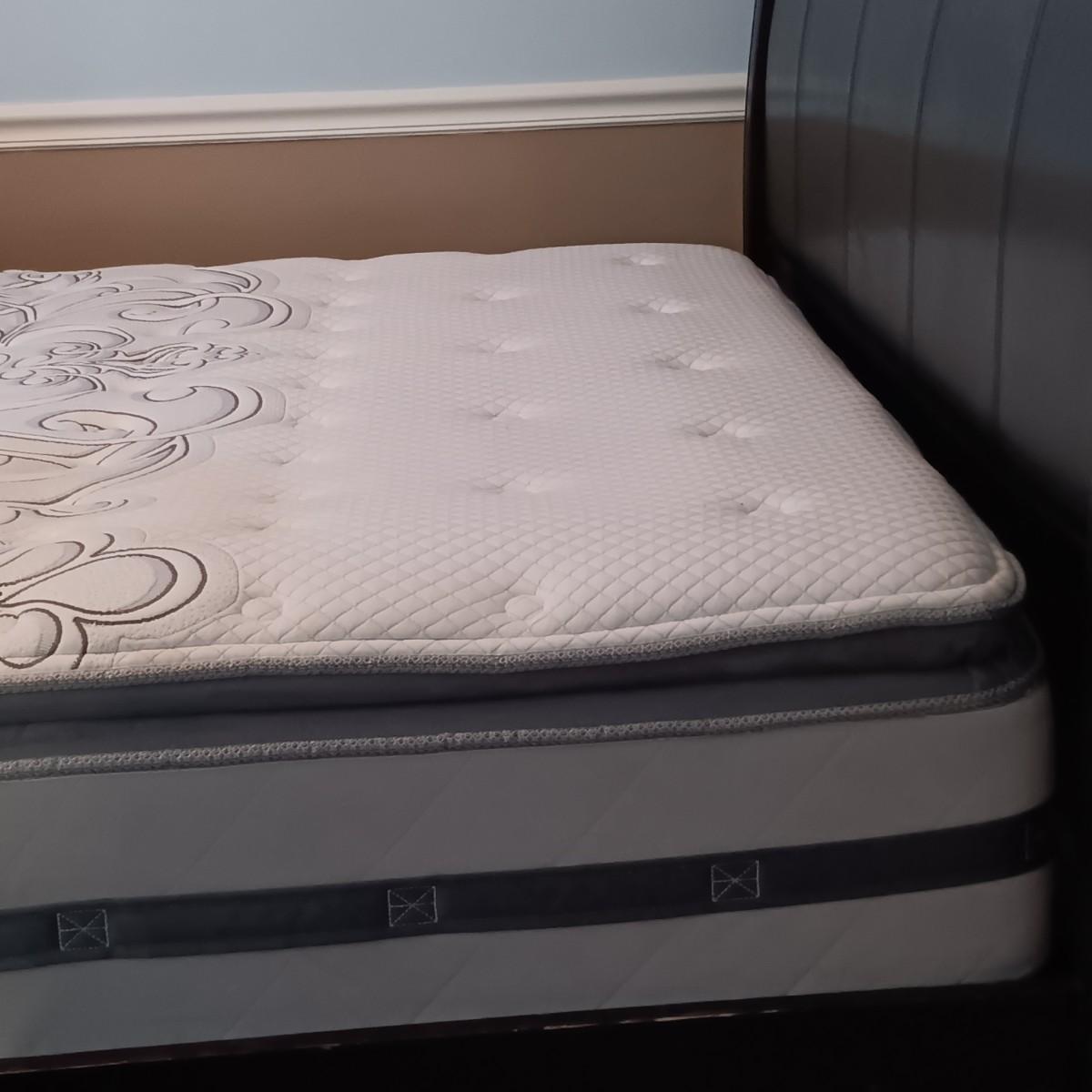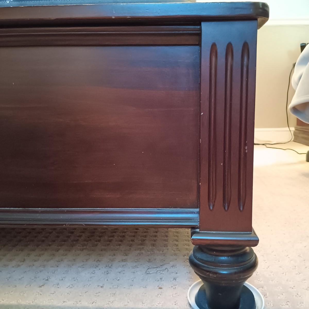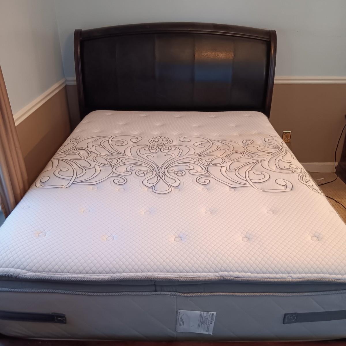 LOT 50MB: Queen Size Bed Frame with Wood and Leather Headboard