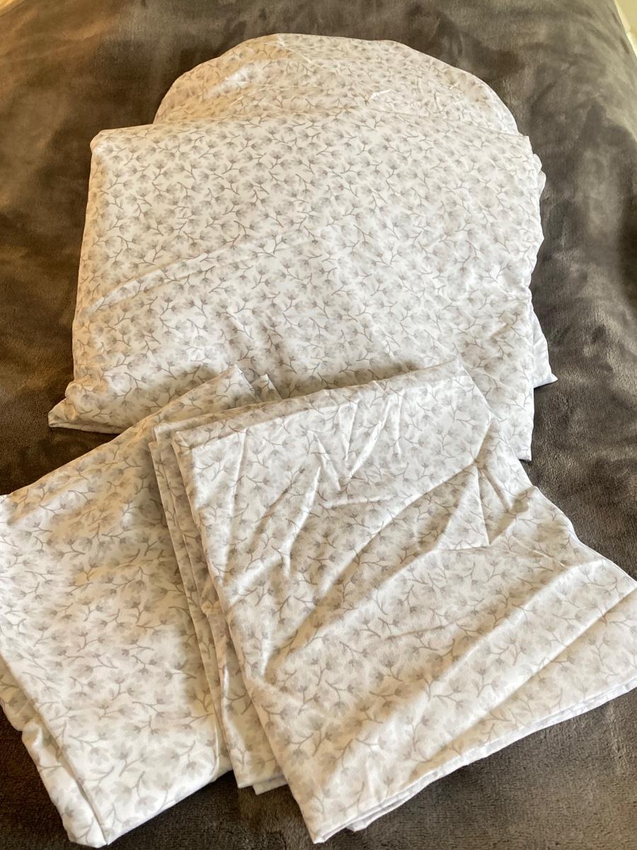 Bed cover size uncertain displayed on twin size bed, sheet sets are king size per tag - Please see all pictures as they are the best representation of the items. The pictures show condition, measurements if taken, and what is included in the lot. Due to the large amount that we photograph and the time frame, we are not always able to take measurements. All items unless noted, are pre-owned and have been used. If you purchased furniture, you must bring help. We do not allow one person to carry large furniture out on their own. Bring help, tools and a truck for the safety of our client’s homes, and your personal safety. Any damages that result to the property including walls, and floors due to moving of the furniture will be charged to the buyer. Company policy. Thank you.