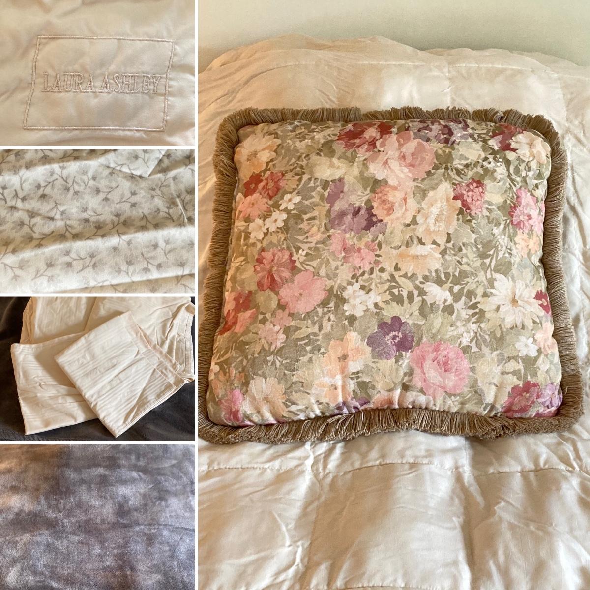 LOT 59U: Bedding Collection - Laura Ashley Bed Cover, Accent Pillow, Charter Club Throw and King Size Sheet Sets