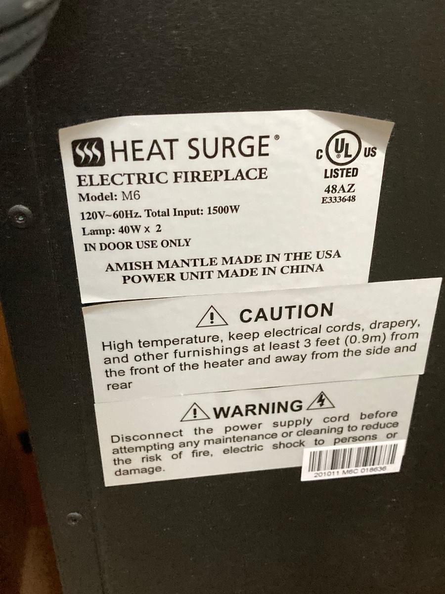 LOT 65S: Heat Surge Portable Electric Fireplace - Hand Built By Amish Craftsmen
