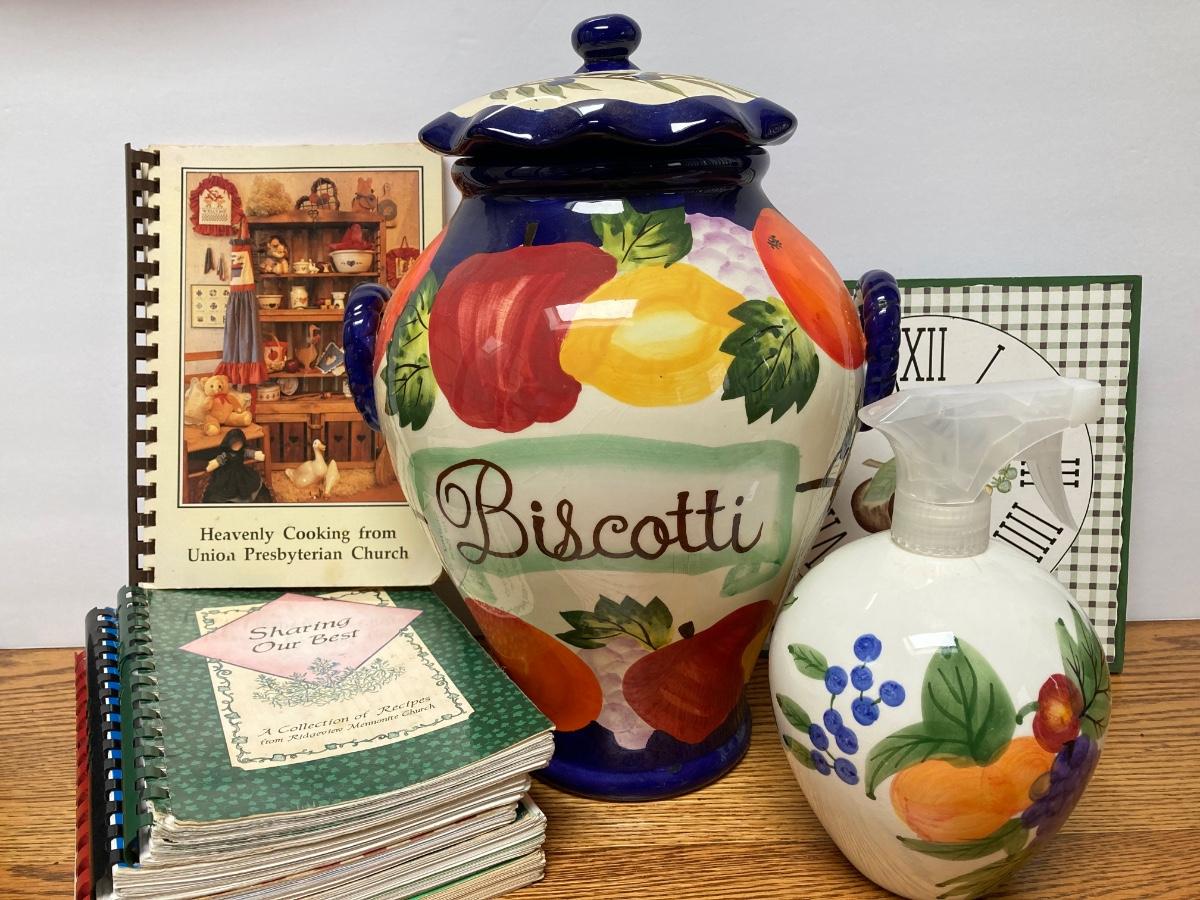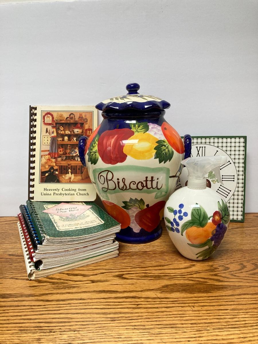 LOT 69S: Handmade for Nonni's Biscotti Jar, Vintage Cookbooks and More