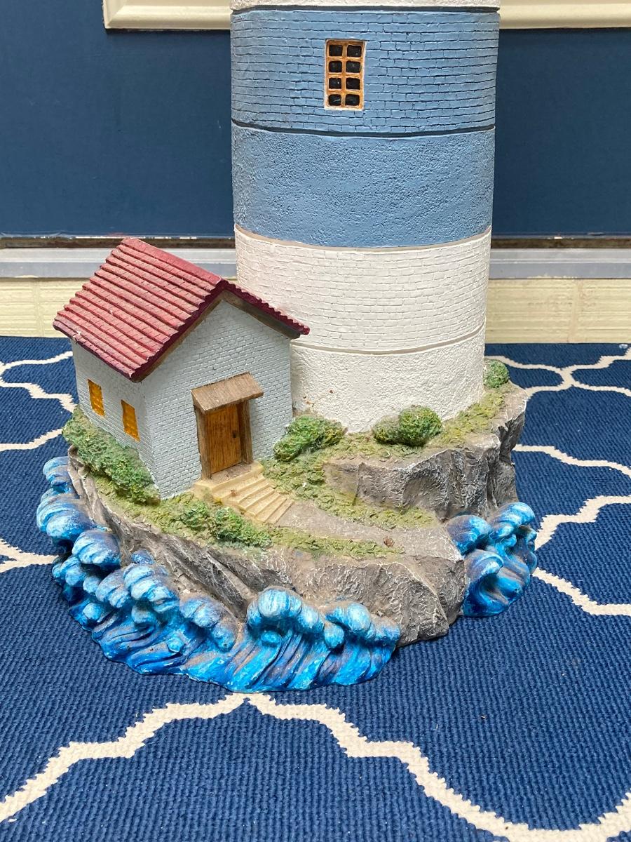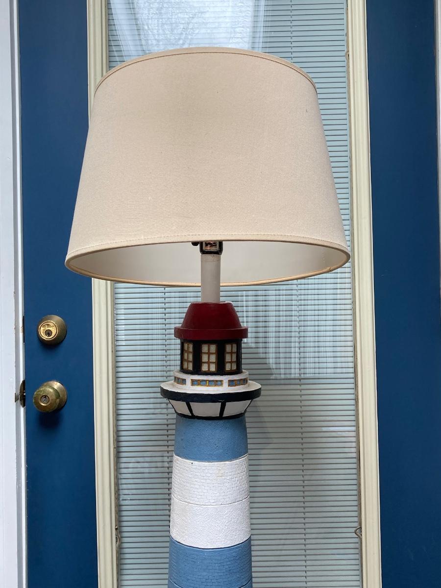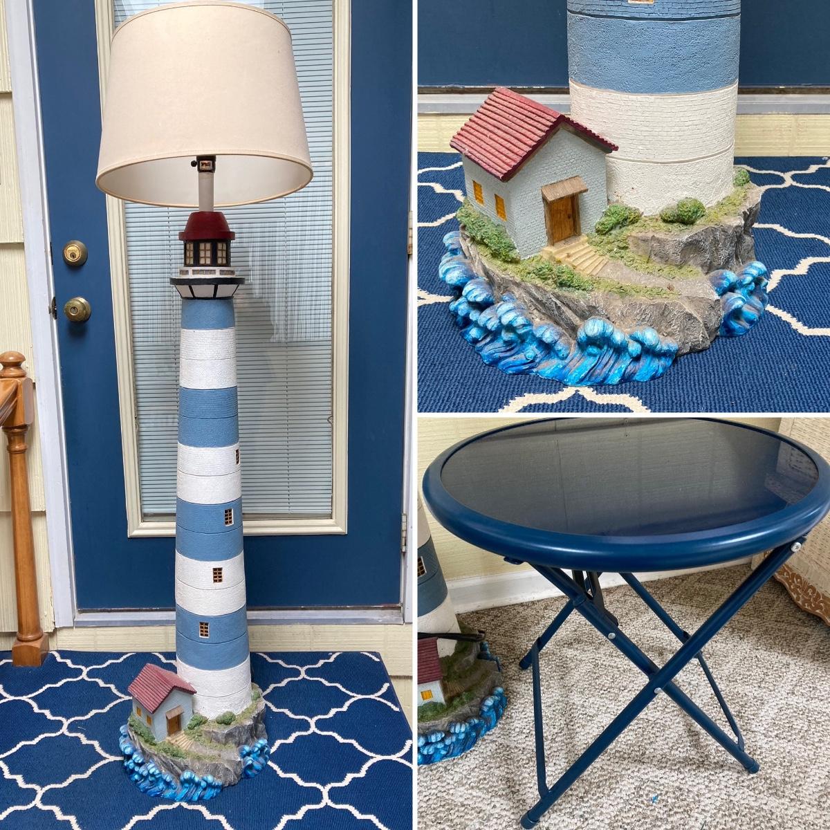 LOT 70S: Lighthouse Lamp with Blue Folding Patio Bistro Table