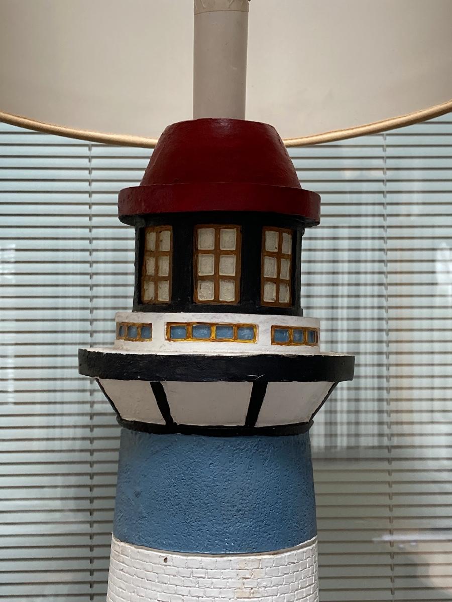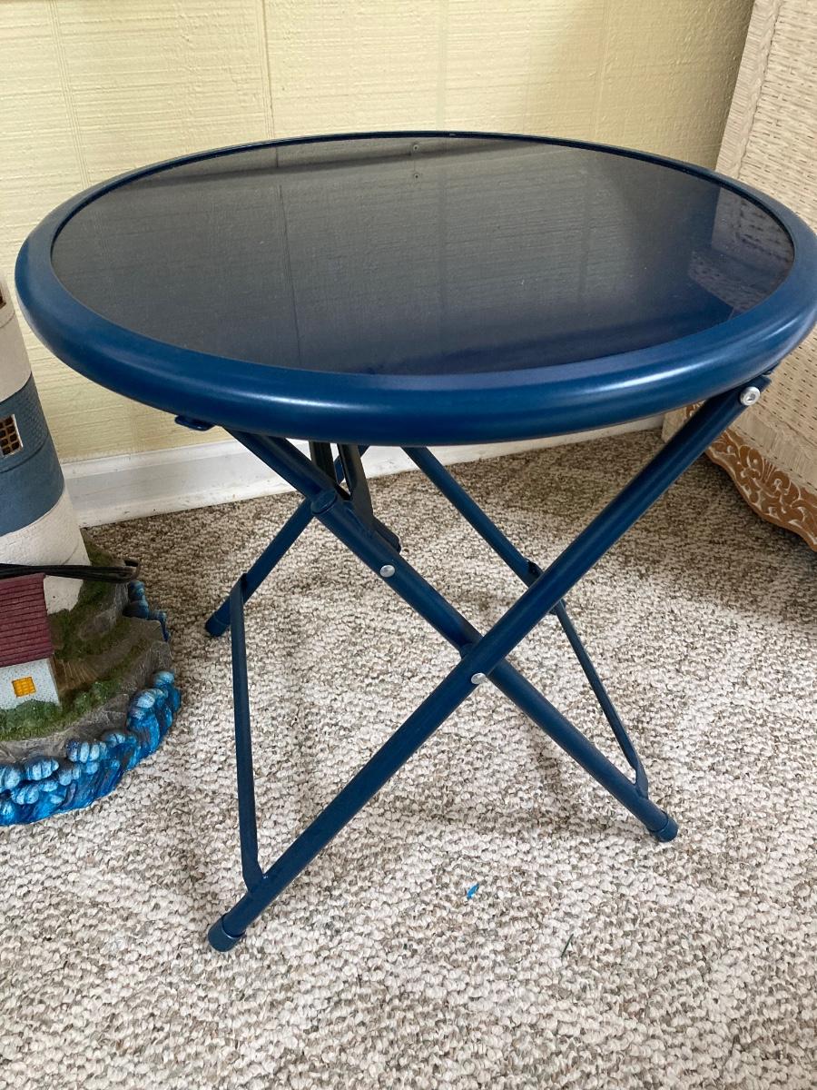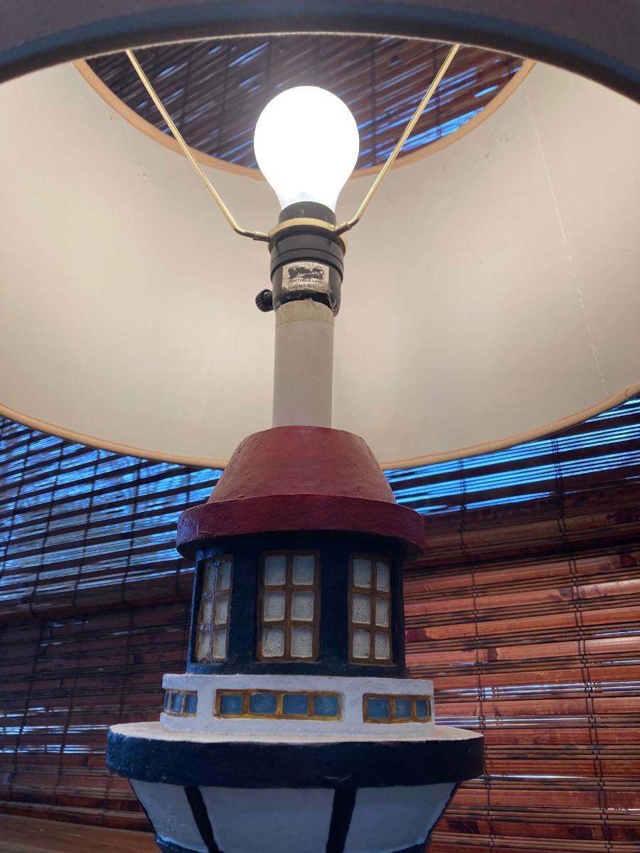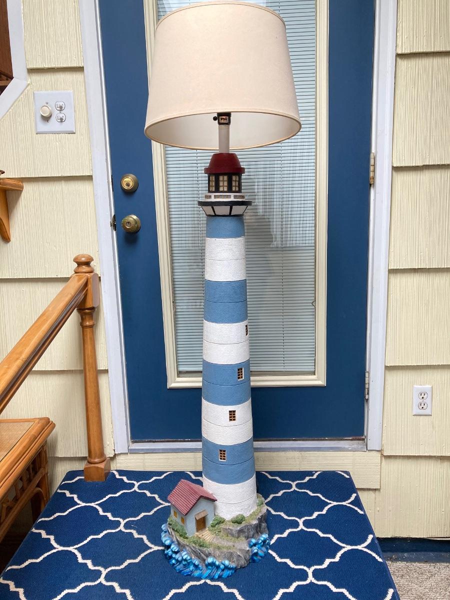 LOT 70S: Lighthouse Lamp with Blue Folding Patio Bistro Table
