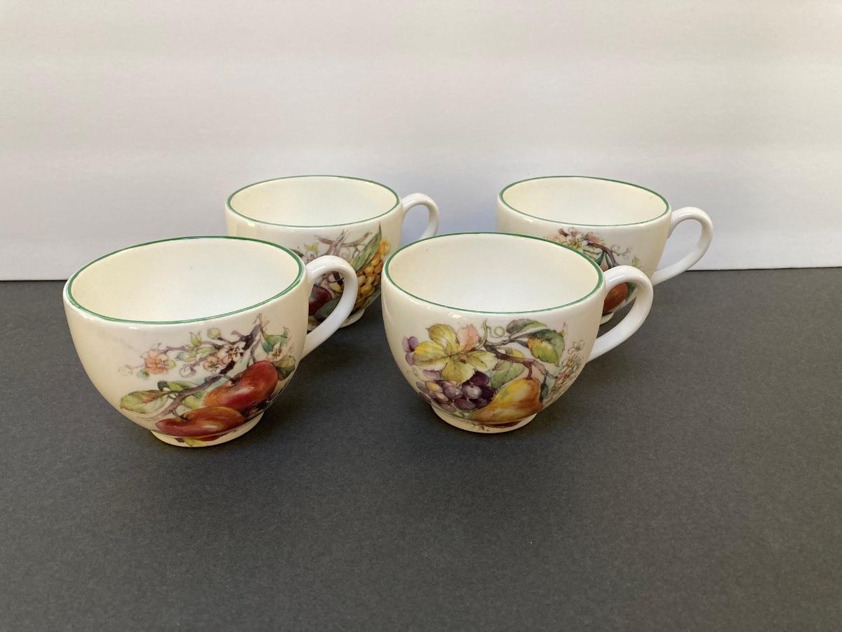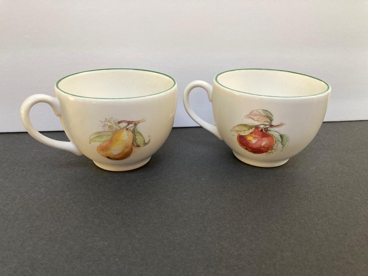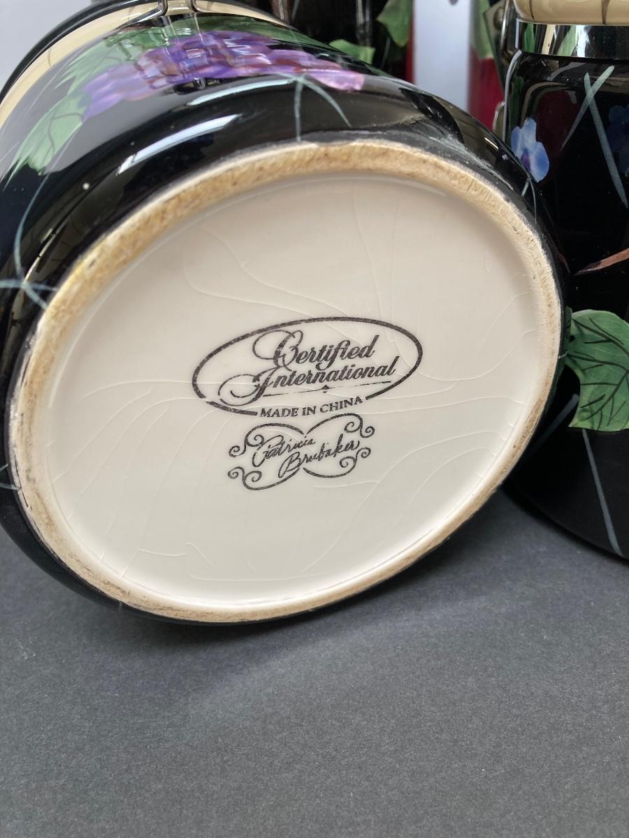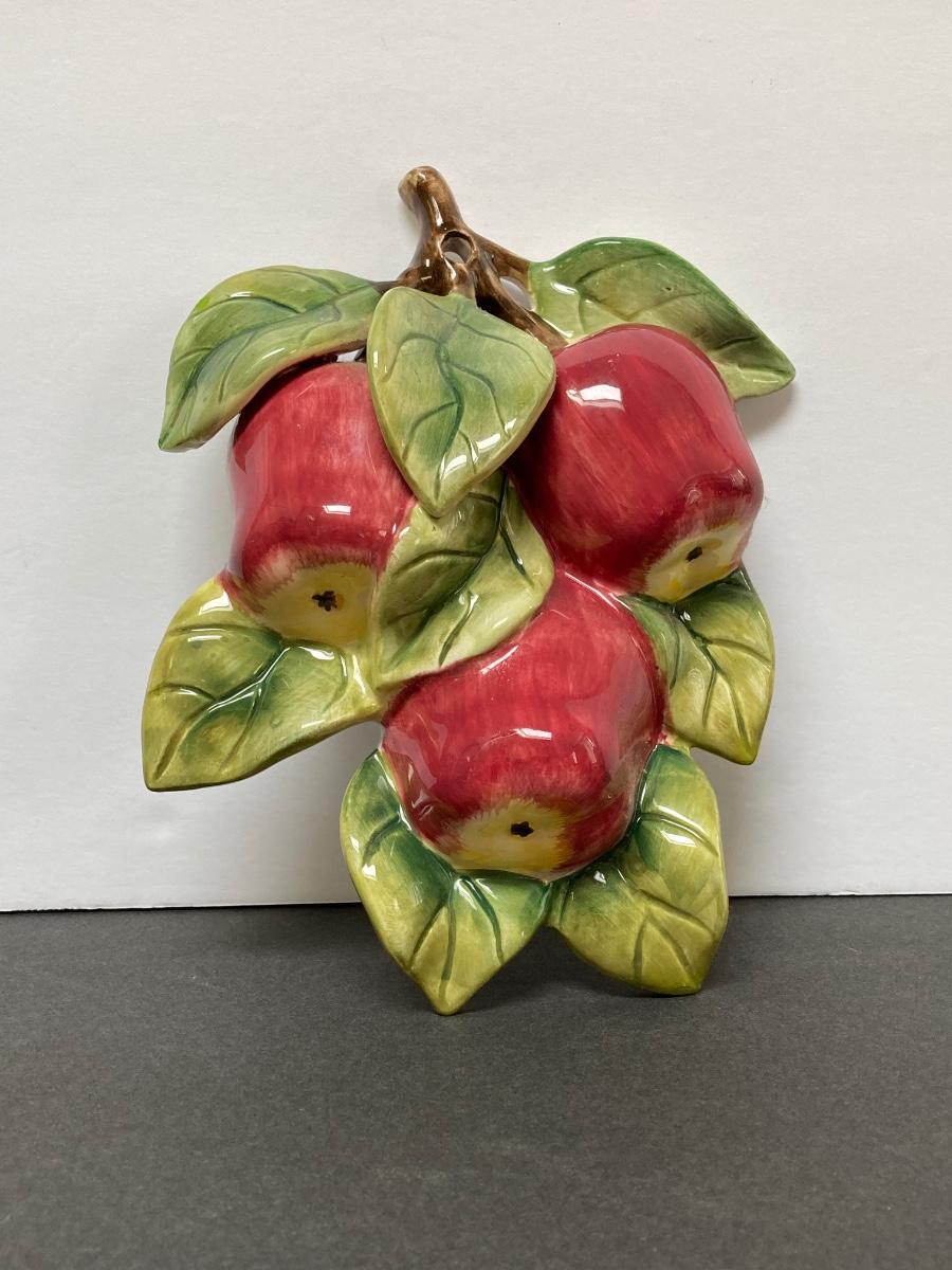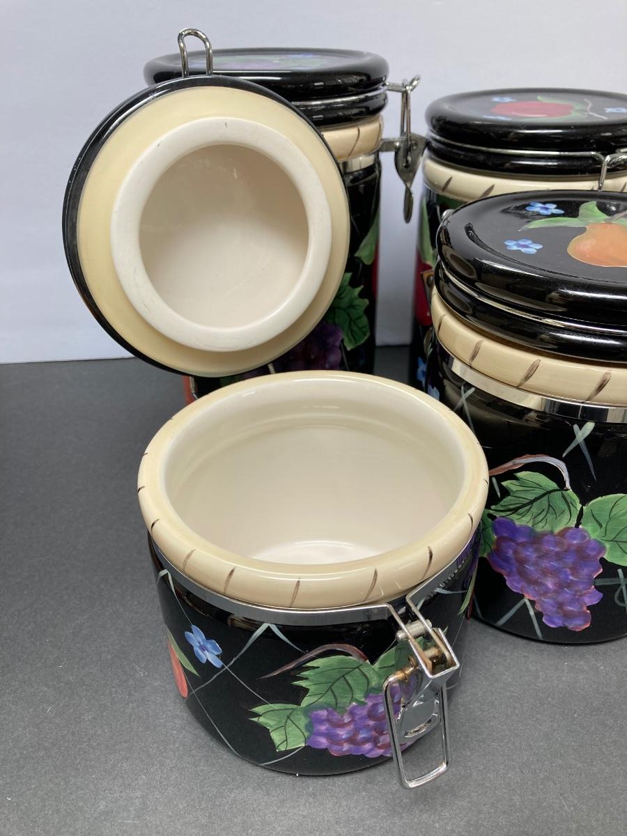 LOT 74S: Hand Painted Fruit - Patricia Brubaker Certified International Canister Set, Baum Bros "Formalities" Cups and Home Interiors Wall Plaques
