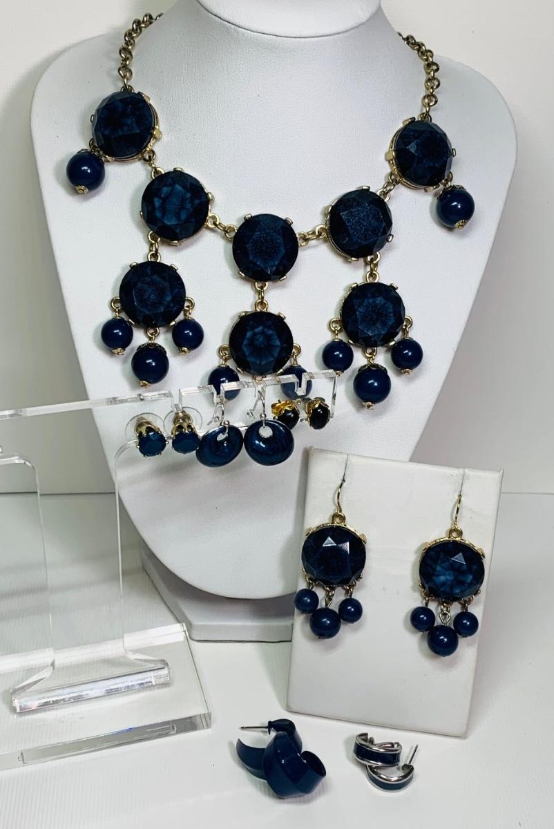 LOT 151: Lucite Blue Necklace w/Matching Earrings & Pierced Earrings