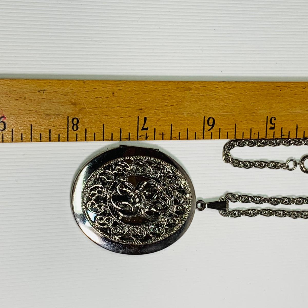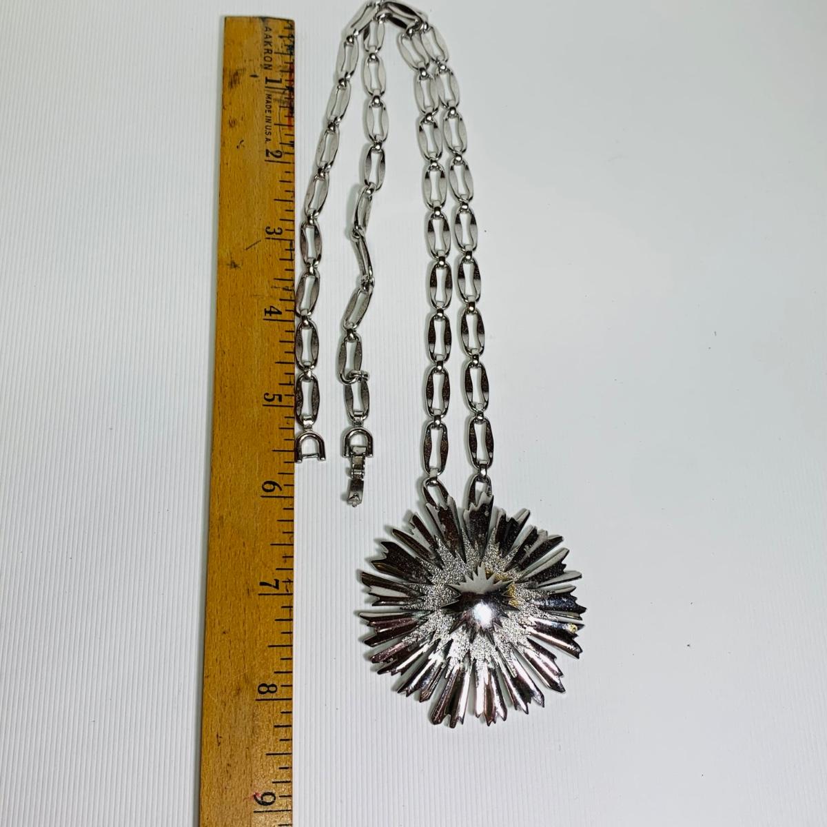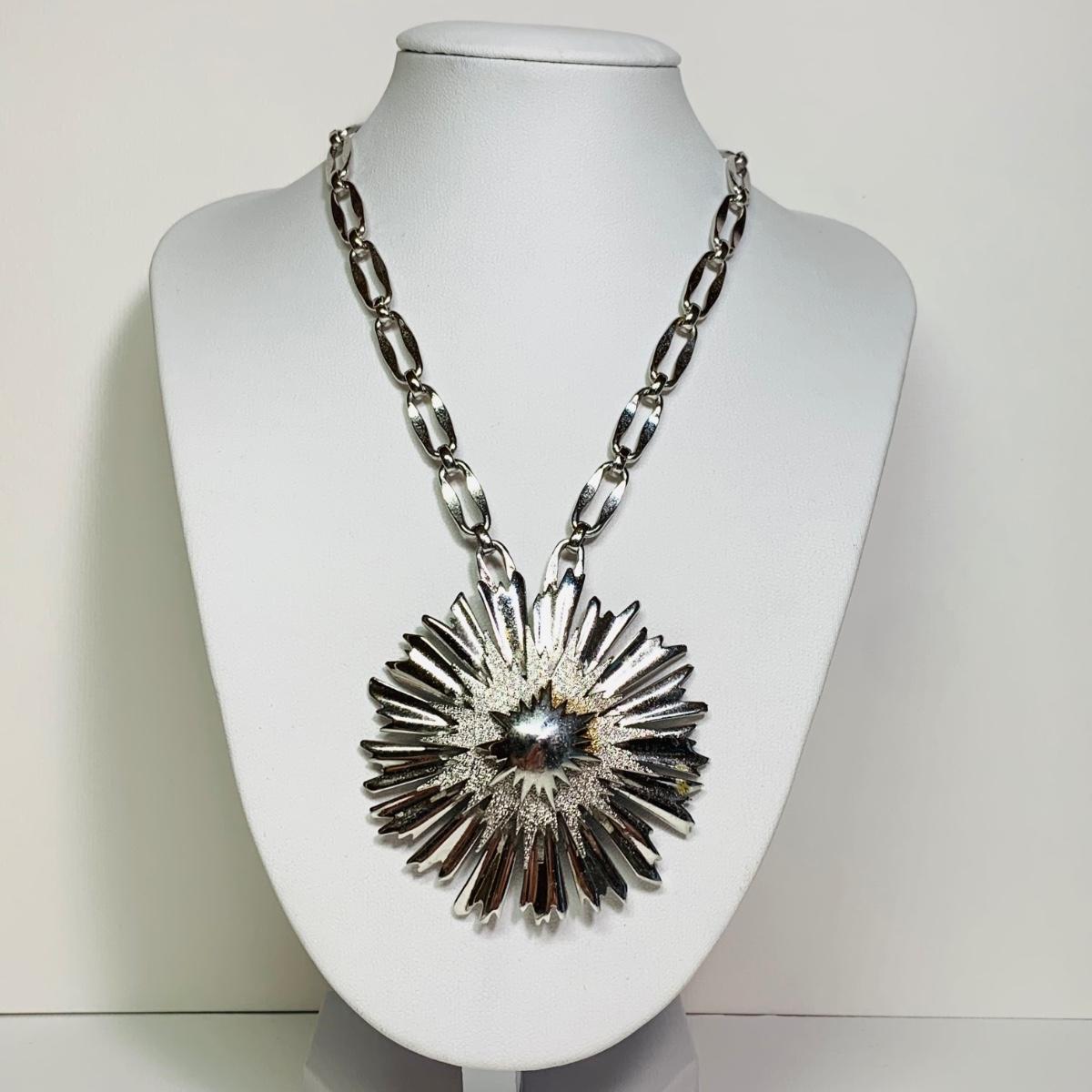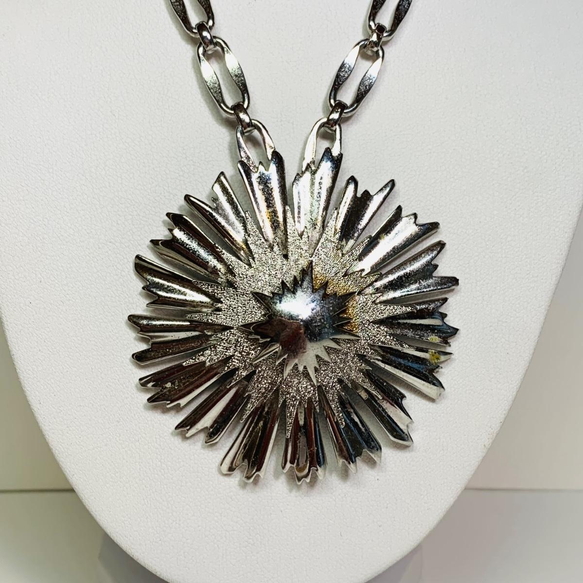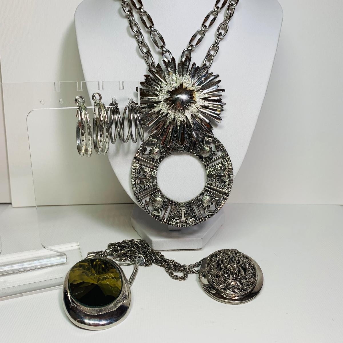 LOT 154: Monet Starburst Pendant Necklace, Silvertone Locket, Silvertone Hoop Earrings & More