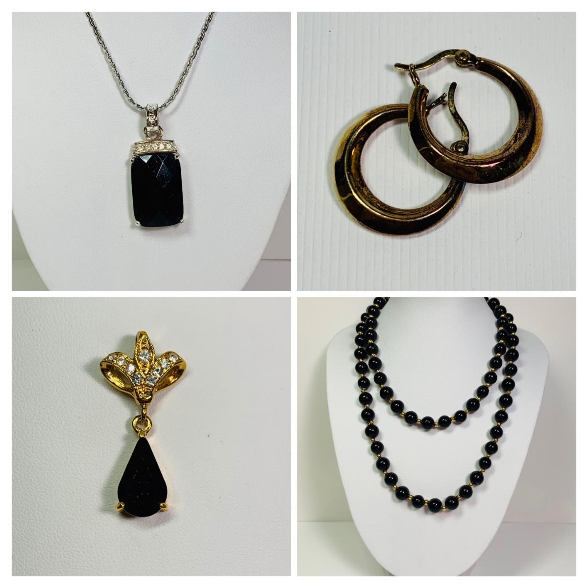 LOT 158: Black Beaded Necklace, 925 Sterling Silver Hoop Earrings, Pendants & More